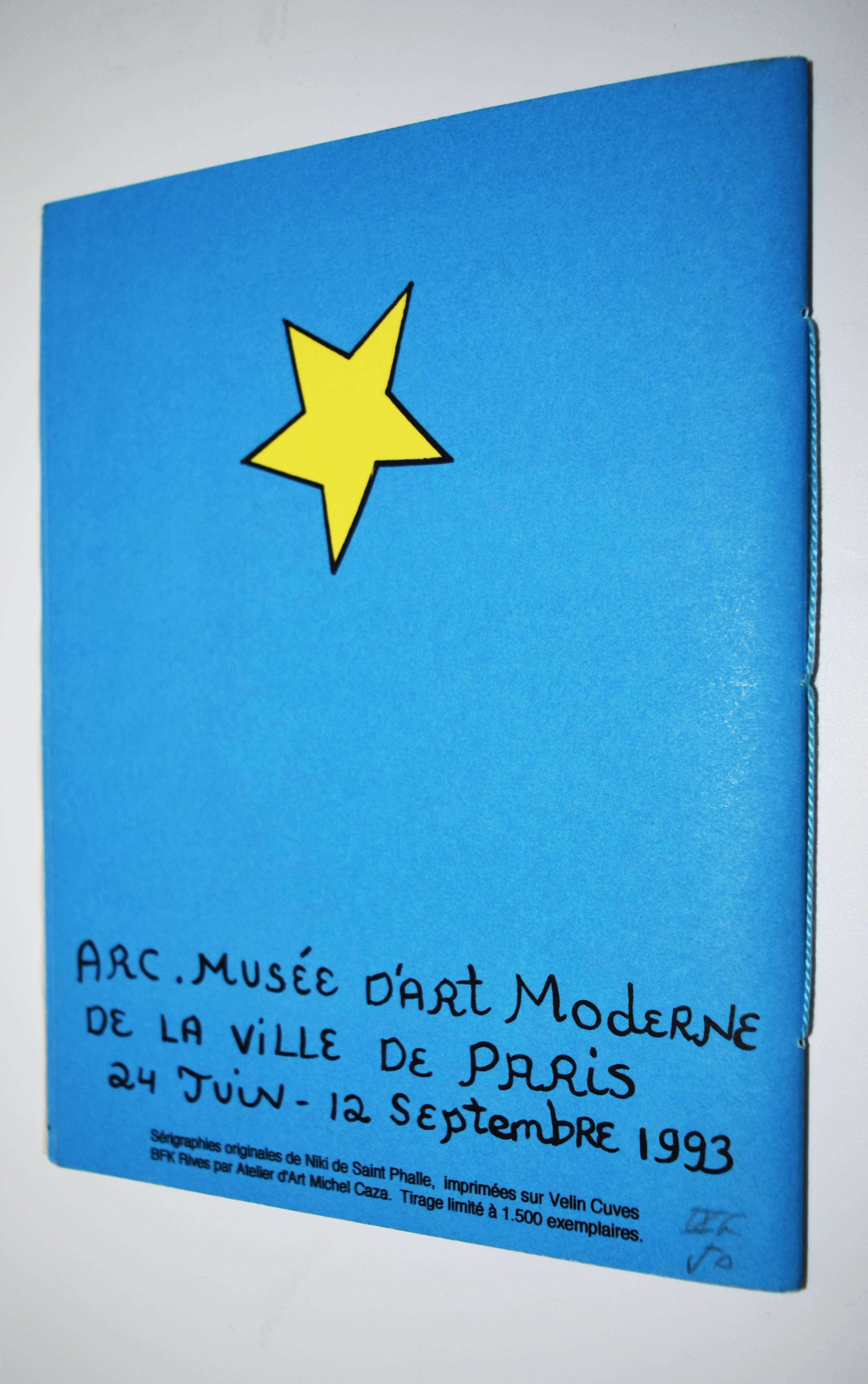 Saint Phalle, Niki de (d. i. Catherine Marie-Agnès Fal de Saint Phalle). Invitation a la danse. (ARC-Musee d’art moderne de la Ville de Paris 24 juin-12 septembre 1993). Paris, Editions ARC-Musee d’art moderne de la Ville de Paris (1993). Gr.-8° (20,5 x 16 cm.). 9 (1 doppelblattgr.) farbige Orig.-Serigraphien auf dünnem Karton und 1 doppelblattgr. Tafel auf Japanpapier. Farbig illustr. Orig.-Kartonumschlag. „Sérigraphies originales de Niki de Saint Phale, imprimé sur Velin Cuves BFK Rives par Atelier d’Àrt Michel Caza. Tirage limité à 1500 exemplaires.“ – Tadellos.