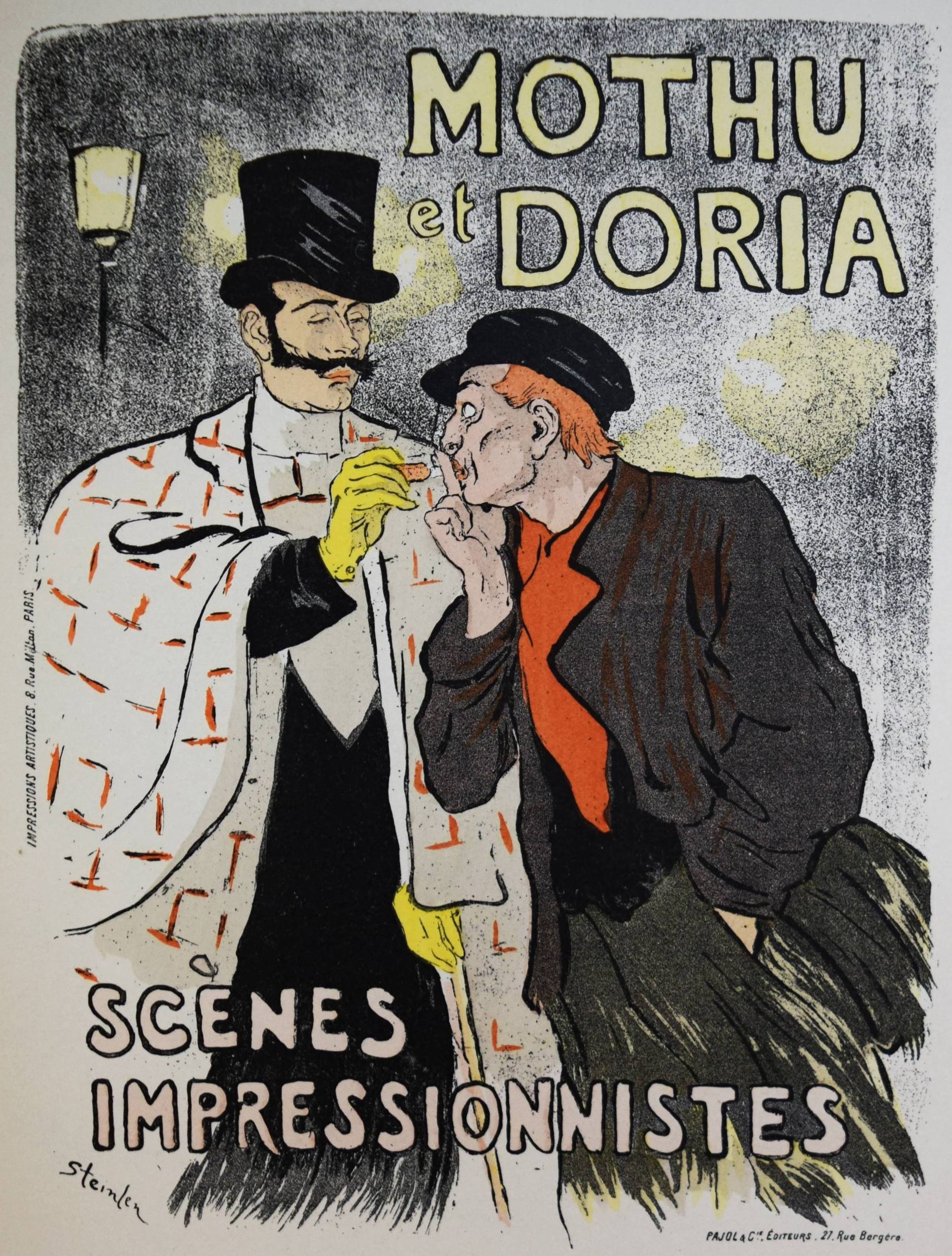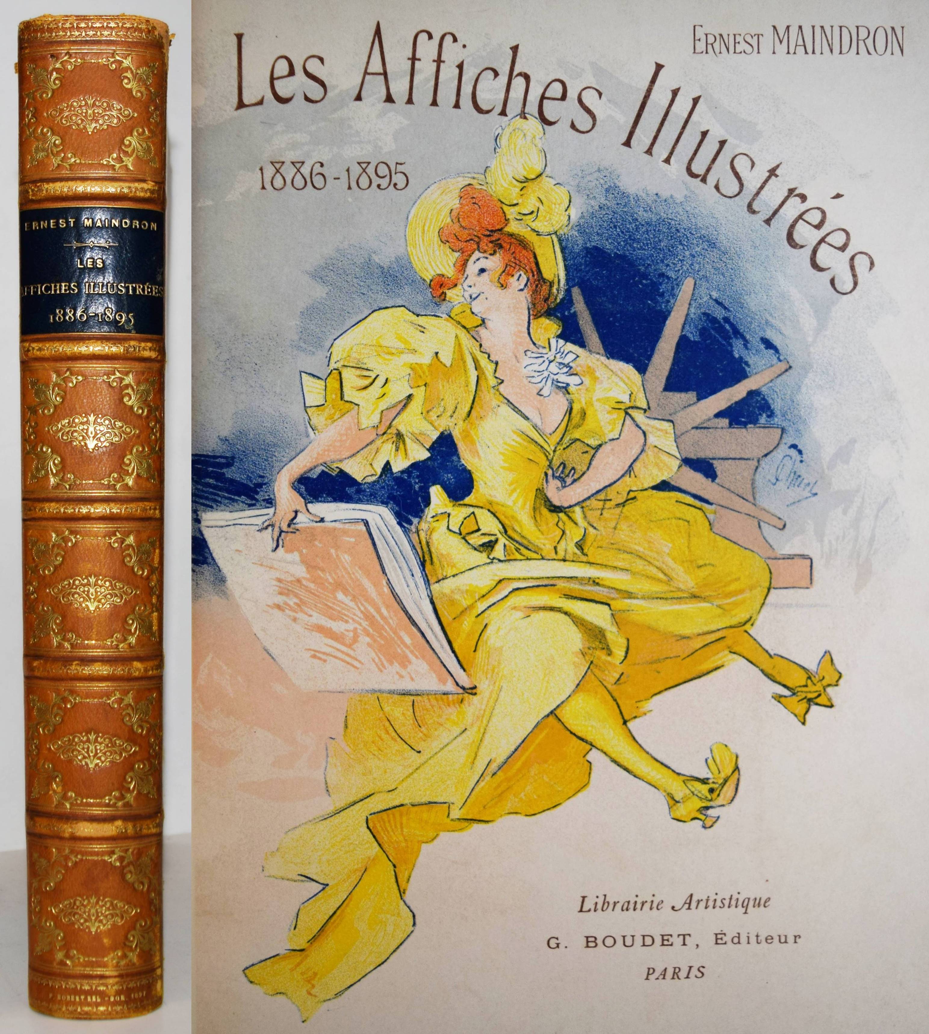 Maindron, Ernest. Les affiches illustrées 1886 – 1895. Ouvrage orné de 64 lithographies en couleur et de cent deux reproductions en noir et en couleur. D’après les affiches originales des meilleurs artistes. Paris, G. Boudet et Ch. Tallandier 1896. Gr.-4° (32,5 x 24 cm.). 251 S., [2] Bl. mit titel in Rot und Schwarz, 200 teils farblithogr. und ganzs. Abbildungen und 64 Orig.-Farblithographien von Alfons Mucha, Henri Toulouse-Lautrec, Théophile-Alexandre Steinlen, Jules Chéret, Alfred Choubrac, Eugène Samuel Grasset, Henri-Gabriel Ibels u. a.. Hellbrauner Halblederband der Zeit mit goldgepr. Rückenschild, reicher Rückenvergoldung und Kopfgoldschnitt (signiert: „P. Robert REL – DOR 1897“, farbig illustr. Orig.-Umschlag beigebunden). Carteret IV, 260. Monod 7642. – Eines von 1000 Exemplaren auf Vélin (Gesamtauflage 1025 Exemplare). – Die Lithographien gedruckt bei Chaix. – „Beaux et importants ouvrages abondamment illustrés“ (Carteret). – Standardwerk zur französischen Plakatkunst des Fin-de-Siècle. – Mit Farblithographien nach Plakaten von Chéret (37), Toulouse-Lautrec (3), Steinlen (2), Mucha (1), Grasset (6) und anderen. Außerdem enthält das Werk am Ende ein nahezu 900 Nummern umfassendes Gesamtverzeichnis der Plakate von Jules Cheret (L’oeuvre murale de Jules Cheret). Ernest Maindron (1838-1907) veröffentlichte 1896-97 eine weitere Monographie über die ausländischen Plakate. – Deckel etwas berieben und angestaubt, sehr gutes breitrandiges Exemplar auf chamoisfarb. Vélin in einem signierten Handeinband.