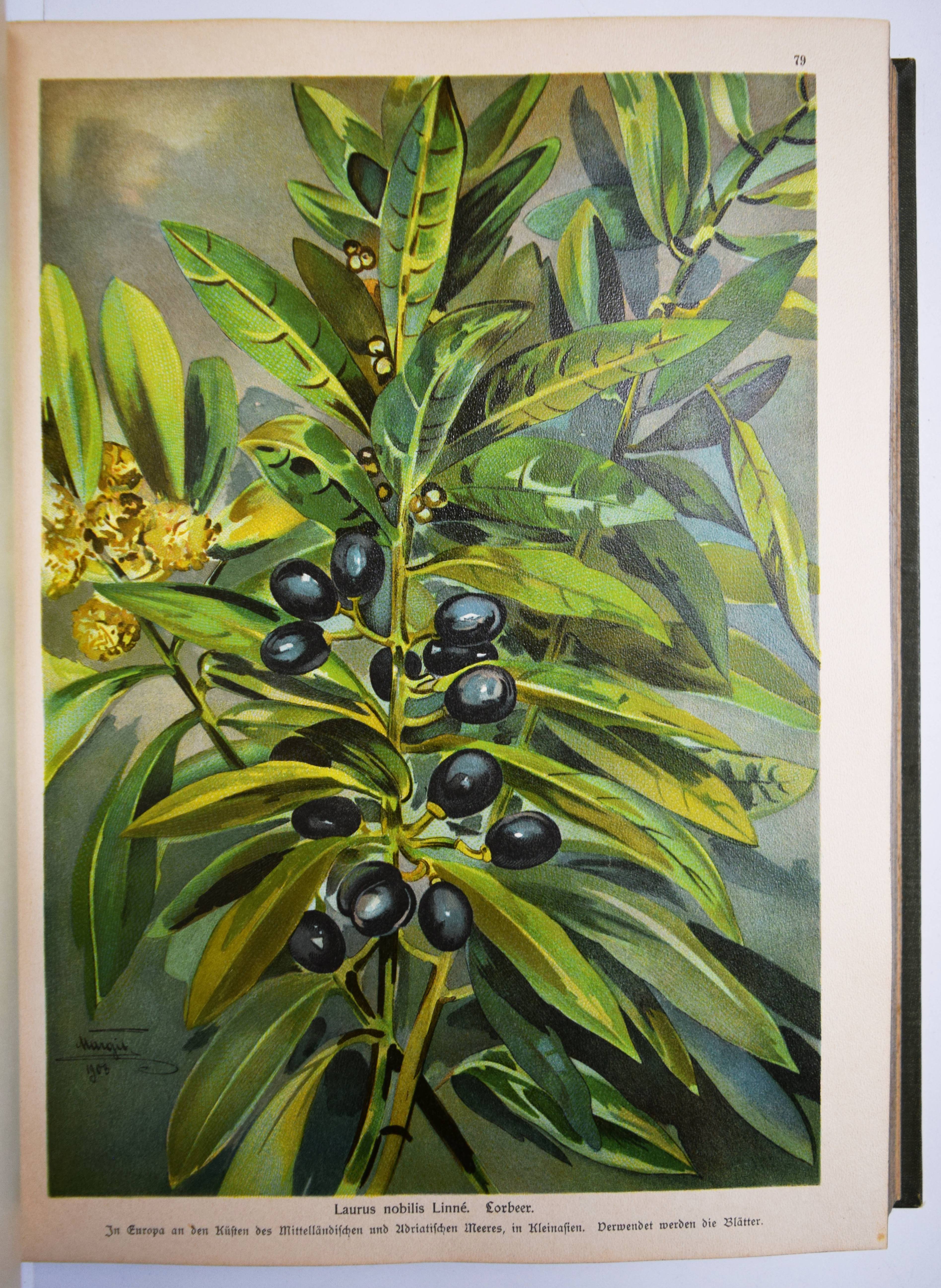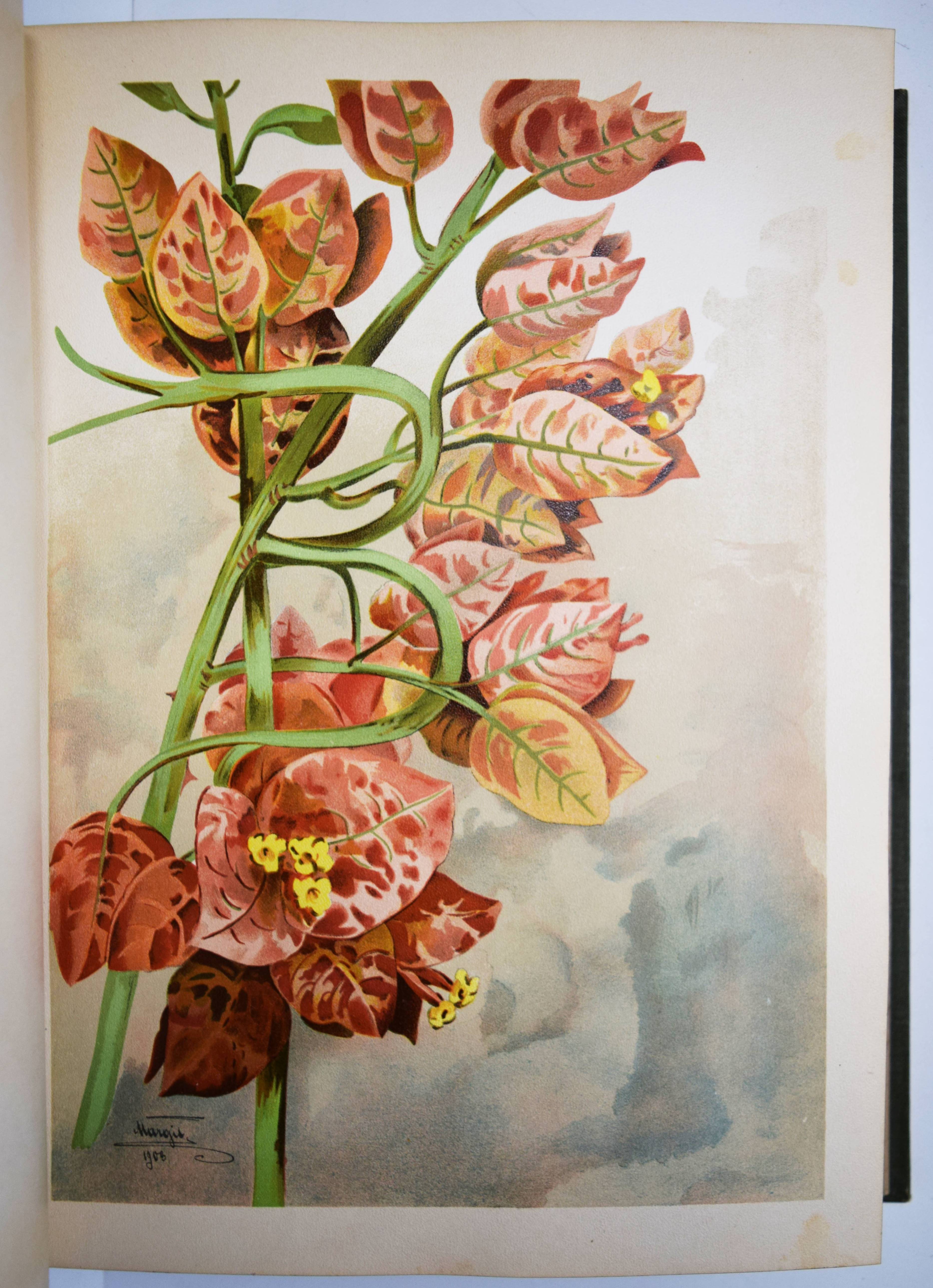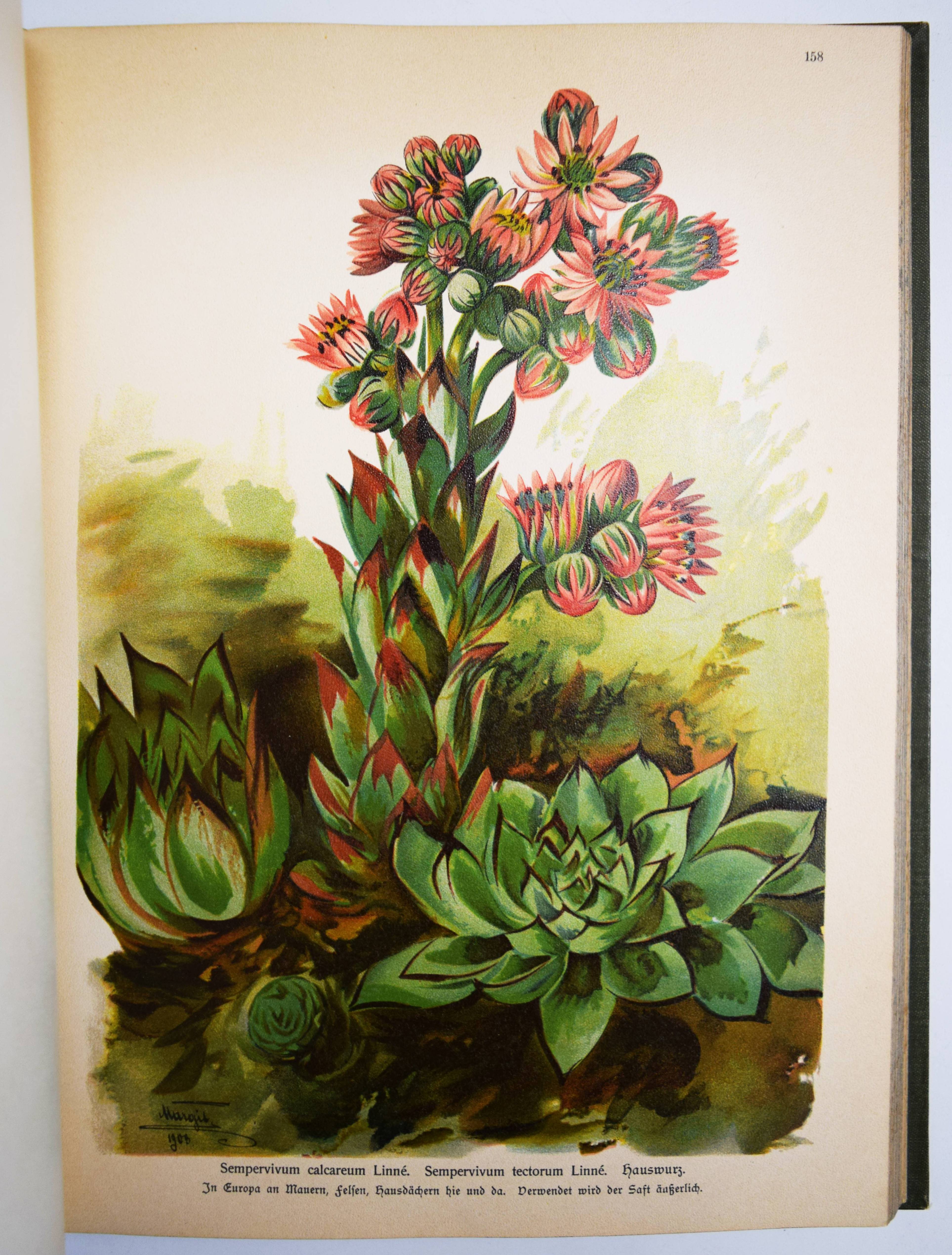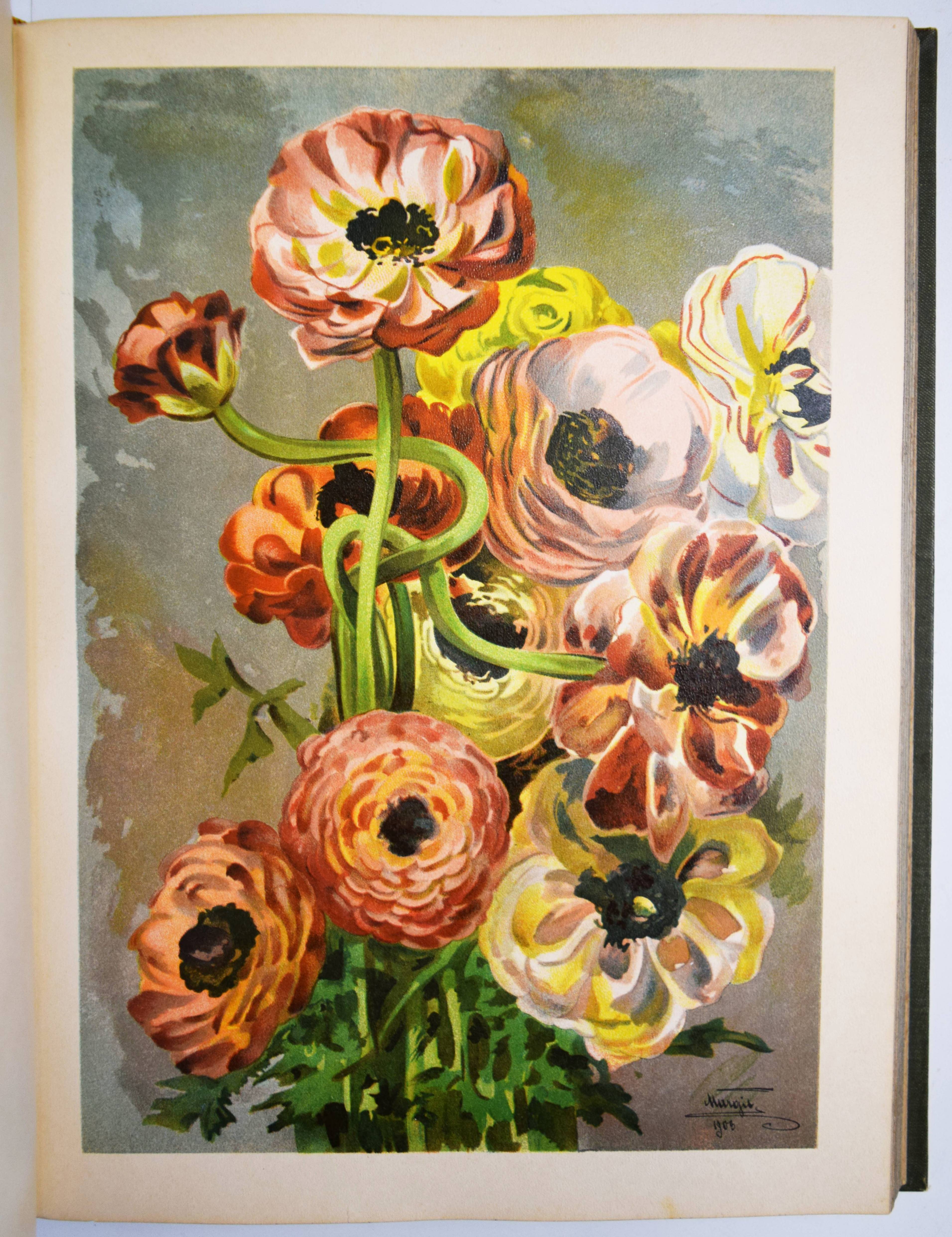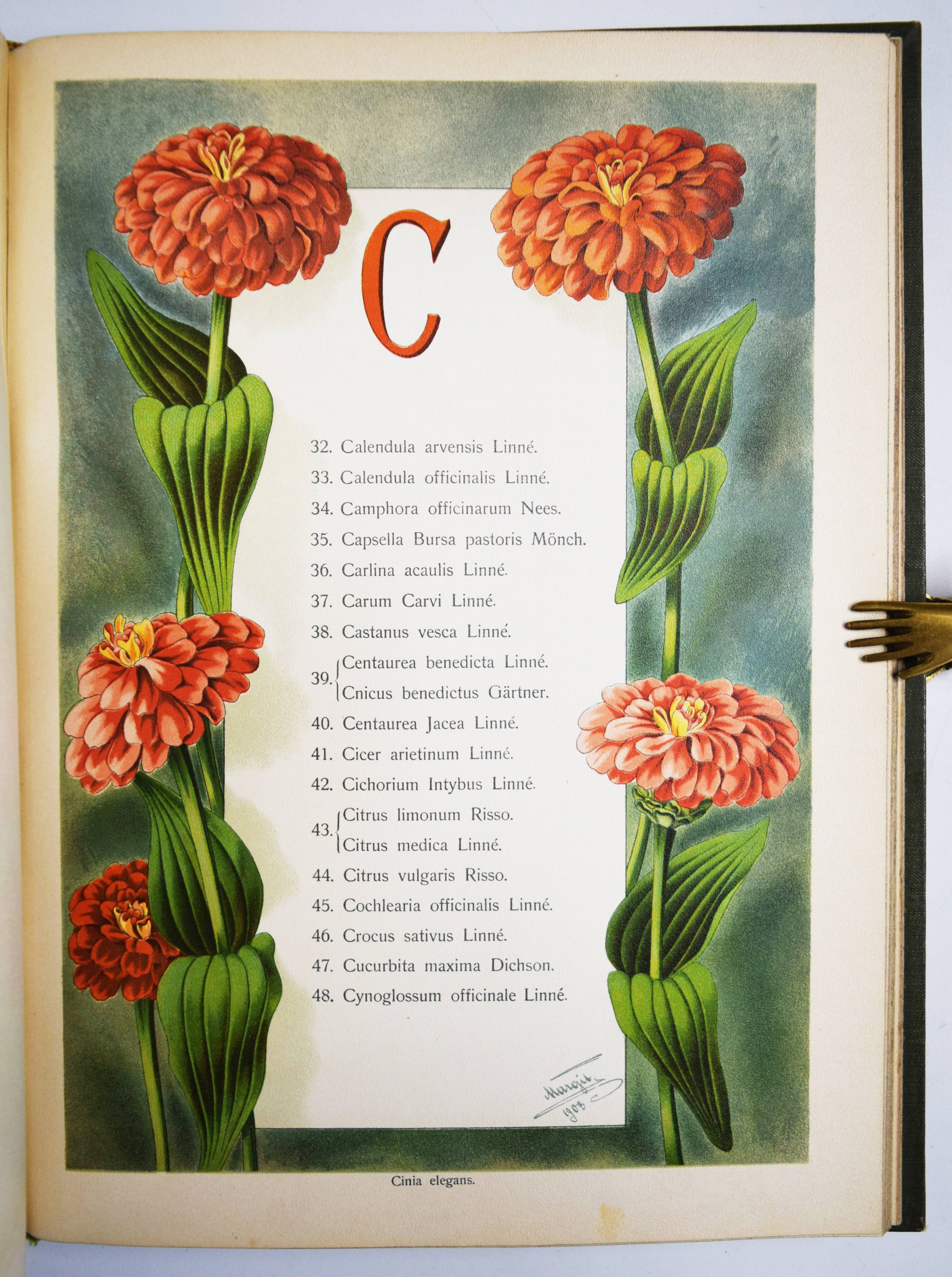 Joseph, Erzherzog von Österreich. Atlas der Heilpflanzen des Praelaten (Sebastian) Kneipp. Bildlich dargestellt durch Margarethe von Thurn und Taxis. Regensburg, W. Wunderlings Hofbuchhandlung (1904-1906). Gr.-4° (31 x 23,5 cm.). Chromolithogr. Titelblatt, chromolithogr. Widmungsblatt, [1] Bl. (Vorwort), 188 chromolithogr. Tafeln, 20 chromolithogr. Zwischentitel und 21 chromolithogr. Register-Blätter (zusammen 231 Chromolithographien). Farbig illustr. Orig.-Leinenband mit goldgepr. Rücken- und Deckeltiteln. Nissen 1008 n. – Erste Ausgabe mit prachtvollen Jugendstil-Pflanzendarstellungen. – Außer dem Vorwort vollständig chromolithographisch gedruckt. Die Fürstin, Tochter des Verfassers, die ihre Zeichnungen lässig mit „Margit“ signierte, schuf nicht nur die Pflanzen-Aquarelle, oft vor eindrucksvollen oder idyllischen Landschaften, sondern auch noch dekorative Zwischentitel und Registerblätter. – Rücken am Kapital und Fuß gering berieben, sehr schönes Exemplar.