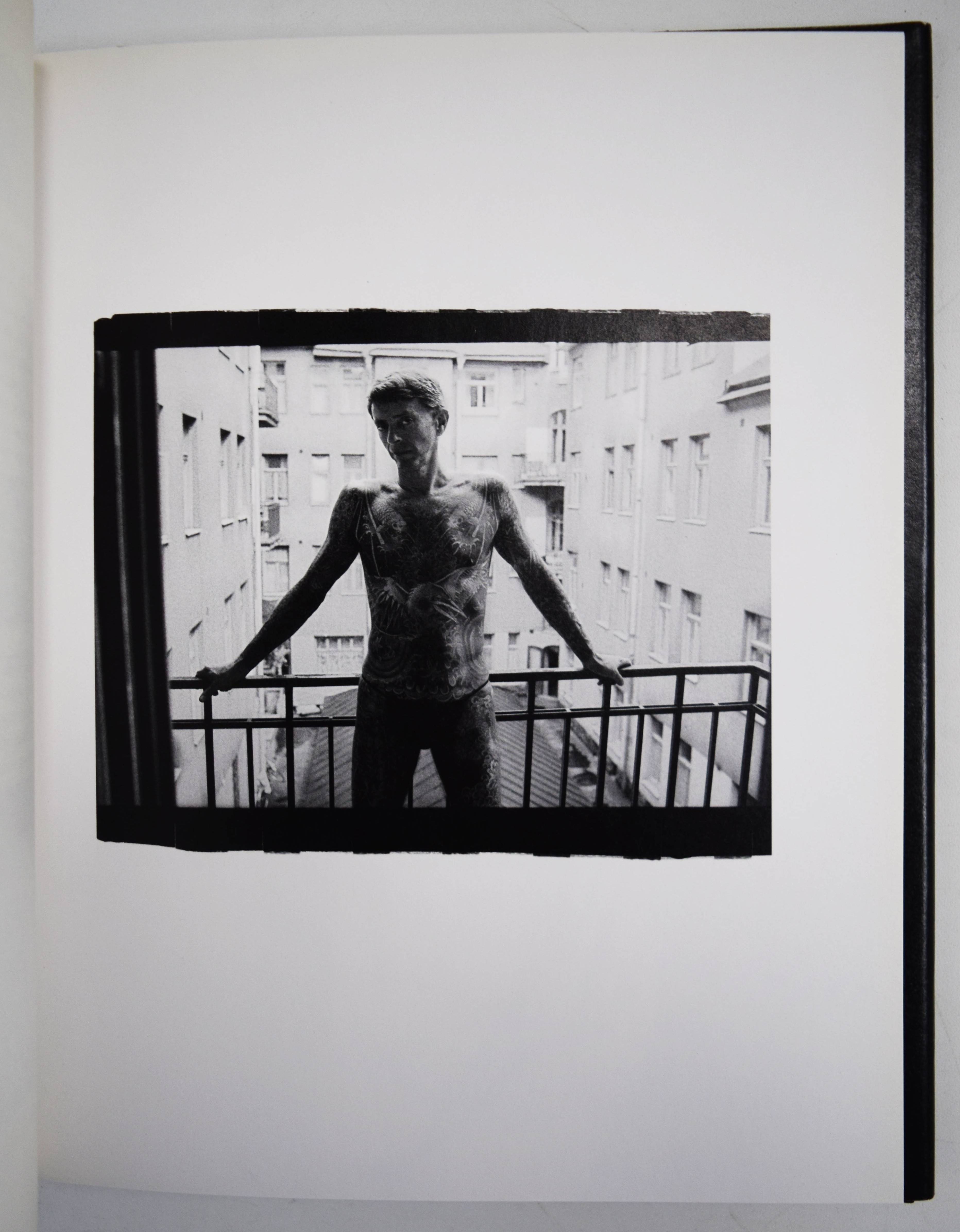 Petersen, Anders. Close distance. In collaboration with The National Photomuseum at The Royal Library in Copenhagen. (Preface Ingrid Fischer Jonge). Stockholm, Journal Förlag (2002). 4°. [60] p. with 41 duotone-plates. Original cloth binding with illustrated dust jacket. Koetzle, Fotografen A-Z 314. – First edition; signed by Anders Petersen. – Text by Danish photo historian and writer, Birna Marianne Kleivan, consists of an interview with Anders Petersen and a summary of his works. About the photos, she says: „Instinct and dreams are conjured up in a series of animalistic photographs, in part providing fascination through their simultaneously transgressive and chaste representation of the primitive and the darker sides of the individual. A world full of danger and darkness, full of siren songs and sores that will never heal. Where demons are kept at distance through substitutes, while the momentary raptures of ecstasy are captured, before an abyss of human lonliness once again opens itself under the spectator.“ – Very good copy.
