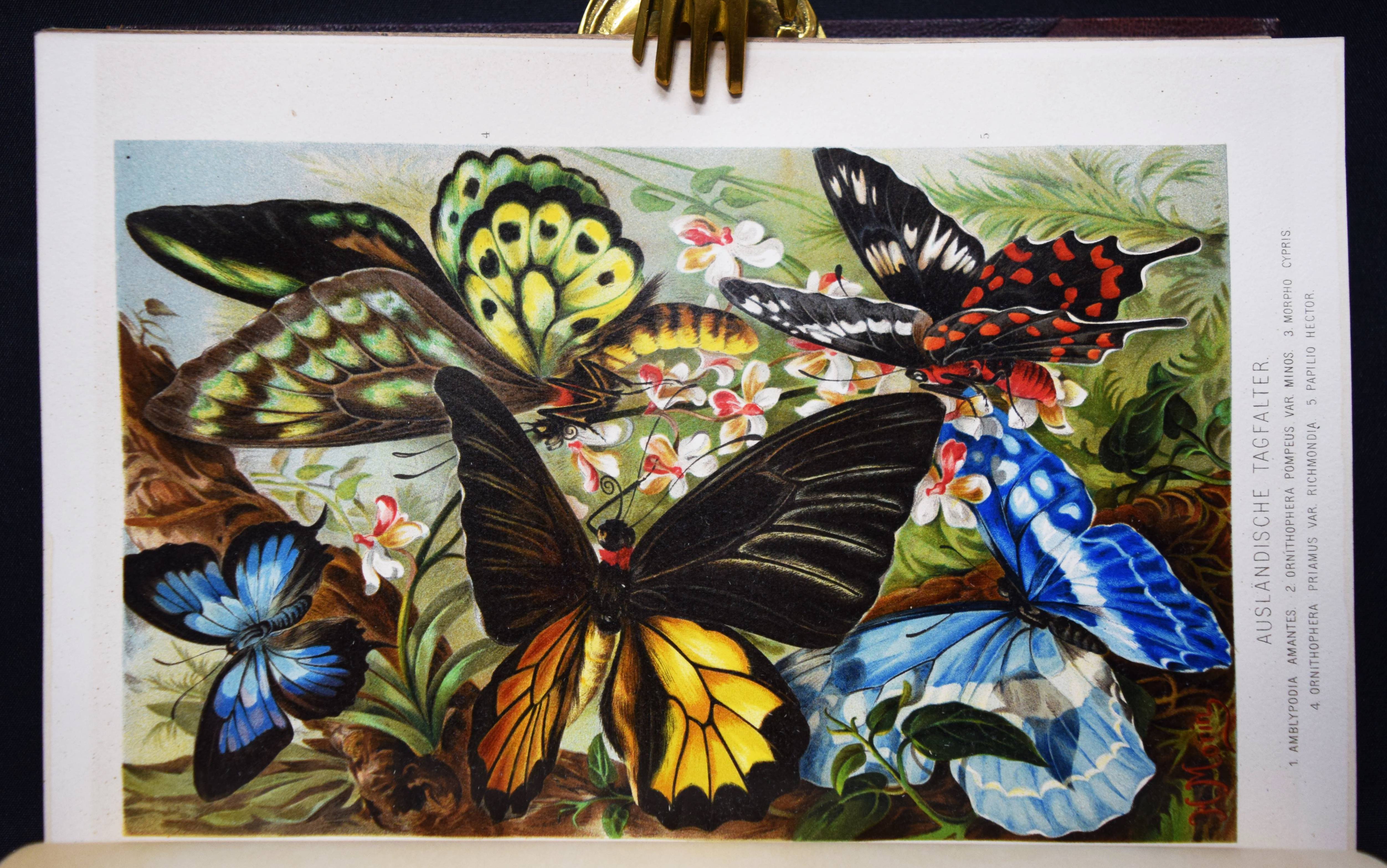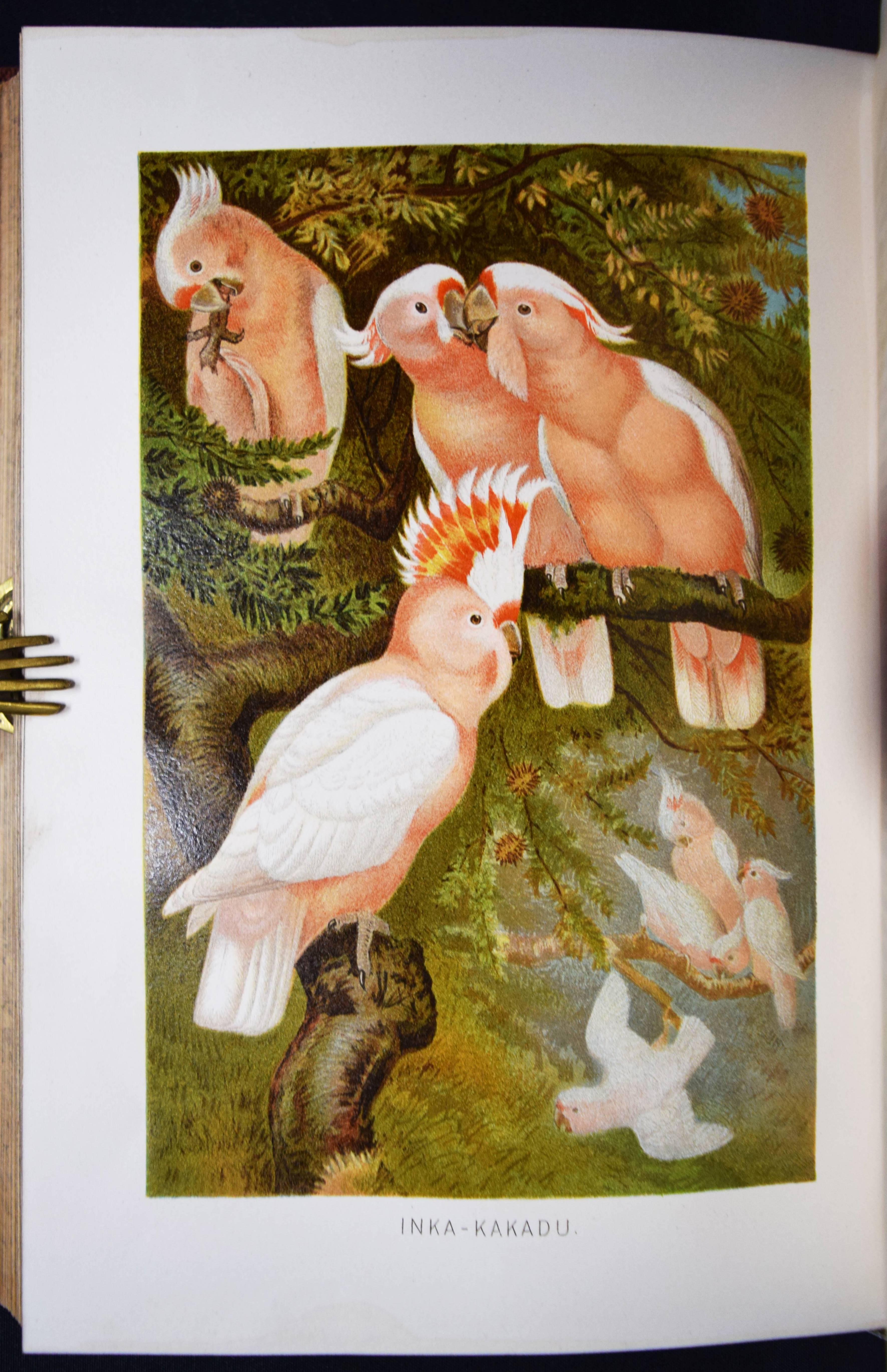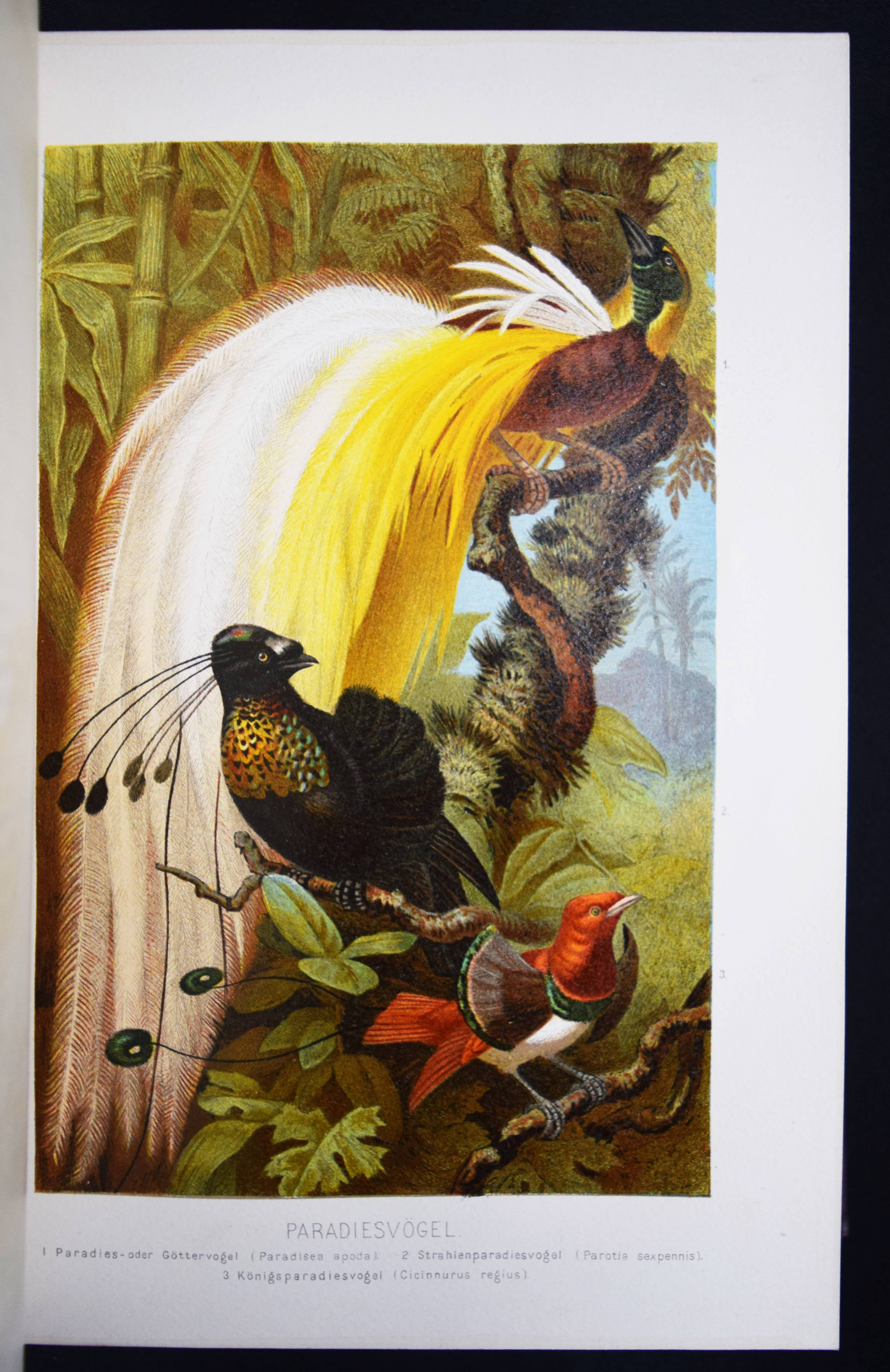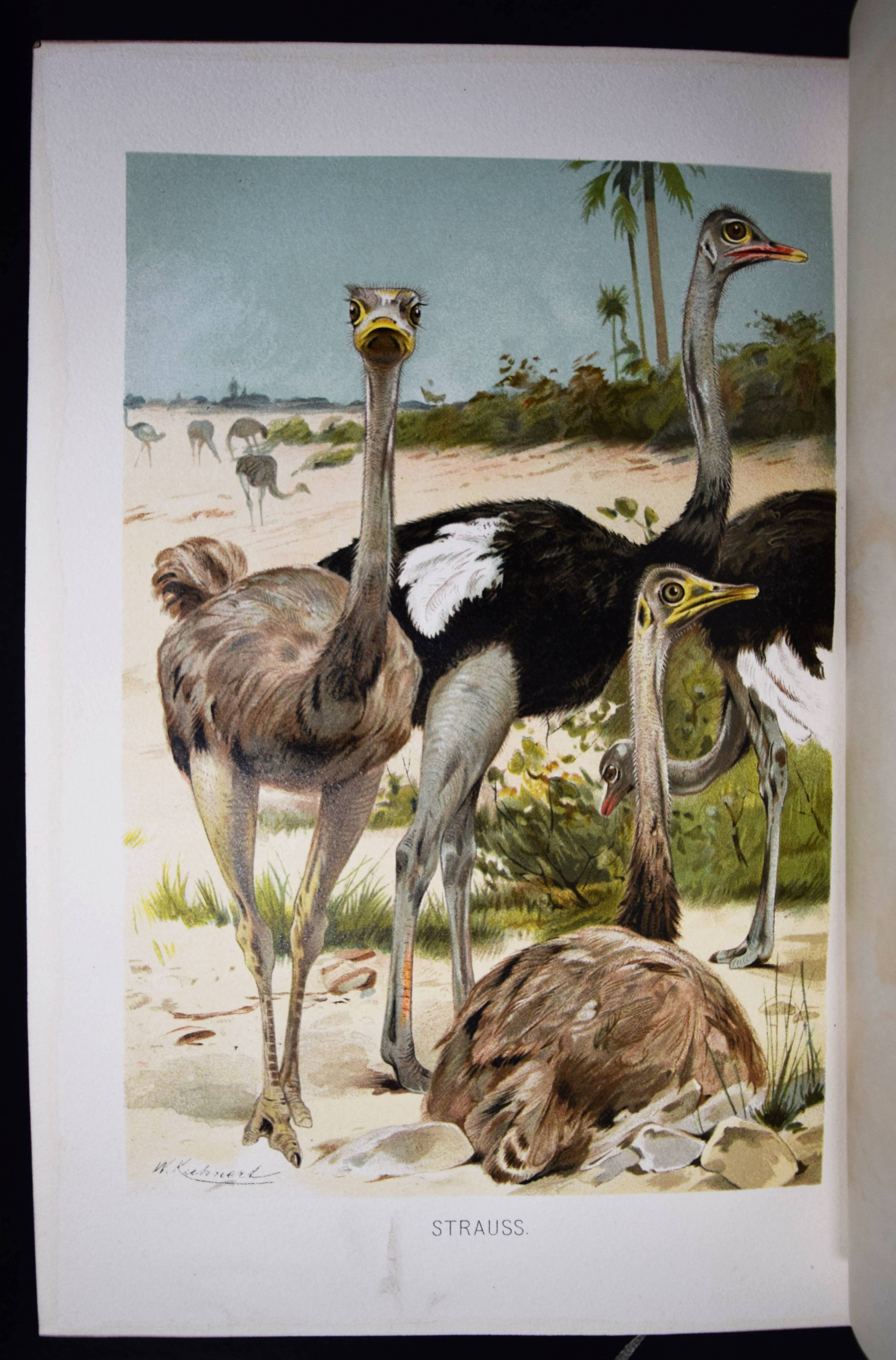 Brehm, (Alfred Edmund). Brehms Tierleben. Allgemeine Kunde des Tierreichs. 3. gänzlich neubearb. Auflage von (Eduard) Pechel-Loesche. 10 Bände. Leipzig, Wien, Bibliographische Institut 1890-1893. Gr.-8° (25,5 x 18 cm.). Mit 180 Tafeln in Chromolithographie und Holzschnitt, 11 Karten und 1910 Textabb. Orig.-Halbledereinbände mit goldgepr. Rückentiteln und Rückenvergoldung. KNLL III, 117. Nissen, IVB 138. – Beste Ausgabe mit den schönen chromolithographierten Tafeln. – I. bis III. Säugetiere. – IV. bis VI. Vögel. – VII. Kriechtiere und Lurche. – VIII. Fische. – IX. Insekten. – X. Niedere Tiere. – „Der besondere Reiz und damit wohl auch ein wichtiges Element des literarischen Werks von Brehms Tierschilderungen liegt in seiner von genialer Intuition geleiteten Deutung der Tierseele…“ (KNLL). – Der Geograph und Afrikaforscher E. Pechel-Loesche (1840-1913) war seit 1895 Professor an der Universität Erlangen. – Rücken teils etwas berieben, Vorderdeckel von Band IX fleckig, gutes Exemplar.