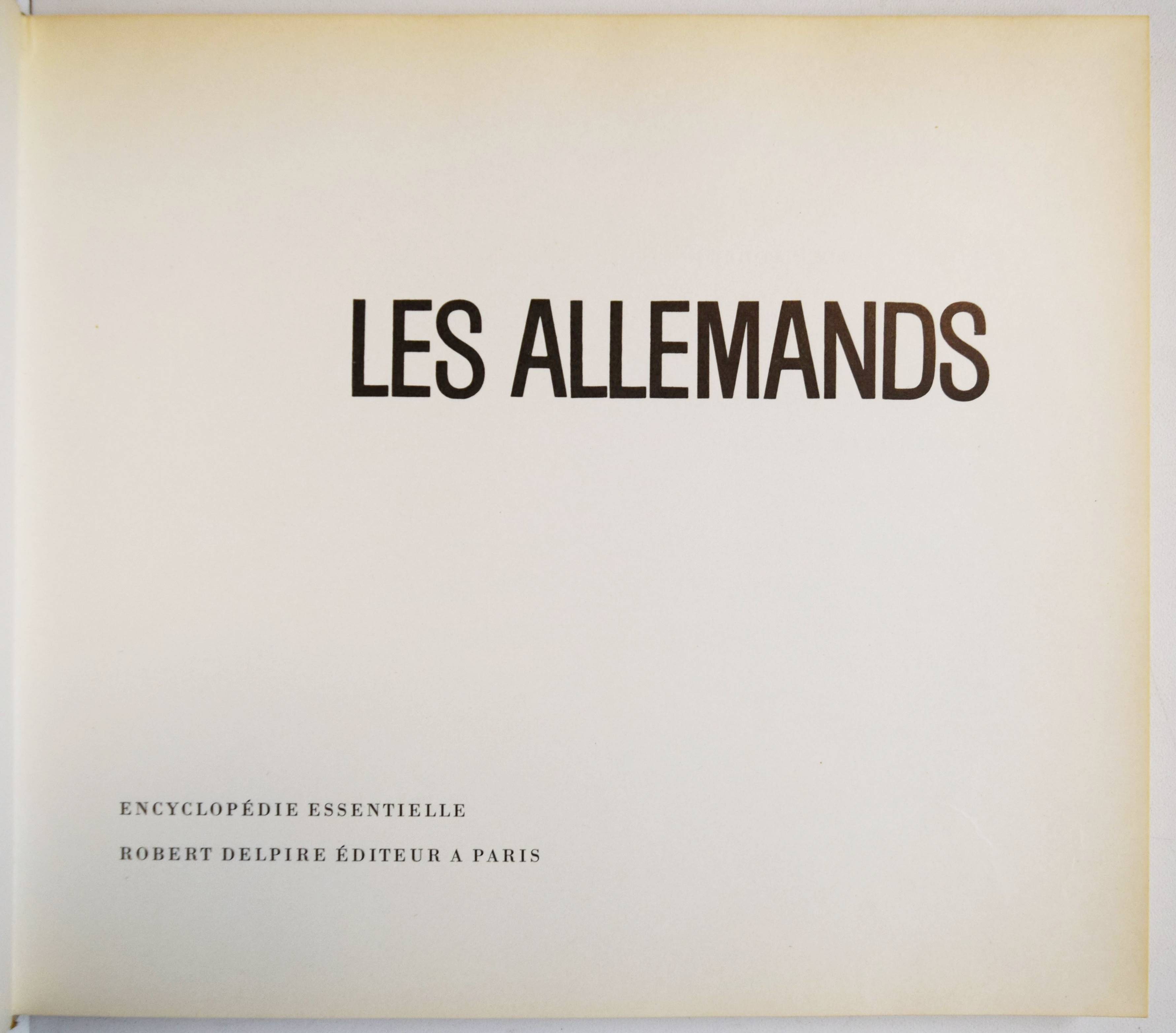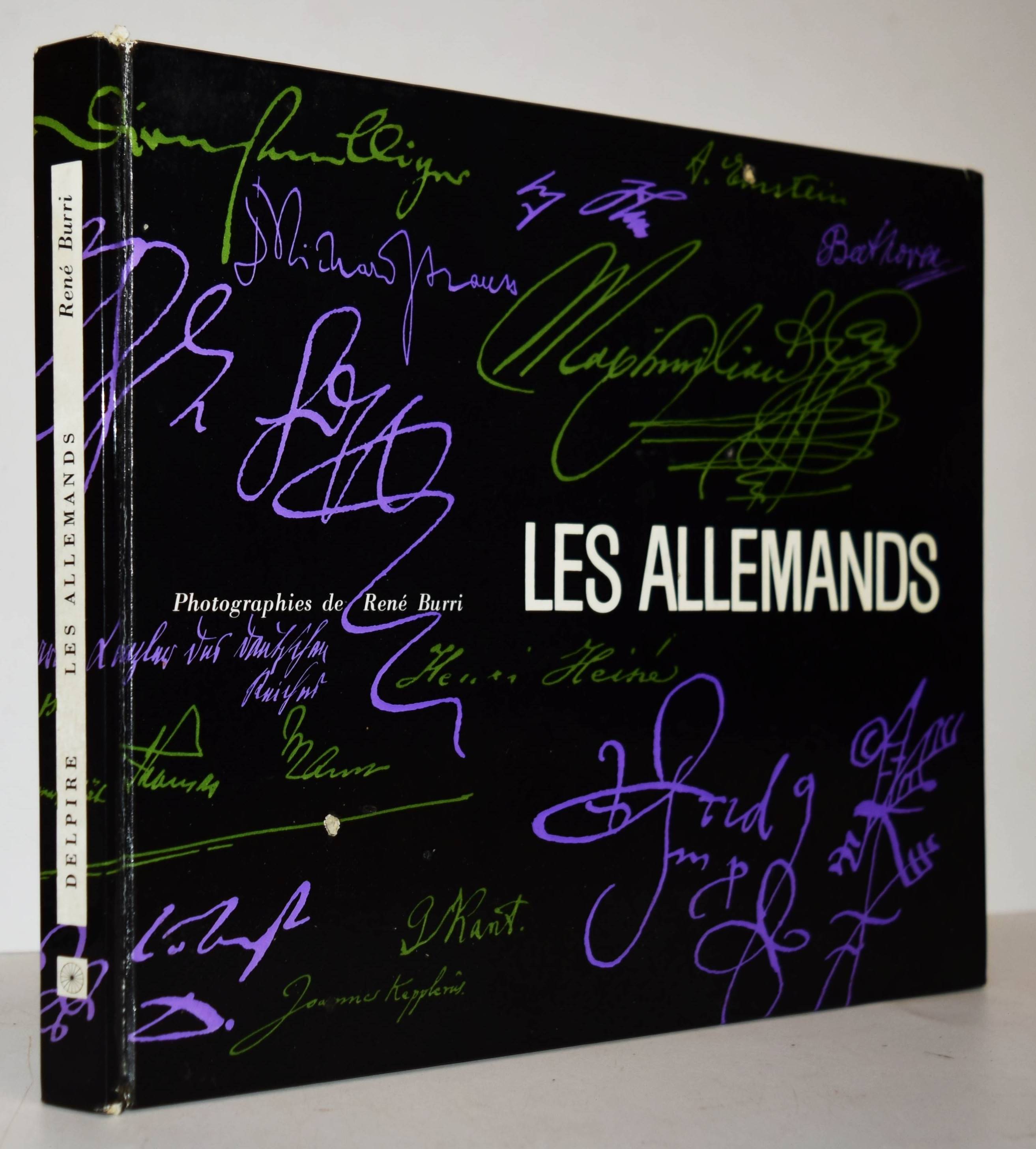 Burri, René. Les Allemands. (Textes réunis et présentés par Jean Baudrillard). Paris, Robert Delpire (1963). Quer-8°. 170 S. mit ganzs. Abb. Farbig illustr. Orig.-Pappband. Heiting/Wiegand 452 f. (mit mehr. Abb.). Koetzle 78 f. (mit Abb.). Parr/Badger I, 218. Schweizer Fotobücher 244 ff. – Erste französische Ausgabe, „die vielleicht wichtigste Arbeit von Burri“ (T. Wiegand). Die deutsche Original-Ausgabe erschien 1962. – „Burri’s book would be more widly regarded as one of the best photobooks of the 1960s. Seen here in its German edition, Die Deutschen. which was published the year before Les Allemands. exactly mirrors Les Américains in conception – an extended photo-essay of the same size and similar design, with excerpted text from writers commenting on the country’s national characteristics“ (Parr/Badger). – Sehr gutes sauberes Exemplar.
