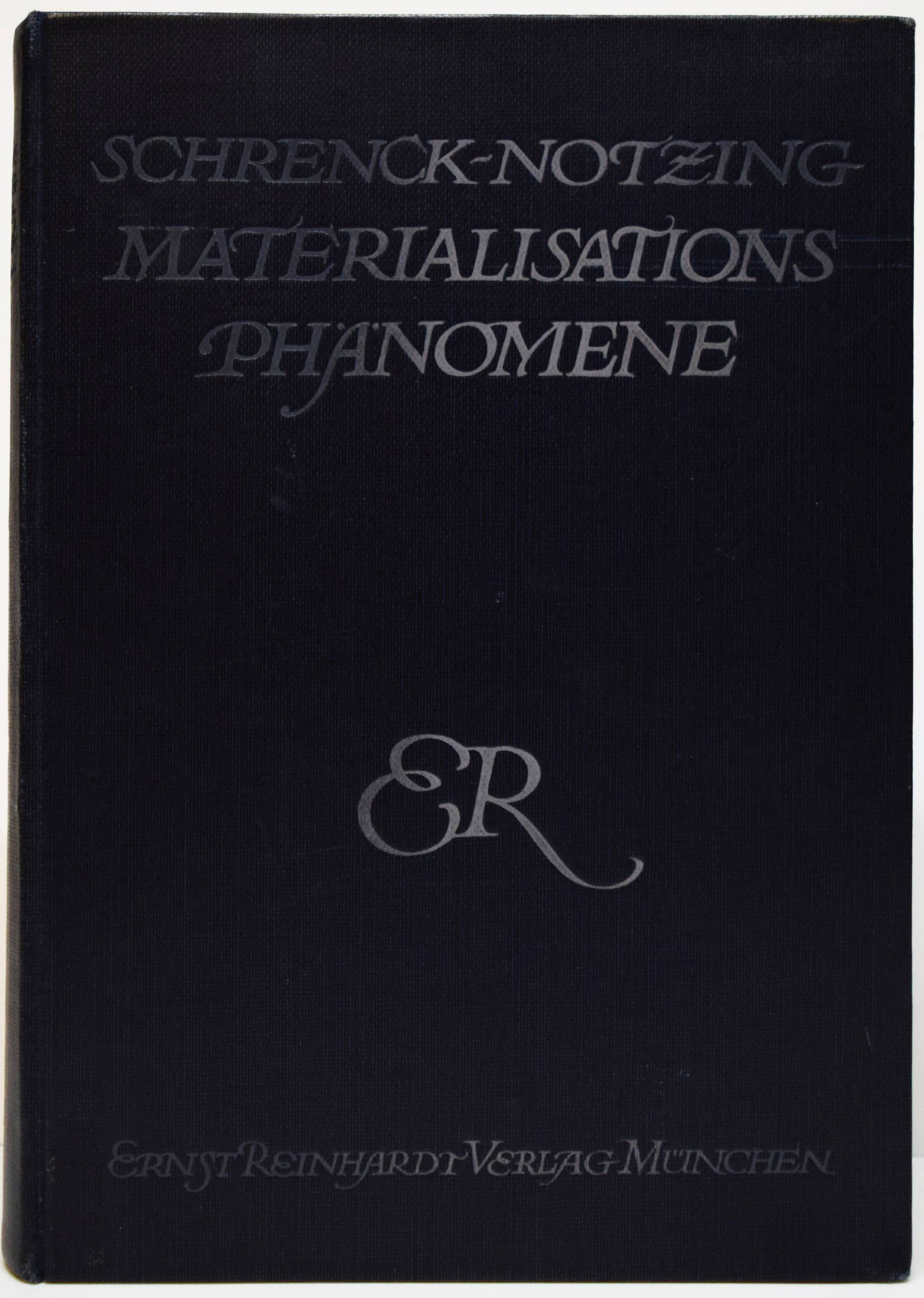 Schrenck-Notzing, Albert v. Materialisations-Phaenomene. Ein Beitrag zur Erforschung der mediumistischen Teleplastie. München, Ernst Reinhardt 1914. Gr.-8°. XI, (1), 523, (1) S. mit 150 Abbildungen auf 30 Tafeln. Orig.-Leinenband. Erste Ausgabe. – Stempel auf dem Titel, gutes Exemplar des interessanten Werkes.