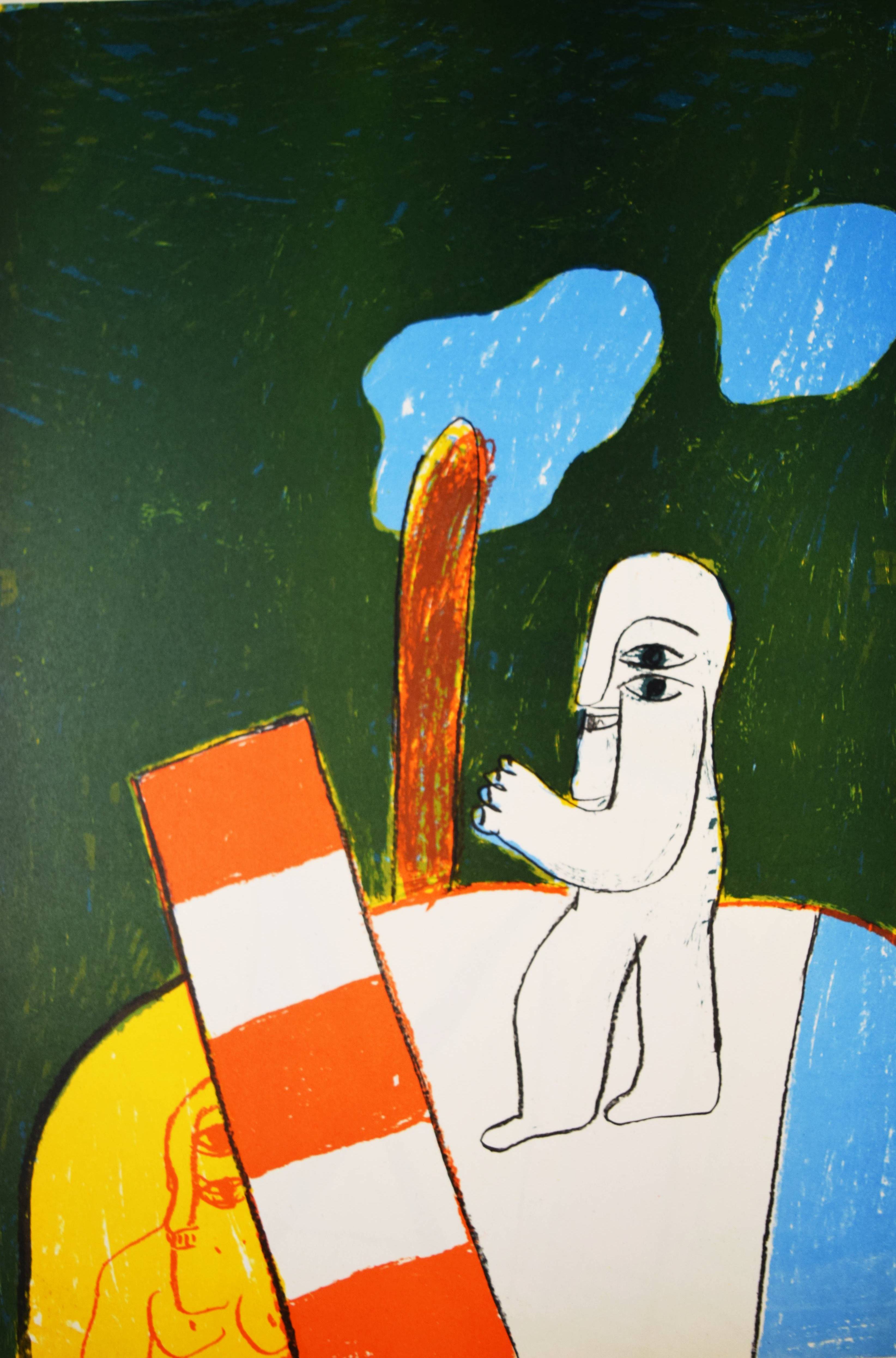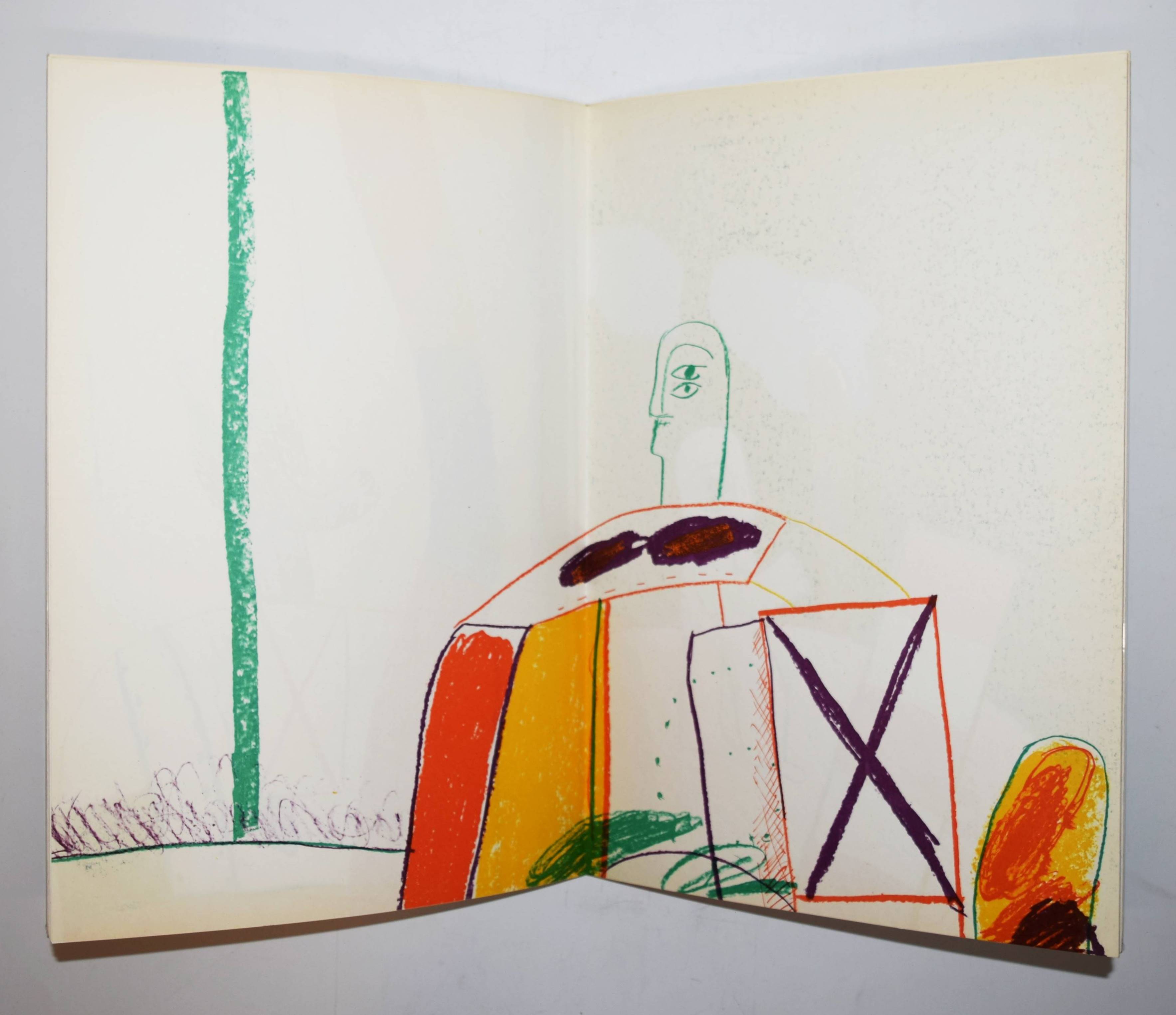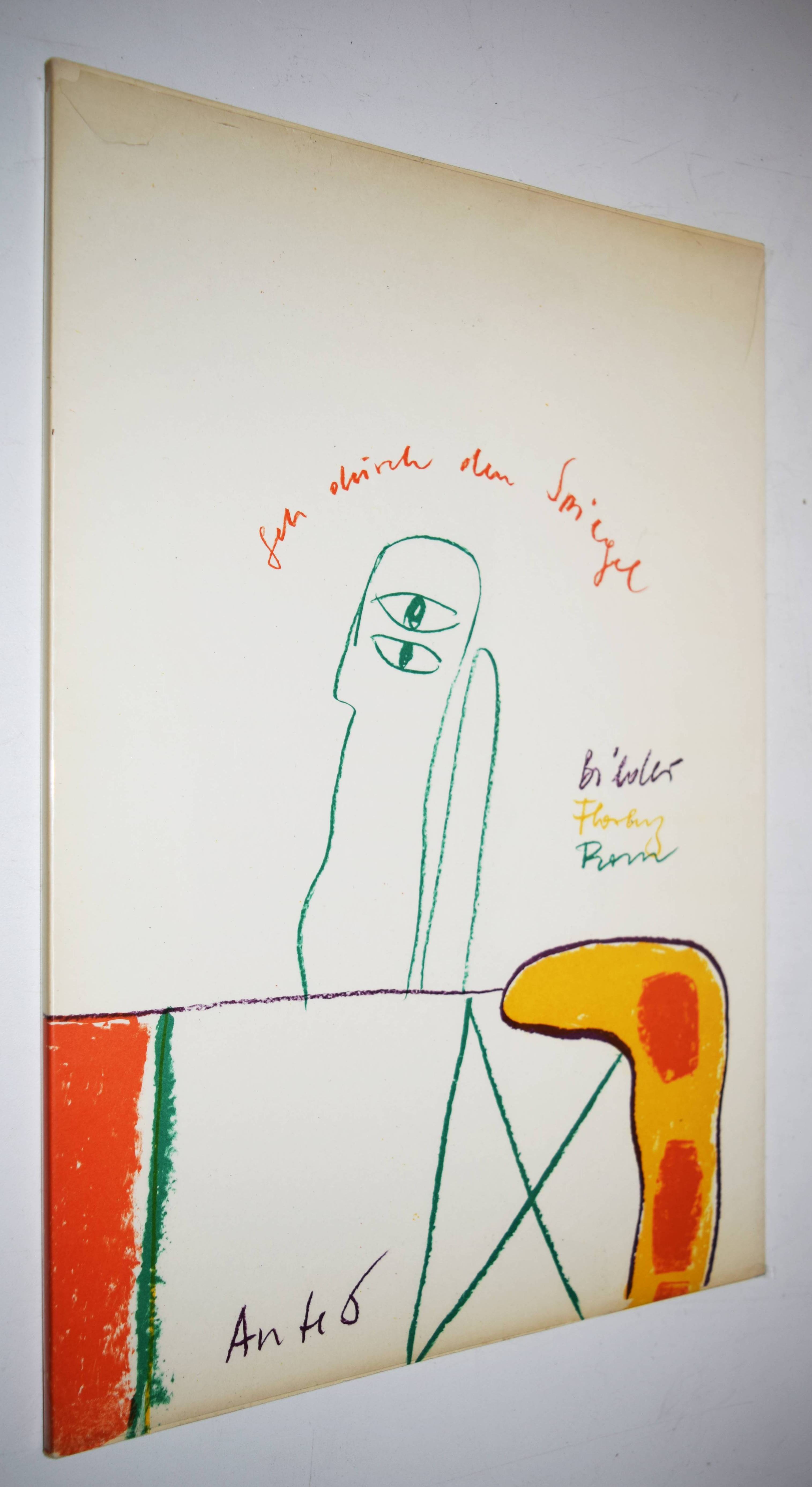 Antes, Horst. Geh durch den Spiegel. Bilder aus Florenz und Rom. Köln, Galerie Der Spiegel (1963). Folio (38 x 26 cm.). [22] S. mit 7 (4 doppelblattgr., 6 farbigen) Orig.-Lithographien, davon 1 auf dem Umschlag. Farbig illustr. Orig.-Kartonumschlag mit Klarsicht-Schutzumschlag. (Geh durch den Spiegel, Folge 36). Lutze 225-231. – Eines von 250 Exemplaren. – Mit einem Brief an Horst Antes von H.A.P. Grieshaber als Vorwort. – Horst Antes erhielt 1962 ein Stipendium für die Villa Romana in Florenz und 1963 für die Villa Massimo in Rom. „Die in Florenz und Rom entstandenen Bilder wurden im Mai 1963 in der Galerie Der Spiegel gezeigt und sind in diesem Katalog abgebildet. Die Platten zu den 7 Lithos wurden von Horst Antes in Rom gezeichnet und bei Eugen Natz in Karlsruhe gedruckt.“ – Der Klarsicht-Schutzumschlag mit Randläsuren, sonst sehr gut erhalten.