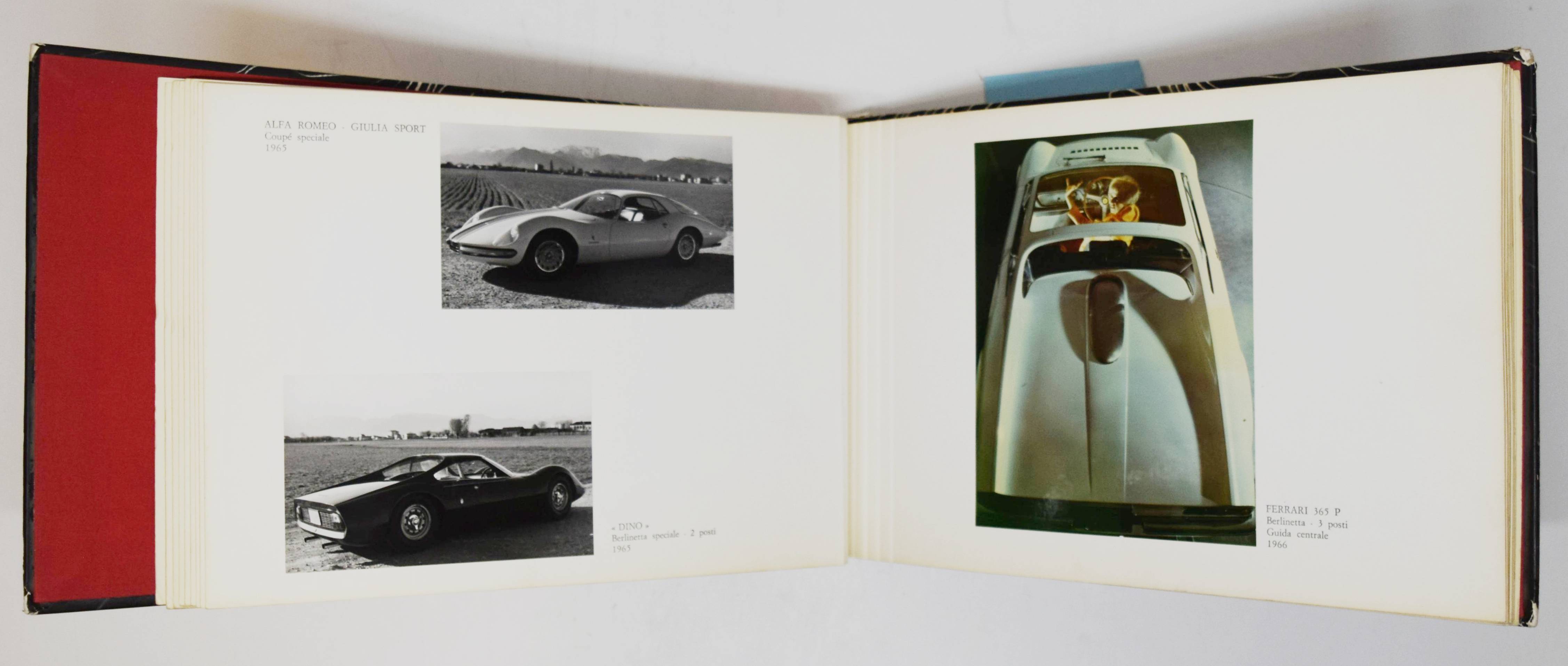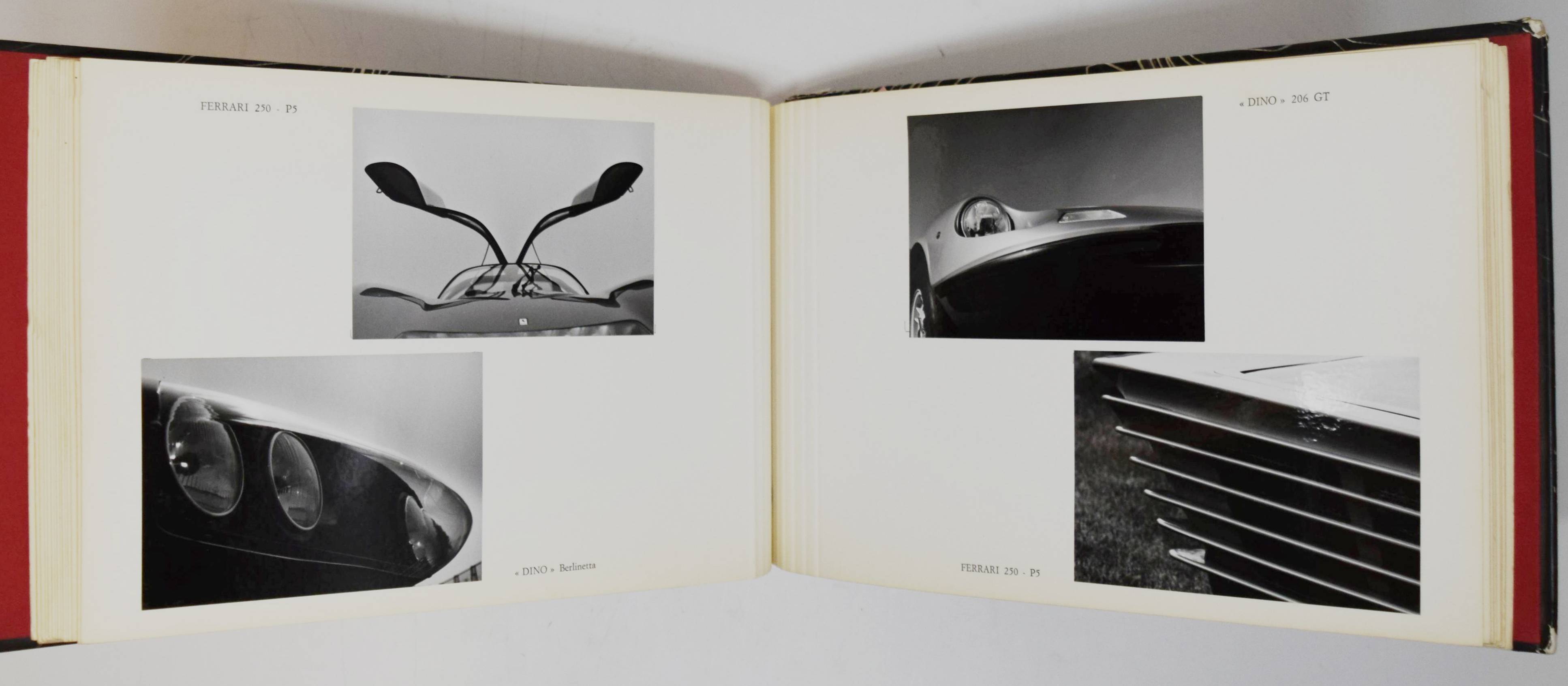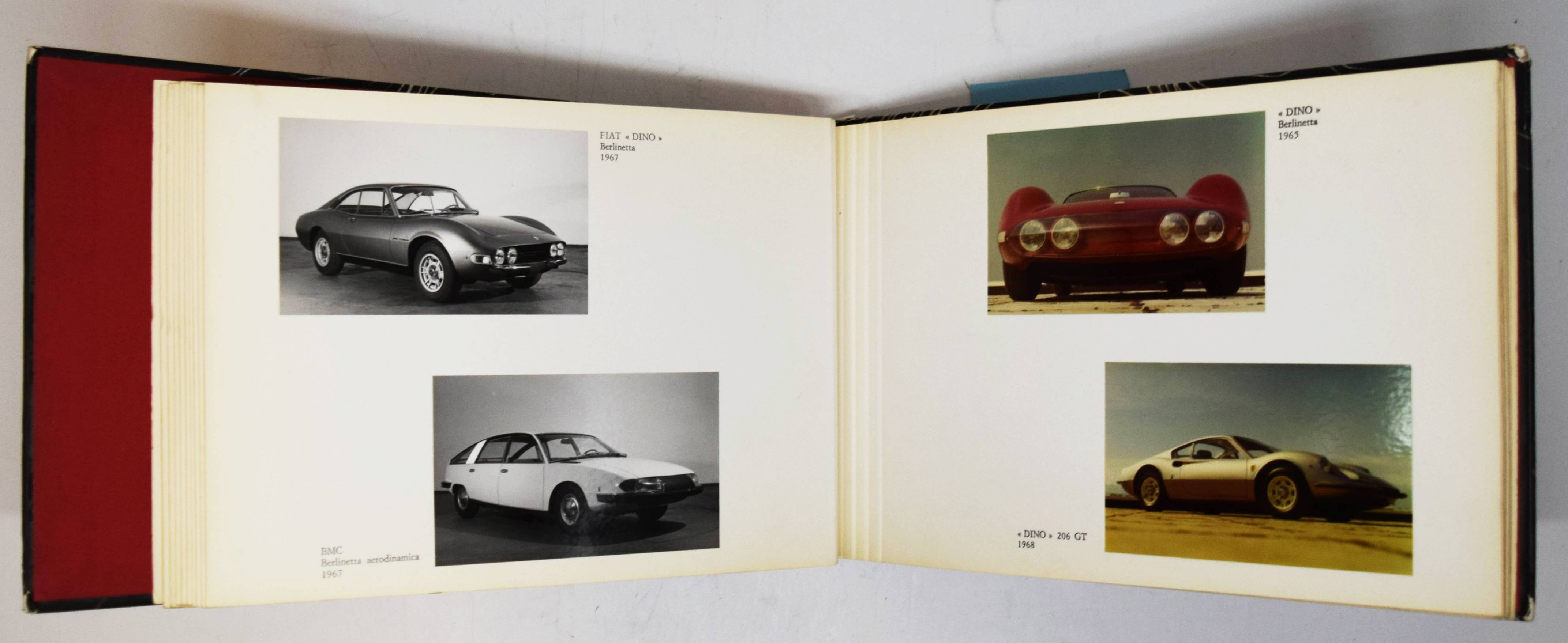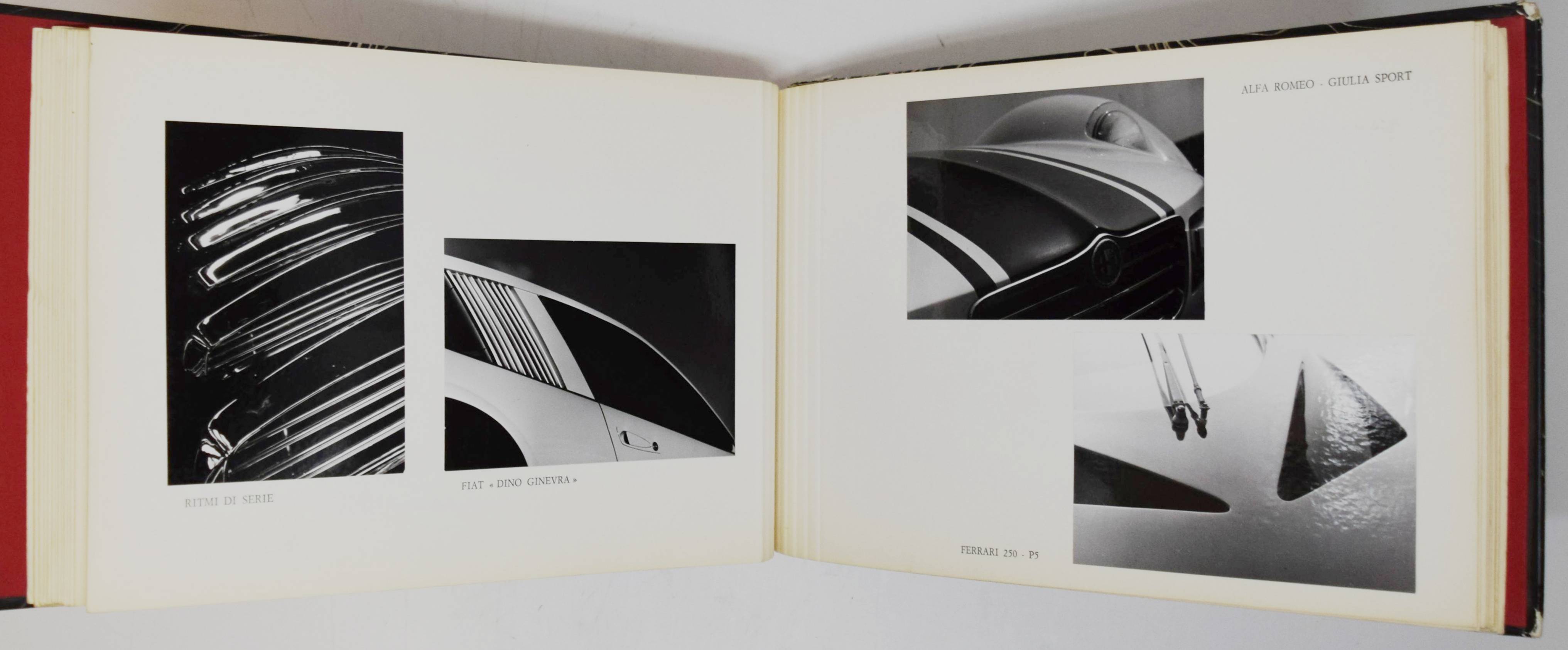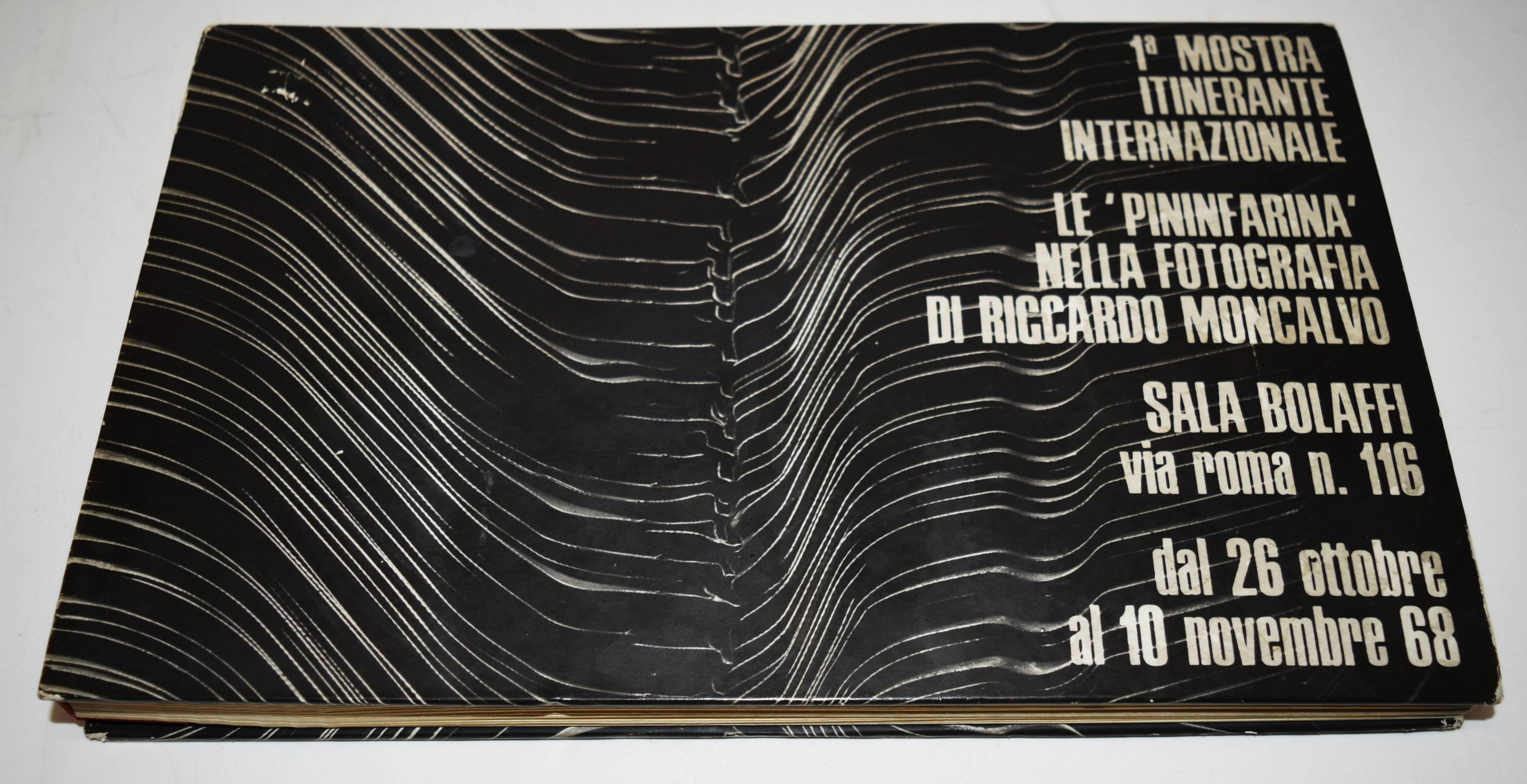 Moncalvo, Riccardo. Le Pininfarina nella fotografia di Riccardo Moncalvo. 1a mostra itinerante internazionale. Sala Bolaffi, Via Roma N. 116 (Turin), dal 26 ottobre al 10 novembre 68. (Cambiano, Pininfarina S.p.A. 1968). Quer-4° (20,5 x 33,5 cm.). 111 (67 farbige) montierte Orig.-Photographien (12 x 8 bis 13 x 17 cm.). Illustr. Orig.-Halbleinenband mit Metallschrauben-Heftung. Eines von wenigen Exemplaren. Wohl für Presse-Zwecke hergestelltes Album. Die hervorragenden Aufnahmen zeigen die Ausstellung, legendäre Fahrzeuge aus den 1950er und 1960er Jahren und kunstvolle Detail-Fotos aus der Fahrzeug-Produktion (″Ritmi di Serie“). Mit Fotografien von Prototypen, Sonder-Karosserien und Serien-Fahrzeugen, unter anderen Rolls-Royce Coupé 2 + 2 1951, Cisitalia Berlinetta 1947, Lancia Aurelia PF 200 Cabriolet und Coupé, Alfa Romeo Giulietta Spider 1954, Ferrari 250 GT 1957, Lancia Flavia Coupé 1961, Alfa Romeo Abarth Monoposto sperimentale 1957, Fiat 600 „Y“ Berlinetta aerodinamica 1962, Ferrari 250 Le Mans 1963, „Dino“ Berlinetta 1965, „Dino“ 206 GT 1968, Ferrari 275 GTB und Ferrari 250 Le Mans (mit Enzo Ferrari), Ferrari 250 P5 und Dino Competizione Berlinetta 1967 (mit 18 Detail-Aufnahmen). – Das italienische Designstudio Pininfarina „wurde 1930 als Carrozzeria Pinin Farina von Battista „Pinin“ Farina (1893–1966) gegründet. … Pininfarinas Designer entwarfen zahlreiche Fahrzeuge der Marken Alfa Romeo, Ferrari, Fiat, Jaguar, Lancia, Maserati und Peugeot. Nach Battistas Tod führten sein Sohn Sergio (1926–2012) und sein Enkel Andrea (1957–2008) die Firma weiter.“ (Wikipedia). – R. Moncalvo (1915-2008) „wurde 1915 in Turin geboren und begann 1928, in die Fußstapfen seines Vaters zu treten: Carlo Emilio Moncalvo war seit 1925 Inhaber des Fotostudios „Fotografia Artistica e Industriale“ (Künstlerische und Industrielle Fotografie). Seit 1930 war Riccardo Mitglied des Fotovereins Subalpina. Zwischen den beiden Weltkriegen wurden einige seiner Bilder in den Jahrbüchern „Luci ed Ombre“ (Lichter und Schatten) veröffentlicht, die zu den wegweisenden Werken der fortschrittlichsten fotografischen Forschung in Italien zählten. In seinen Bildern zeigt Moncalvo eine neue Vision, deren Ausdruck romantisch ist, aber auf die wesentliche Geometrie der Zeichen abzielt. Er ist einer der ersten Fotografen in Italien, der professionelle Farbdrucke in einem fotografischen Umfeld anfertigte. Seine Zusammenarbeit mit dem Architekten Carlo Mollino war von langer Dauer. Er nahm erfolgreich an verschiedenen Wettbewerben auf der ganzen Welt teil: Von 1956 bis 1968 war er in der FIAF-Rangliste vertreten und erhielt 1957 die EFIAP-Auszeichnung. 1988 ernannte ihn die FIAF zum Meister der italienischen Fotografie. Über sein Schaffen sind zahlreiche Bücher erschienen, von denen viele Monografien sind“ (riccardomoncalvo(dot)com übersetzt aus dem Italienischen). – Kanten und Gelenke etwas berieben, sonst sehr gut erhalten.