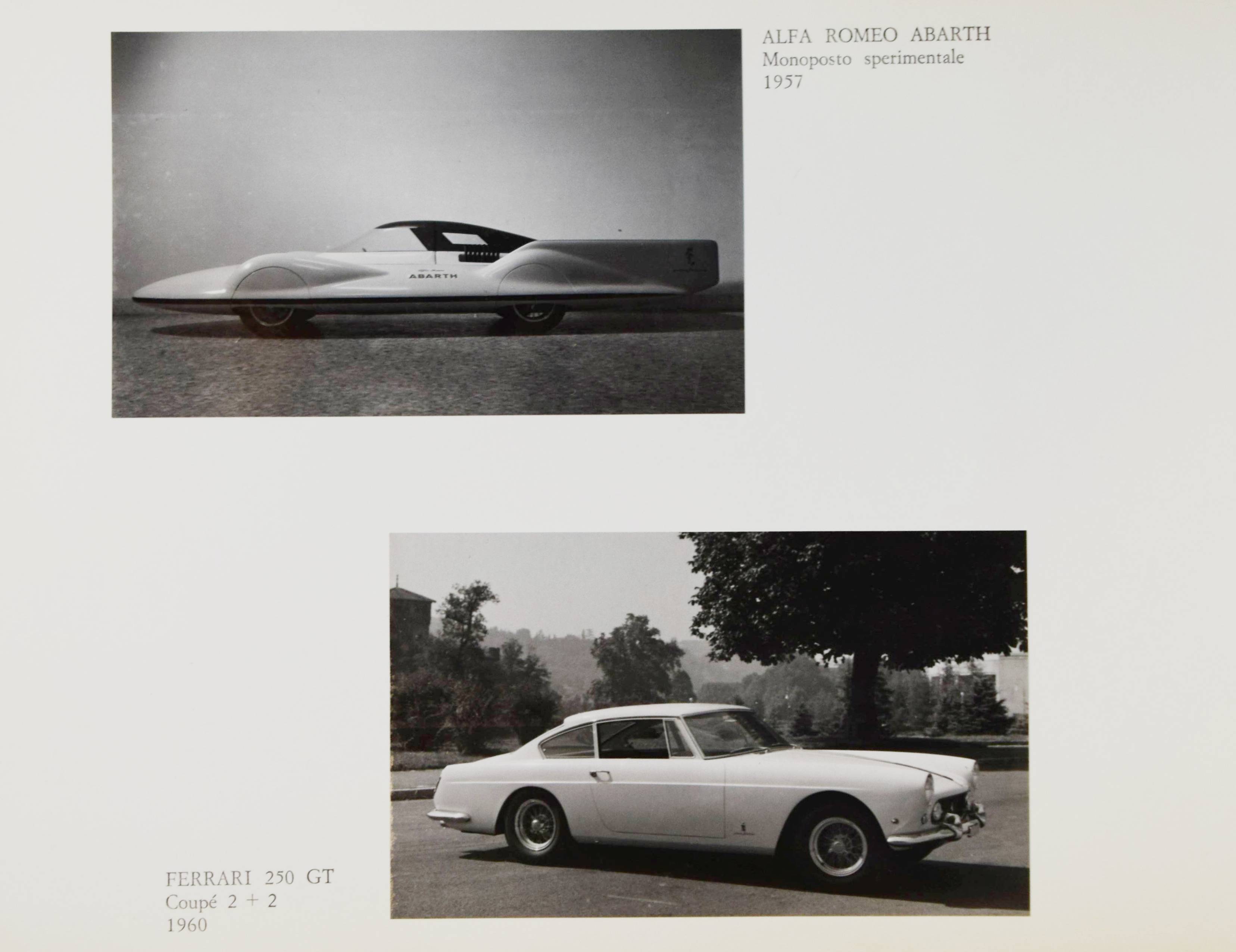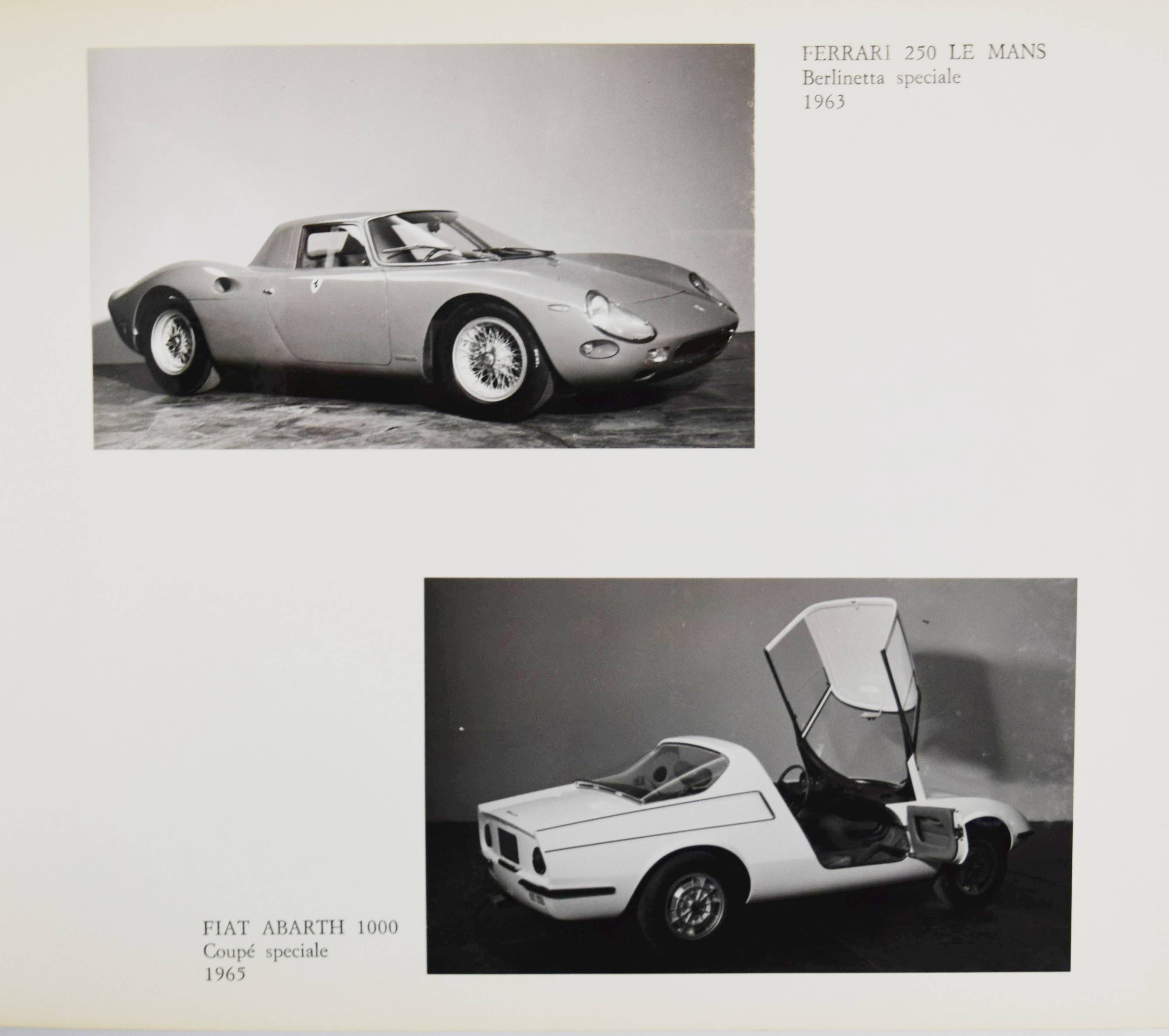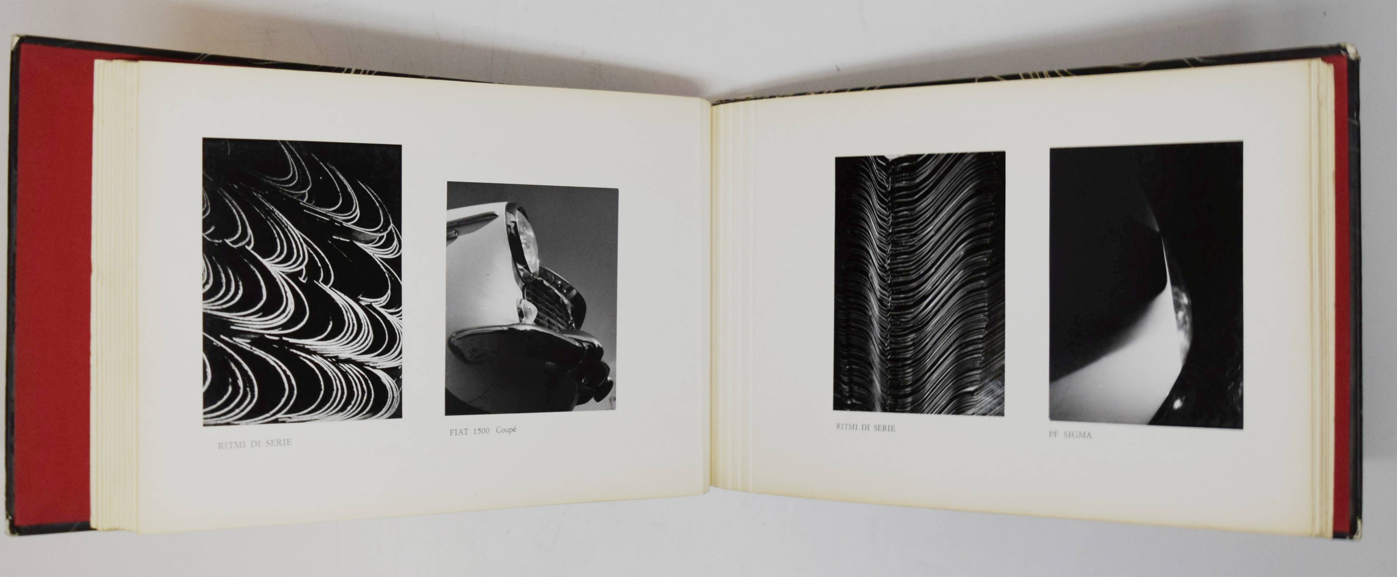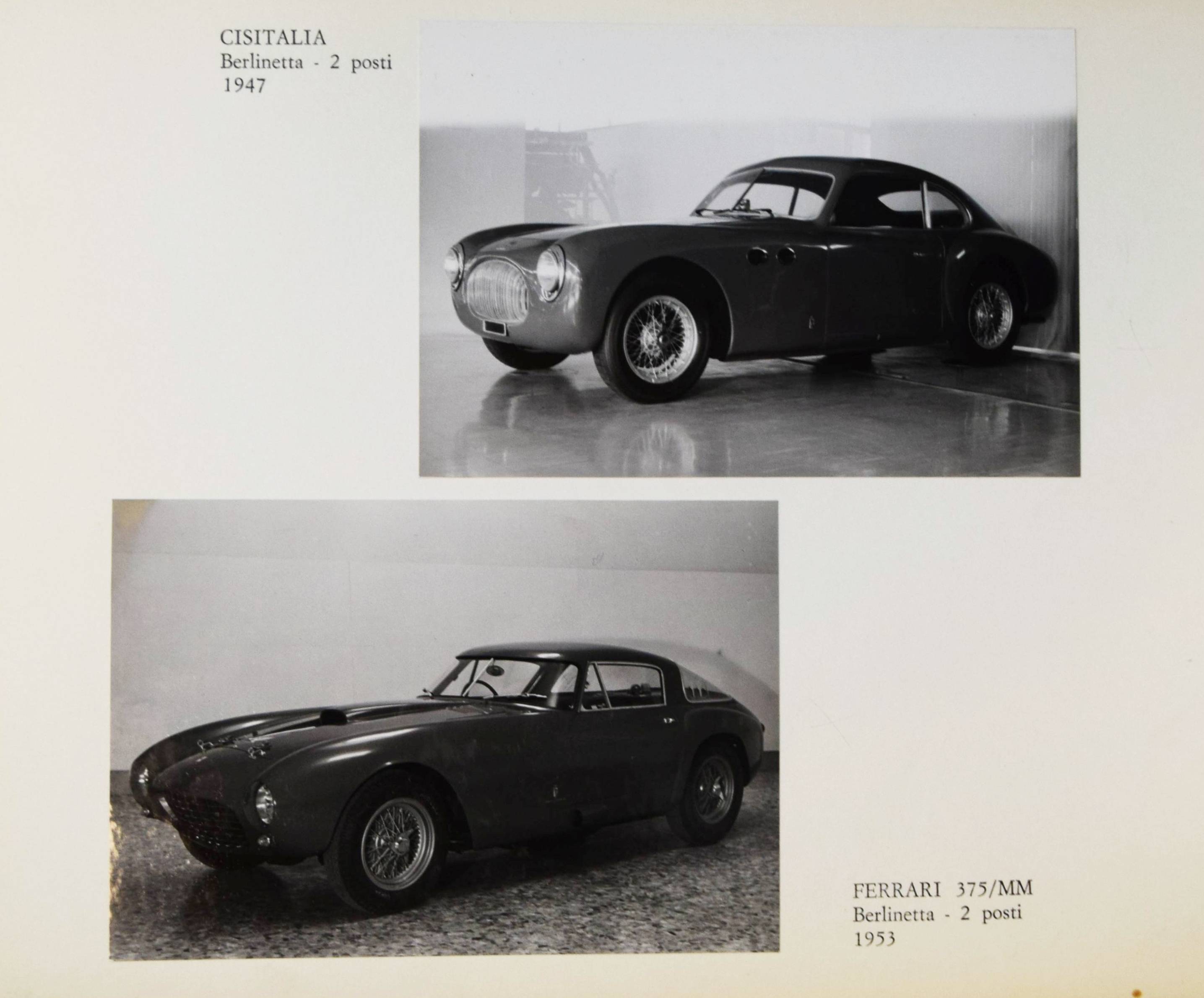 Moncalvo, Riccardo. Le Pininfarina nella fotografia di Riccardo Moncalvo. 1a mostra itinerante internazionale. Sala Bolaffi, Via Roma N. 116 (Turin), dal 26 ottobre al 10 novembre 68. (Cambiano, Pininfarina S.p.A. 1968). Quer-4° (20,5 x 33,5 cm.). 111 (67 farbige) montierte Orig.-Photographien (12 x 8 bis 13 x 17 cm.). Illustr. Orig.-Halbleinenband mit Metallschrauben-Heftung. Eines von wenigen Exemplaren. Wohl für Presse-Zwecke hergestelltes Album. Die hervorragenden Aufnahmen zeigen die Ausstellung, legendäre Fahrzeuge aus den 1950er und 1960er Jahren und kunstvolle Detail-Fotos aus der Fahrzeug-Produktion (″Ritmi di Serie“). Mit Fotografien von Prototypen, Sonder-Karosserien und Serien-Fahrzeugen, unter anderen Rolls-Royce Coupé 2 + 2 1951, Cisitalia Berlinetta 1947, Lancia Aurelia PF 200 Cabriolet und Coupé, Alfa Romeo Giulietta Spider 1954, Ferrari 250 GT 1957, Lancia Flavia Coupé 1961, Alfa Romeo Abarth Monoposto sperimentale 1957, Fiat 600 „Y“ Berlinetta aerodinamica 1962, Ferrari 250 Le Mans 1963, „Dino“ Berlinetta 1965, „Dino“ 206 GT 1968, Ferrari 275 GTB und Ferrari 250 Le Mans (mit Enzo Ferrari), Ferrari 250 P5 und Dino Competizione Berlinetta 1967 (mit 18 Detail-Aufnahmen). – Das italienische Designstudio Pininfarina „wurde 1930 als Carrozzeria Pinin Farina von Battista „Pinin“ Farina (1893–1966) gegründet. … Pininfarinas Designer entwarfen zahlreiche Fahrzeuge der Marken Alfa Romeo, Ferrari, Fiat, Jaguar, Lancia, Maserati und Peugeot. Nach Battistas Tod führten sein Sohn Sergio (1926–2012) und sein Enkel Andrea (1957–2008) die Firma weiter.“ (Wikipedia). – R. Moncalvo (1915-2008) „wurde 1915 in Turin geboren und begann 1928, in die Fußstapfen seines Vaters zu treten: Carlo Emilio Moncalvo war seit 1925 Inhaber des Fotostudios „Fotografia Artistica e Industriale“ (Künstlerische und Industrielle Fotografie). Seit 1930 war Riccardo Mitglied des Fotovereins Subalpina. Zwischen den beiden Weltkriegen wurden einige seiner Bilder in den Jahrbüchern „Luci ed Ombre“ (Lichter und Schatten) veröffentlicht, die zu den wegweisenden Werken der fortschrittlichsten fotografischen Forschung in Italien zählten. In seinen Bildern zeigt Moncalvo eine neue Vision, deren Ausdruck romantisch ist, aber auf die wesentliche Geometrie der Zeichen abzielt. Er ist einer der ersten Fotografen in Italien, der professionelle Farbdrucke in einem fotografischen Umfeld anfertigte. Seine Zusammenarbeit mit dem Architekten Carlo Mollino war von langer Dauer. Er nahm erfolgreich an verschiedenen Wettbewerben auf der ganzen Welt teil: Von 1956 bis 1968 war er in der FIAF-Rangliste vertreten und erhielt 1957 die EFIAP-Auszeichnung. 1988 ernannte ihn die FIAF zum Meister der italienischen Fotografie. Über sein Schaffen sind zahlreiche Bücher erschienen, von denen viele Monografien sind“ (riccardomoncalvo(dot)com übersetzt aus dem Italienischen). – Kanten und Gelenke etwas berieben, sonst sehr gut erhalten.