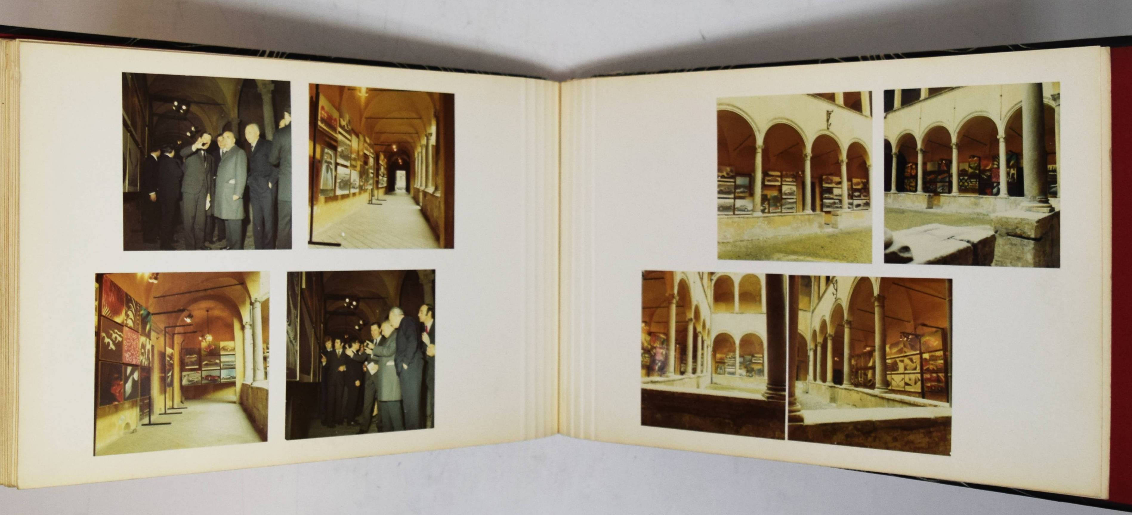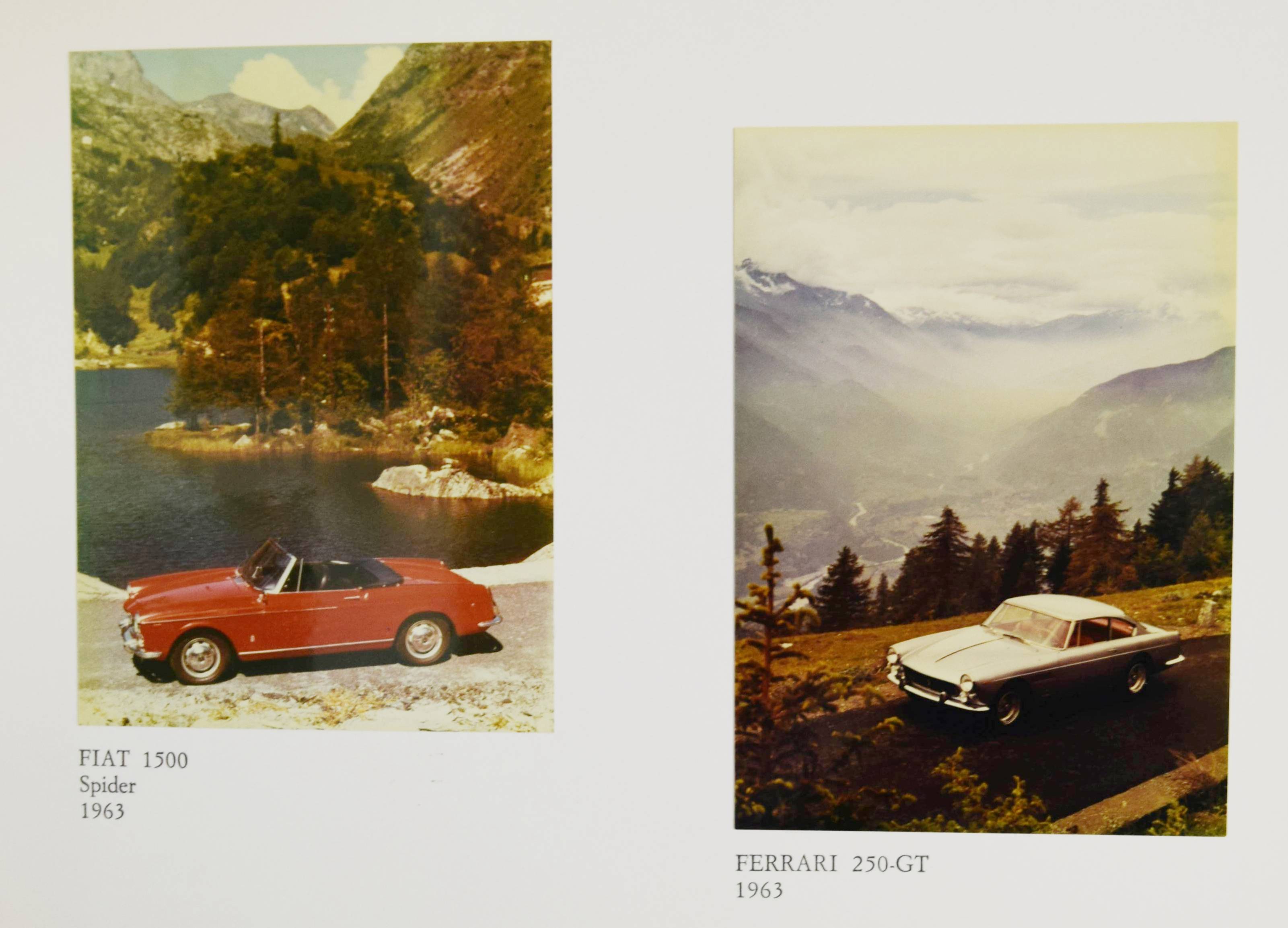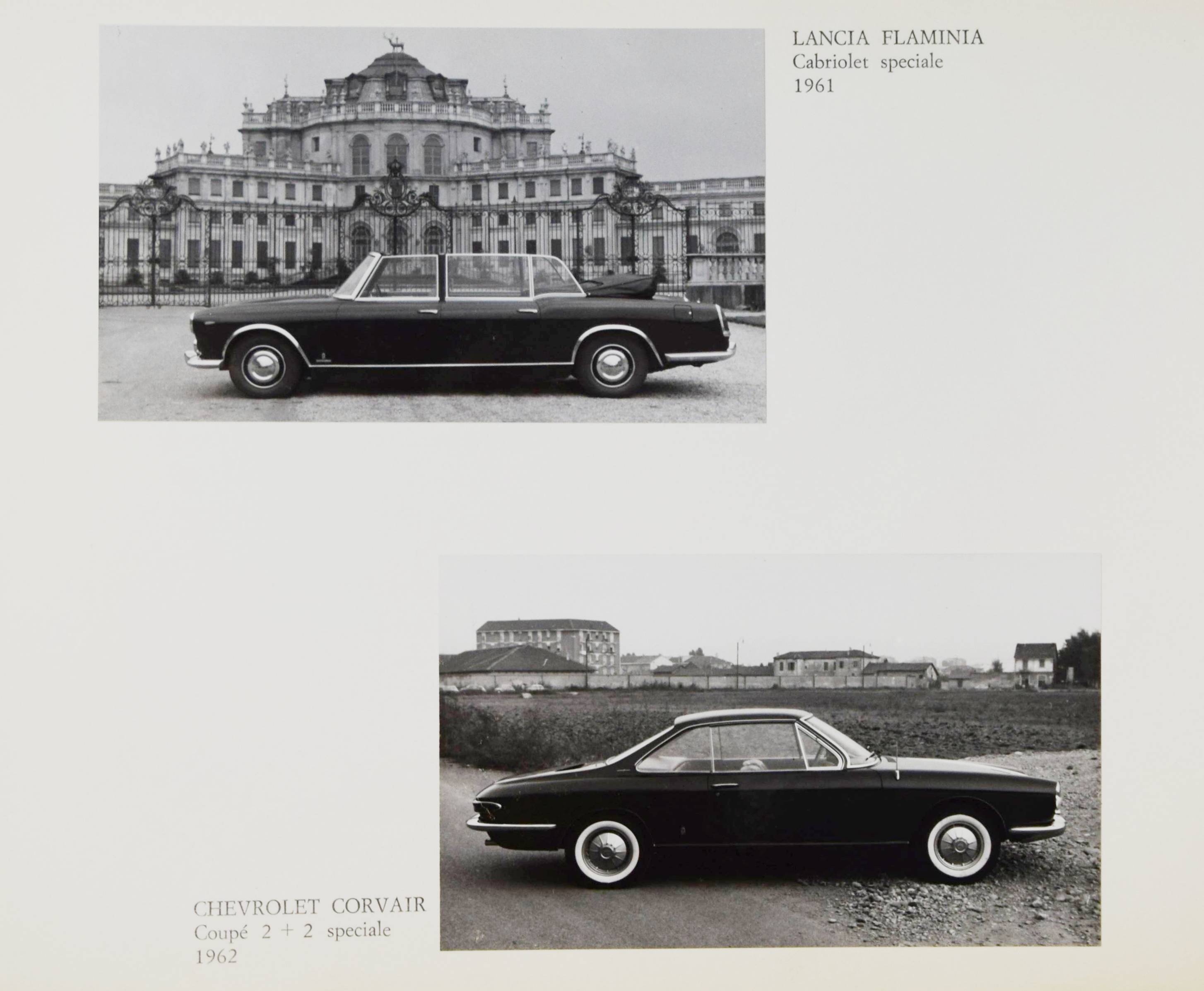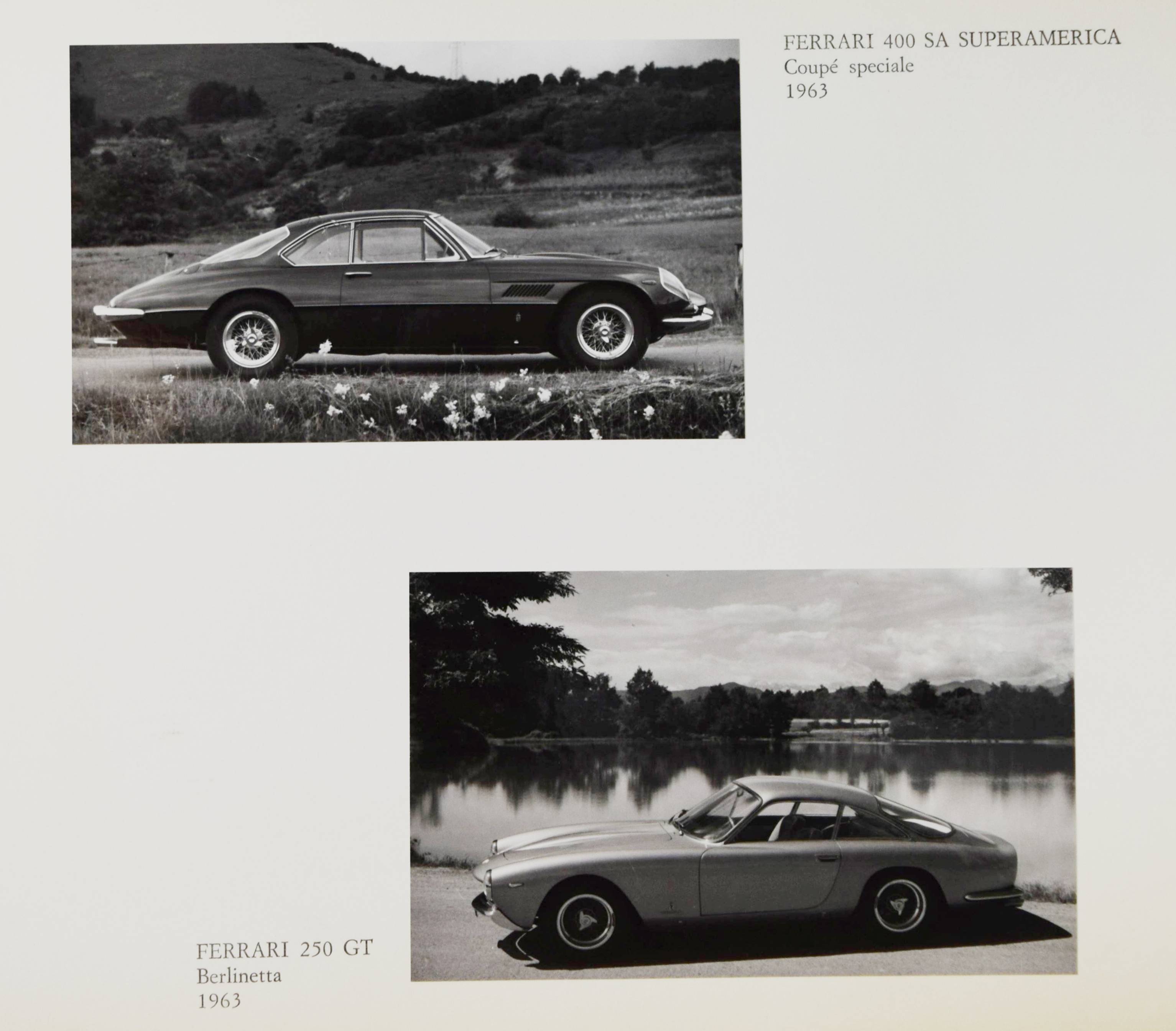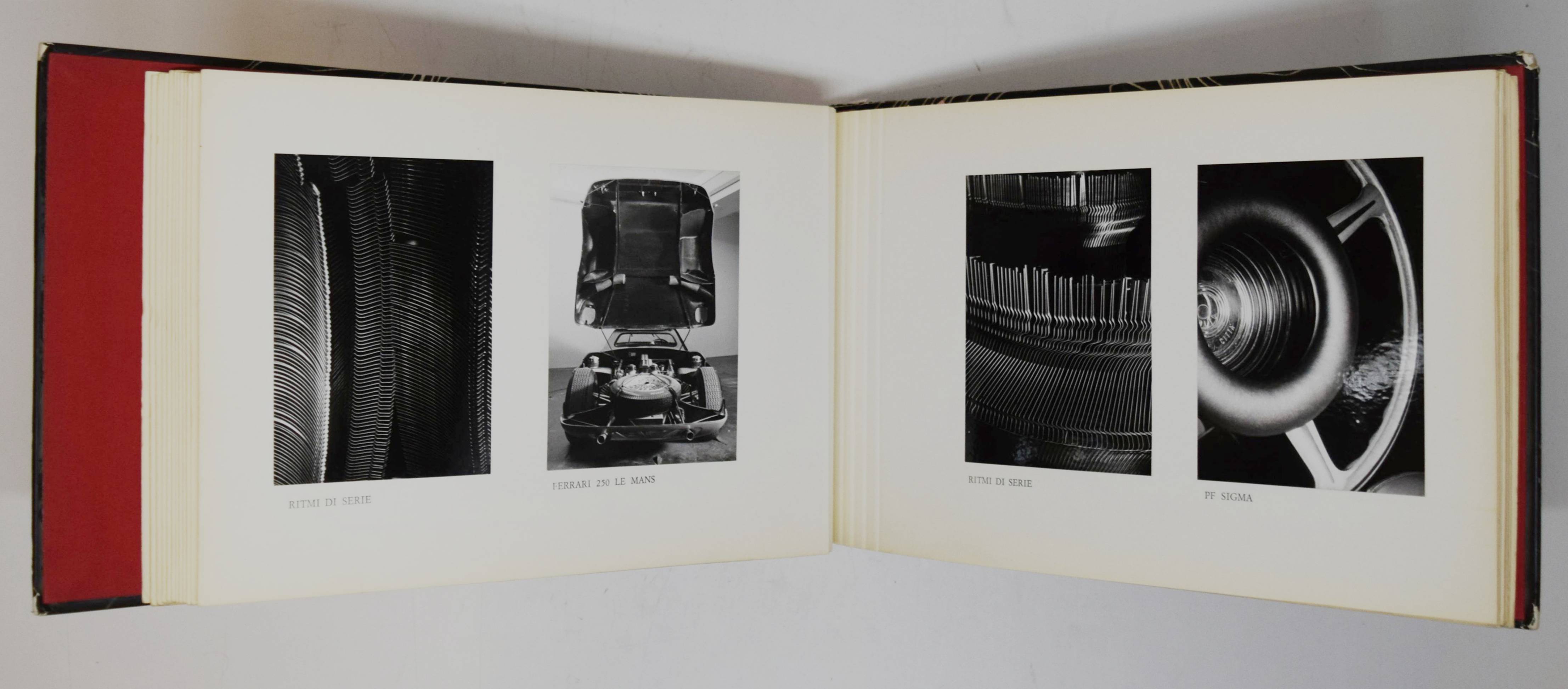 Moncalvo, Riccardo. Le Pininfarina nella fotografia di Riccardo Moncalvo. 1a mostra itinerante internazionale. Sala Bolaffi, Via Roma N. 116 (Turin), dal 26 ottobre al 10 novembre 68. (Cambiano, Pininfarina S.p.A. 1968). Quer-4° (20,5 x 33,5 cm.). 111 (67 farbige) montierte Orig.-Photographien (12 x 8 bis 13 x 17 cm.). Illustr. Orig.-Halbleinenband mit Metallschrauben-Heftung. Eines von wenigen Exemplaren. Wohl für Presse-Zwecke hergestelltes Album. Die hervorragenden Aufnahmen zeigen die Ausstellung, legendäre Fahrzeuge aus den 1950er und 1960er Jahren und kunstvolle Detail-Fotos aus der Fahrzeug-Produktion (″Ritmi di Serie“). Mit Fotografien von Prototypen, Sonder-Karosserien und Serien-Fahrzeugen, unter anderen Rolls-Royce Coupé 2 + 2 1951, Cisitalia Berlinetta 1947, Lancia Aurelia PF 200 Cabriolet und Coupé, Alfa Romeo Giulietta Spider 1954, Ferrari 250 GT 1957, Lancia Flavia Coupé 1961, Alfa Romeo Abarth Monoposto sperimentale 1957, Fiat 600 „Y“ Berlinetta aerodinamica 1962, Ferrari 250 Le Mans 1963, „Dino“ Berlinetta 1965, „Dino“ 206 GT 1968, Ferrari 275 GTB und Ferrari 250 Le Mans (mit Enzo Ferrari), Ferrari 250 P5 und Dino Competizione Berlinetta 1967 (mit 18 Detail-Aufnahmen). – Das italienische Designstudio Pininfarina „wurde 1930 als Carrozzeria Pinin Farina von Battista „Pinin“ Farina (1893–1966) gegründet. … Pininfarinas Designer entwarfen zahlreiche Fahrzeuge der Marken Alfa Romeo, Ferrari, Fiat, Jaguar, Lancia, Maserati und Peugeot. Nach Battistas Tod führten sein Sohn Sergio (1926–2012) und sein Enkel Andrea (1957–2008) die Firma weiter.“ (Wikipedia). – R. Moncalvo (1915-2008) „wurde 1915 in Turin geboren und begann 1928, in die Fußstapfen seines Vaters zu treten: Carlo Emilio Moncalvo war seit 1925 Inhaber des Fotostudios „Fotografia Artistica e Industriale“ (Künstlerische und Industrielle Fotografie). Seit 1930 war Riccardo Mitglied des Fotovereins Subalpina. Zwischen den beiden Weltkriegen wurden einige seiner Bilder in den Jahrbüchern „Luci ed Ombre“ (Lichter und Schatten) veröffentlicht, die zu den wegweisenden Werken der fortschrittlichsten fotografischen Forschung in Italien zählten. In seinen Bildern zeigt Moncalvo eine neue Vision, deren Ausdruck romantisch ist, aber auf die wesentliche Geometrie der Zeichen abzielt. Er ist einer der ersten Fotografen in Italien, der professionelle Farbdrucke in einem fotografischen Umfeld anfertigte. Seine Zusammenarbeit mit dem Architekten Carlo Mollino war von langer Dauer. Er nahm erfolgreich an verschiedenen Wettbewerben auf der ganzen Welt teil: Von 1956 bis 1968 war er in der FIAF-Rangliste vertreten und erhielt 1957 die EFIAP-Auszeichnung. 1988 ernannte ihn die FIAF zum Meister der italienischen Fotografie. Über sein Schaffen sind zahlreiche Bücher erschienen, von denen viele Monografien sind“ (riccardomoncalvo(dot)com übersetzt aus dem Italienischen). – Kanten und Gelenke etwas berieben, sonst sehr gut erhalten.