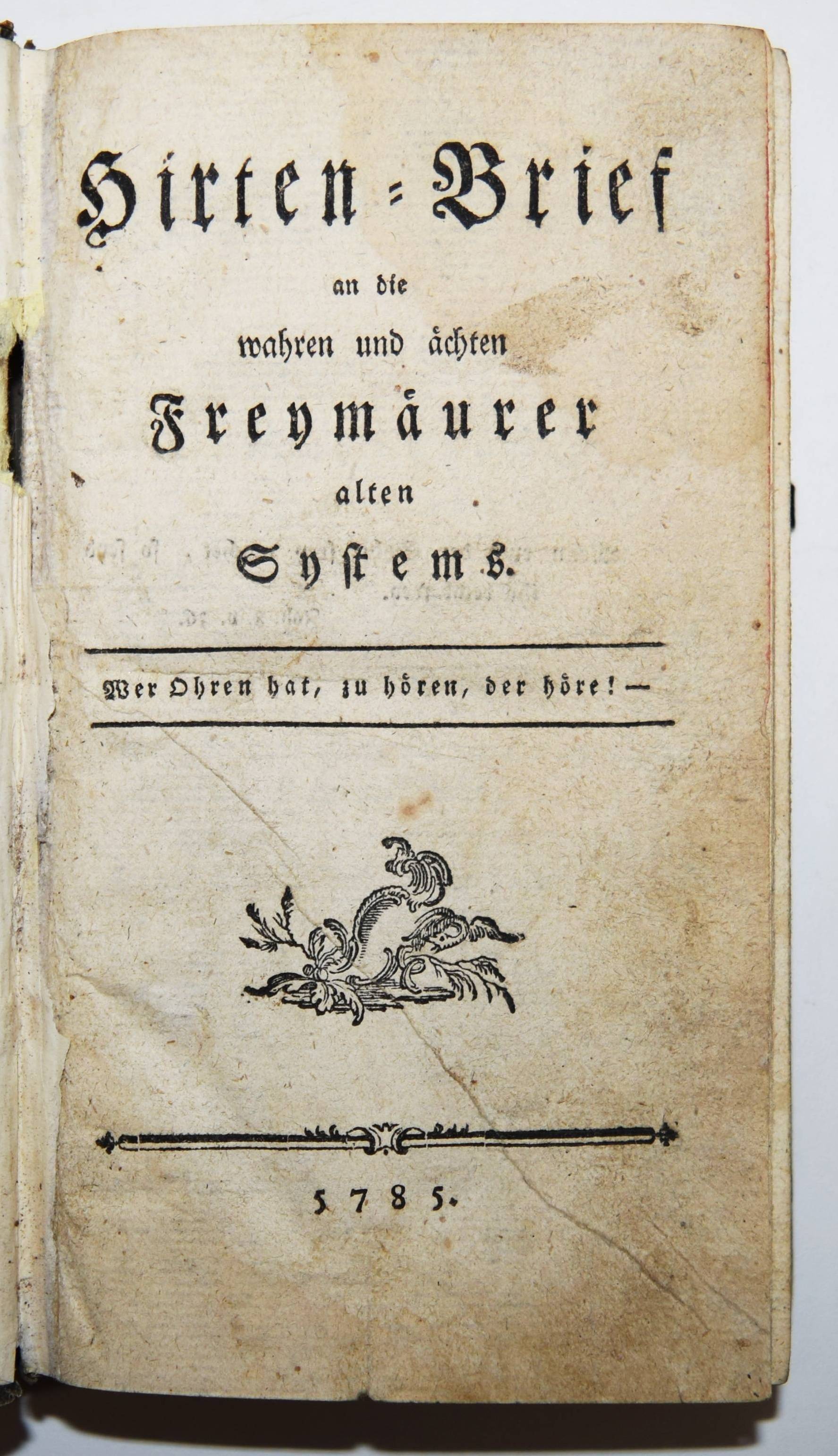 Haugwitz, Hirten-Brief an die wahren und ächten Freymäurer alten Systems