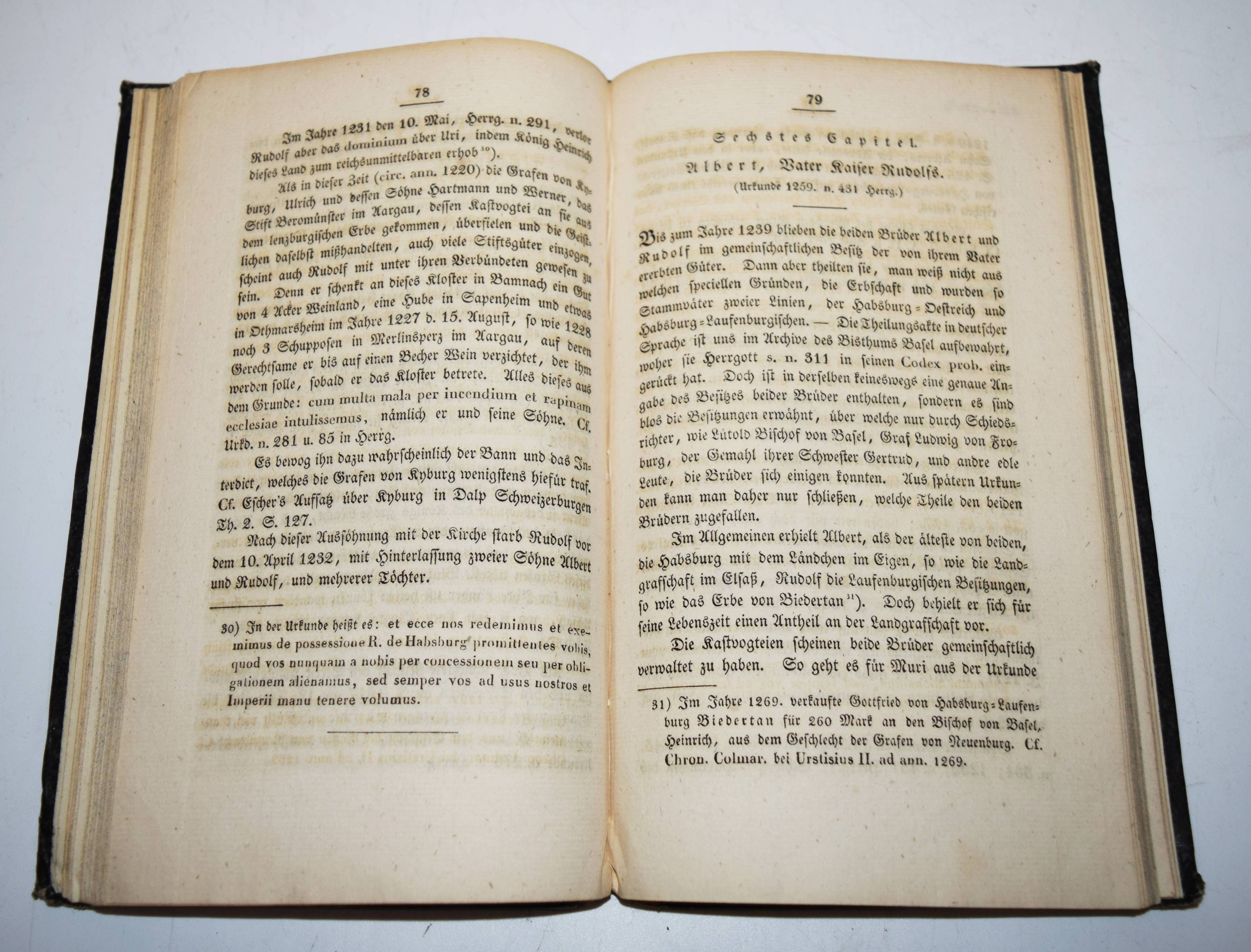 Roepell, Richard. Die Grafen von Habsburg. Eine von der Universität zu Halle gekrönte Abhandlung über Genealogie und Besitzungen dieses Geschlechts bis zur Thronbesteigung Rudolfs im J. 1273. Halle, C. A. Schwetschke und Sohn 1832. 8°. 136 S. mit 1 gefalteten Stamm-Tafel. Pappband der Zeit mit goldgepr. Rückentitel. ADB LIII, 464 ff. GV 119, 143. – Erste Ausgabe, selten. – R. Roepell (1808-1893) war über 50 Jahre lang Professor für Geschichte an der Universität Breslau und wurde anlässlich „seiner 50jährigen Breslauer Universitätslehrthätigkeit zum Geheimen Regierungsrat ernannt. Außerdem wurde seine Büste, ein Geschenk seiner Universitätscollegen, im Provinzialmuseum aufgestellt und eine „Roepellstiftung“ zur Unterstützung von Studirenden gegründet.“ (H. Hahn in ADB). – Kanten etwas berieben und bestoßen, sehr gutes Exemplar.