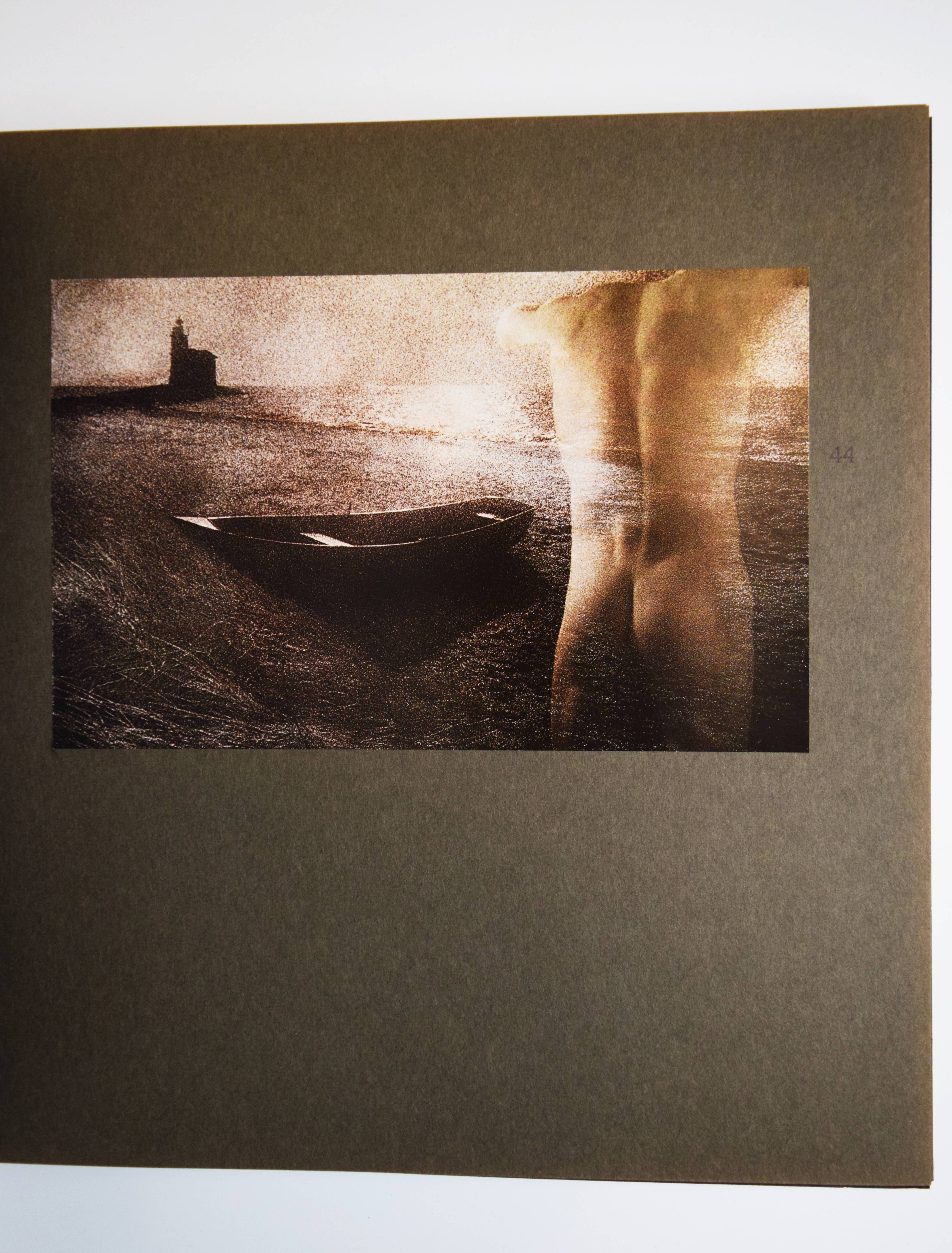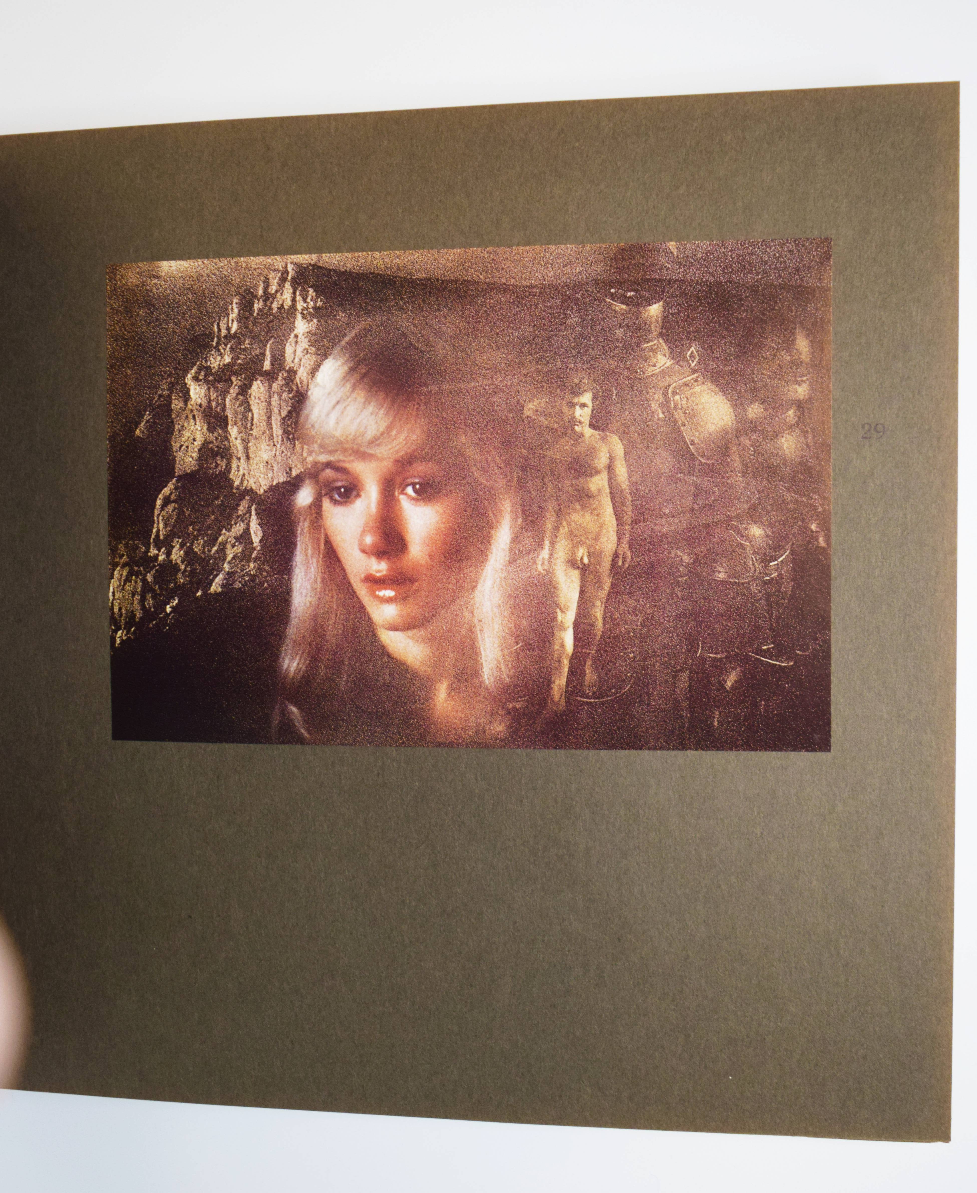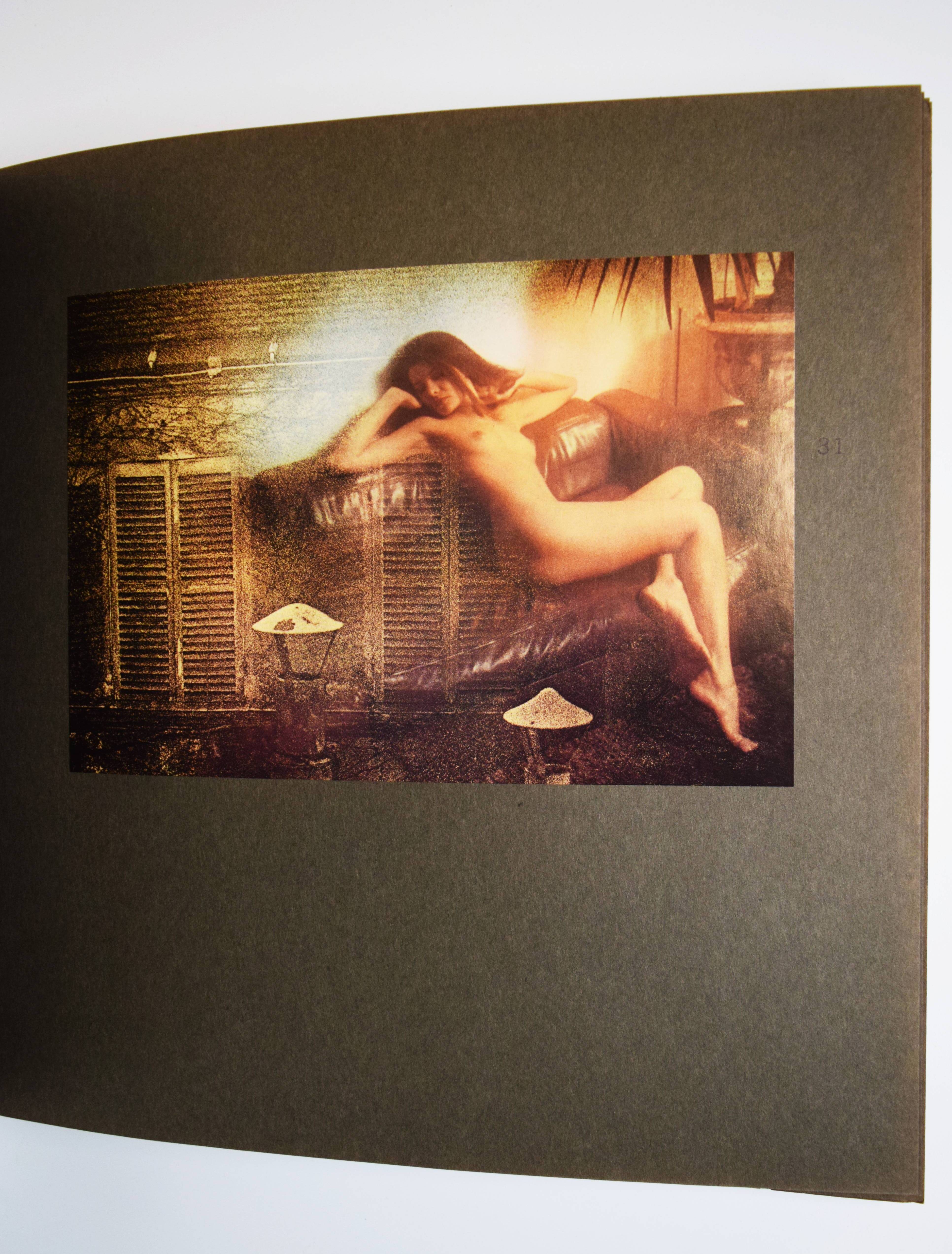Groebli, René. Fantasies. 47 photographs. (With foreword and 47 Haikus by John Hennessey). New York, Images Gallery und München, Verlag Laterna Magica (1978). Quer-Folio (33 x 35 cm.). [51] Bl. mit 47 mont. Farbtafeln und 1 rückseitig signierten Orig.-Farbphotographie (25 x 20 cm.) sowie Beiheft (8 S., dt. Übersetzung). Orig.-Kunstlederband mit mont. Deckelbild in Pappschuber. Bertolotti 253. – Eines von 696 num. Exemplaren; auf dem Titelblatt von R. Groebli signiert und mit eigenhändiger Widmung: „für Atti u. Jürg Nigg 28. Nov. 78“. – „Surreal, very dreamlike atmospheres can be seen in René Groebli’s erotic photomontages, published in 1978 in Fantasies; these are metaphorical transpositions of women’s memories, fantasies, and desires, in which the man is often clearly present, but sometimes only hypothetically so“ (A. Bertolotti). – Sehr gut erhalten.