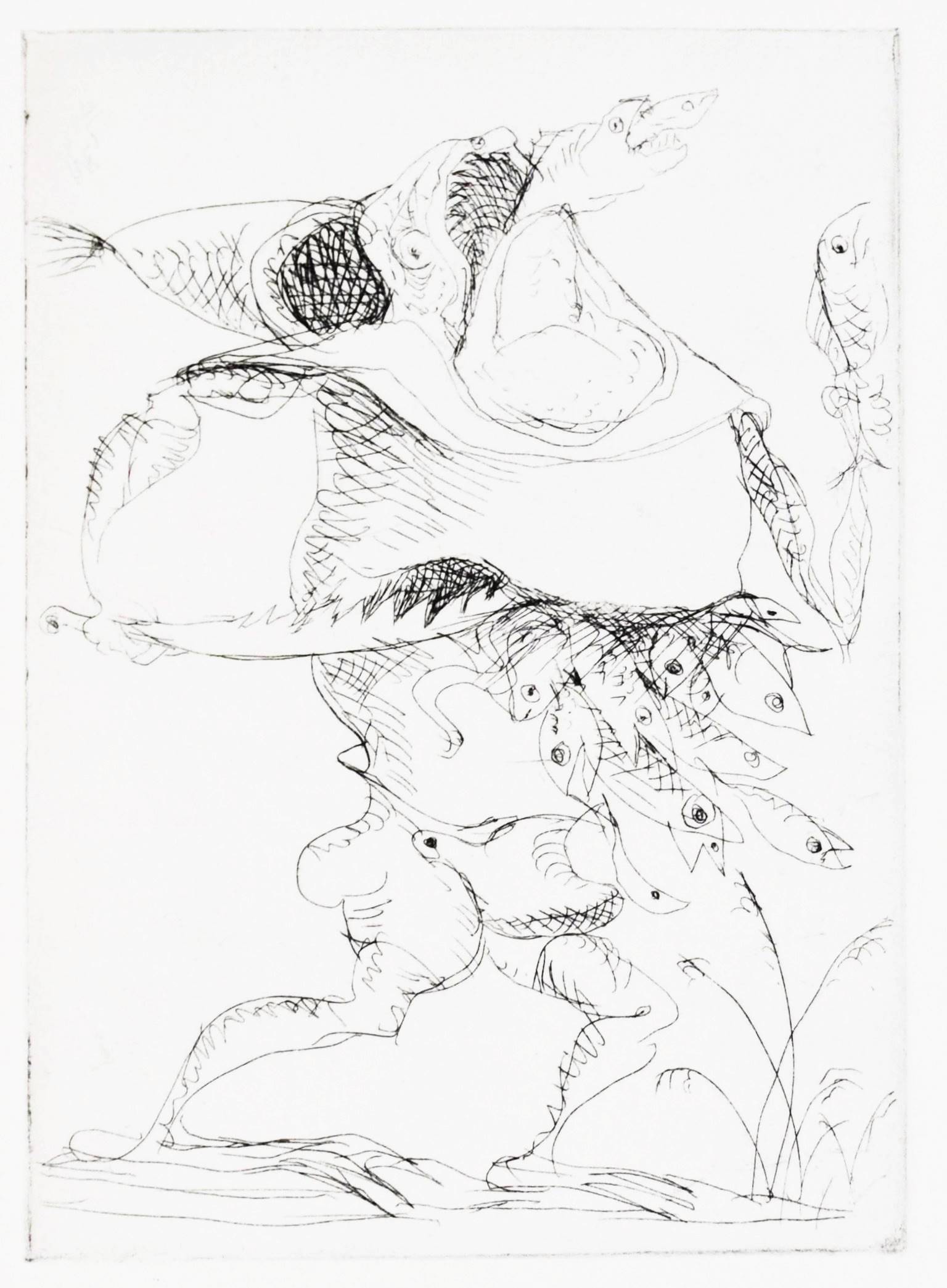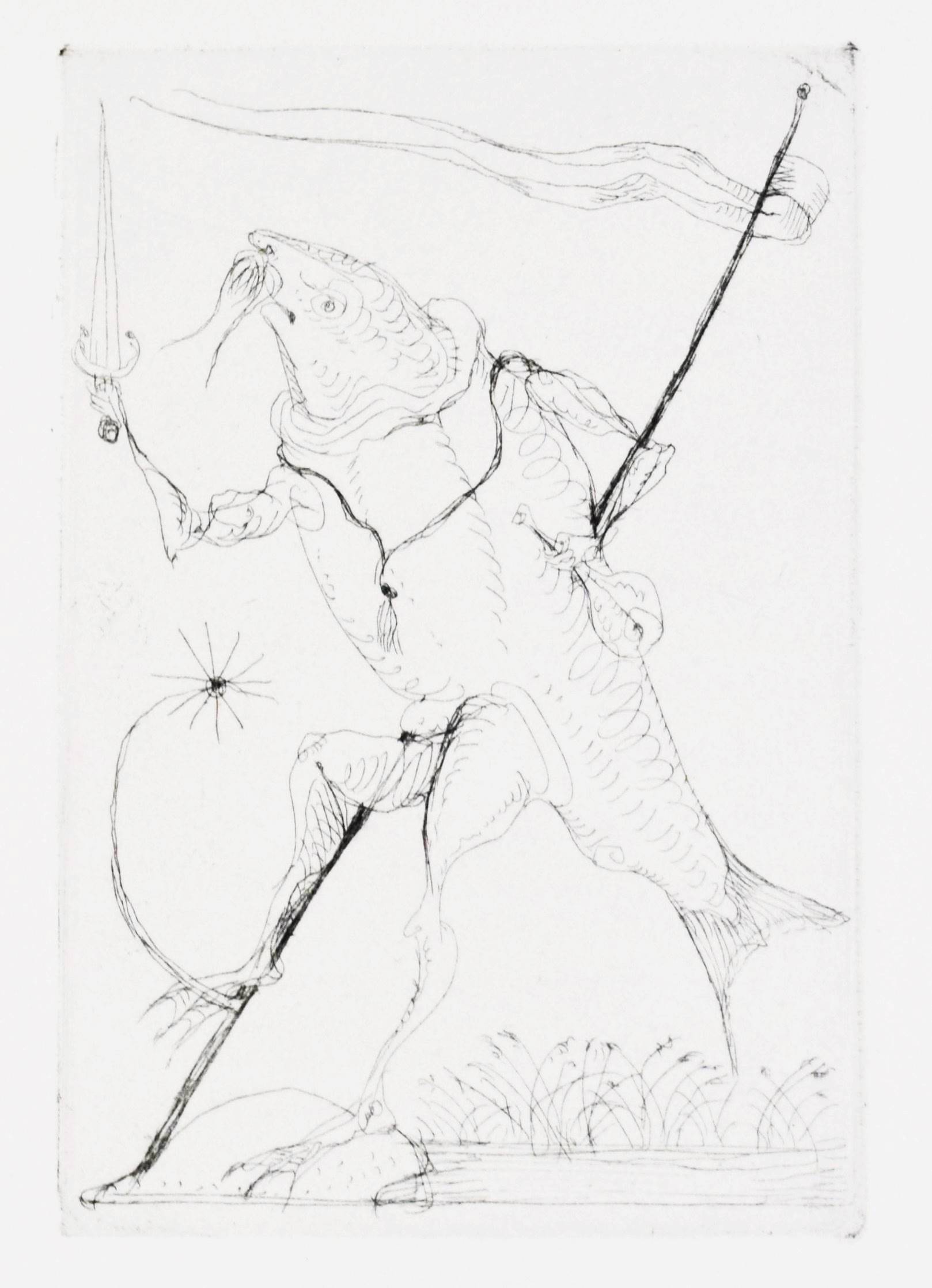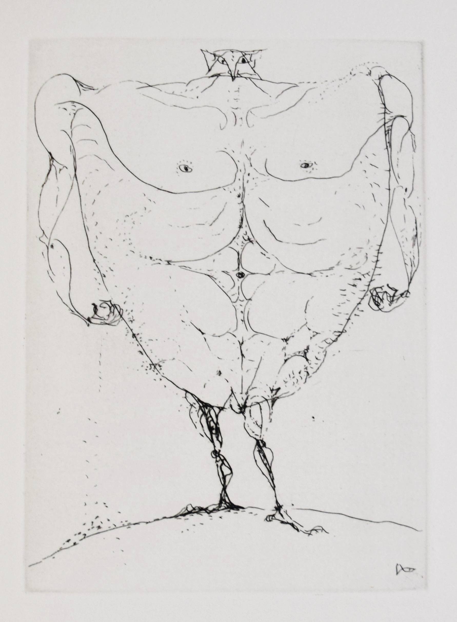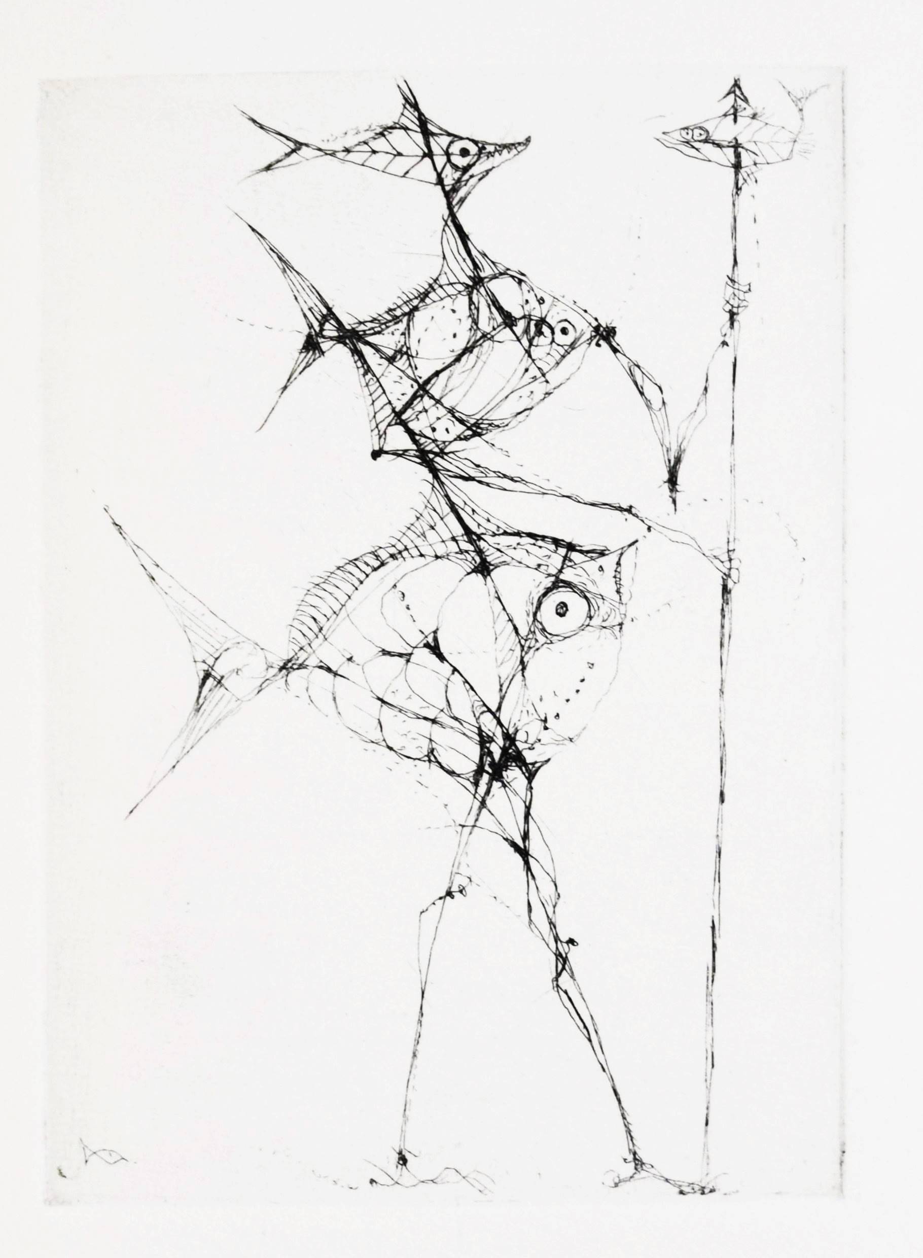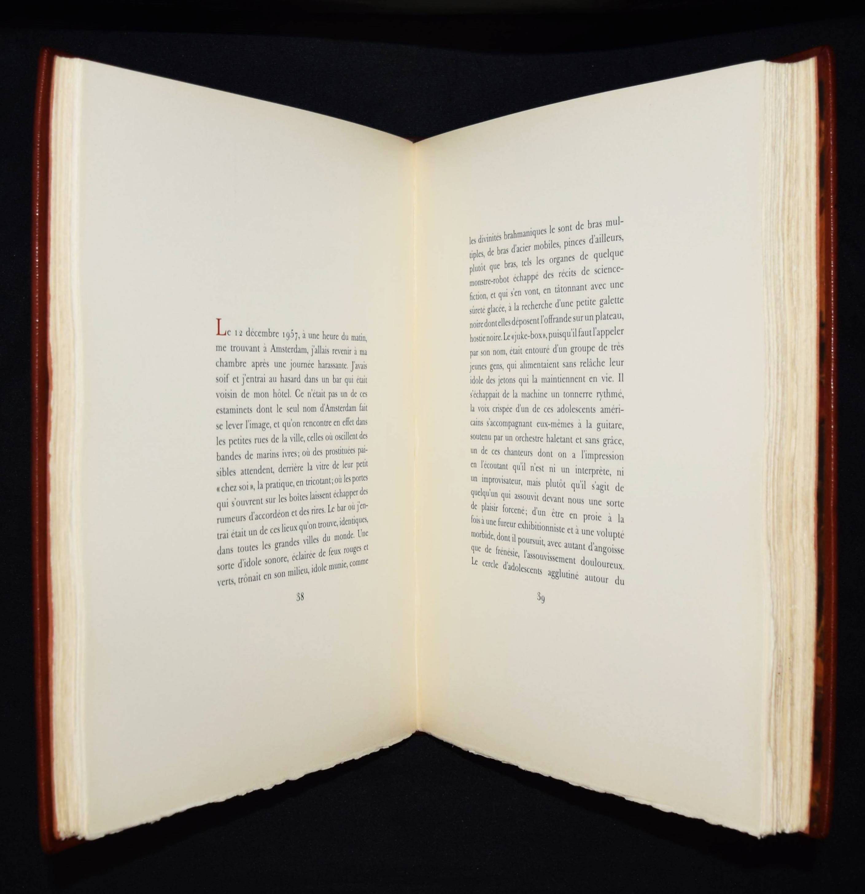 Roy, Claude. L’homme déguisé en homme. (Conte fantastique). Illustré de seize eaux-fortes originales de Hans Fischer. Lausanne, André & Pierre Gonin (1959). Folio (33 x 27 cm.). 148 S., [4] Bl. mit 16 Orig.-Kaltnadelradierungen von H. Fischer. Kalbslederband d. Zt. mit goldgepr. Rückentitel u. Linienverg. sowie Kopfgoldschnitt (Orig.-Umschlag beigebunden). Tiessen I, 48. – Eines von 200 num. Exemplaren auf ’Vélin d’Arches pur chiffon’ (GA 250). Im Impressum von P. Gonin signiert. – Druck der Radierungen von Reynold Disteli, Genf. – Die schönen Radierungen mit Karnevalsszenen aus Basel und Venedig, schuf der Schweizer Maler, Graphiker und Buchillustrator Hans Fischer, auch Fis genannt (1909-1958), erst kurz vor seinem Tod. Mit Nachworten von Bianca Fischer und C. Roy. – Schönes breitrandiges Exemplar in einem dekorativen Handeinband.