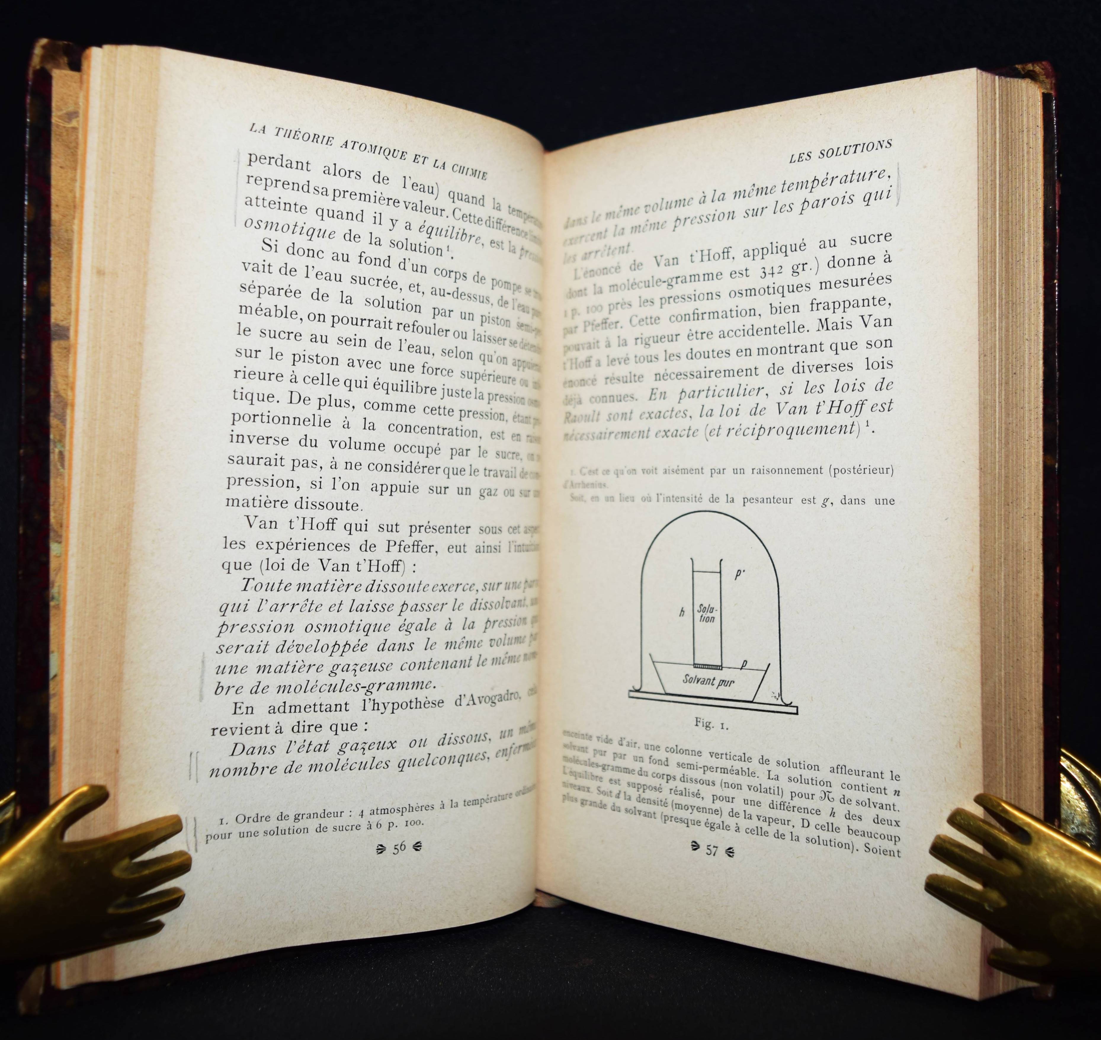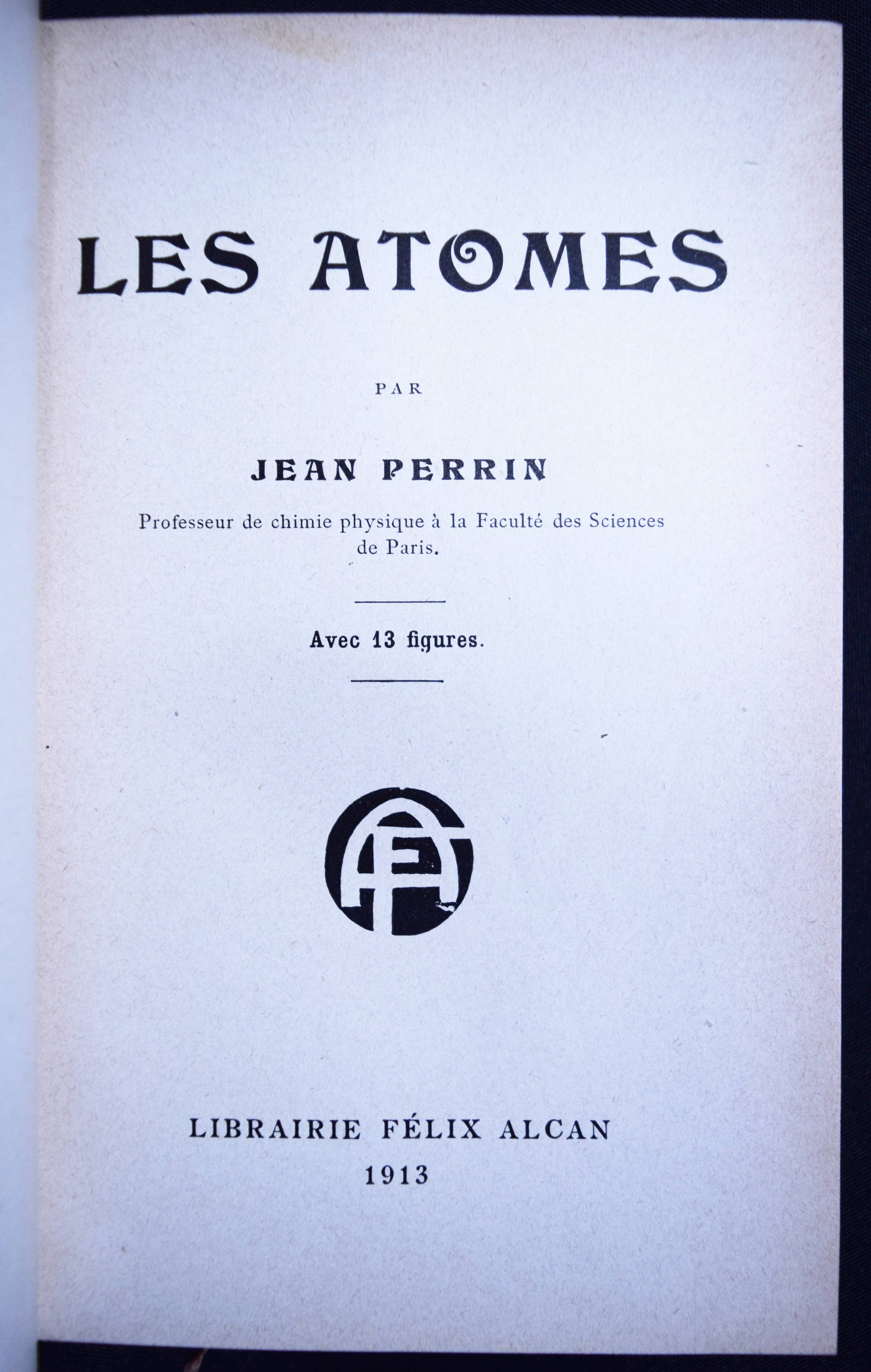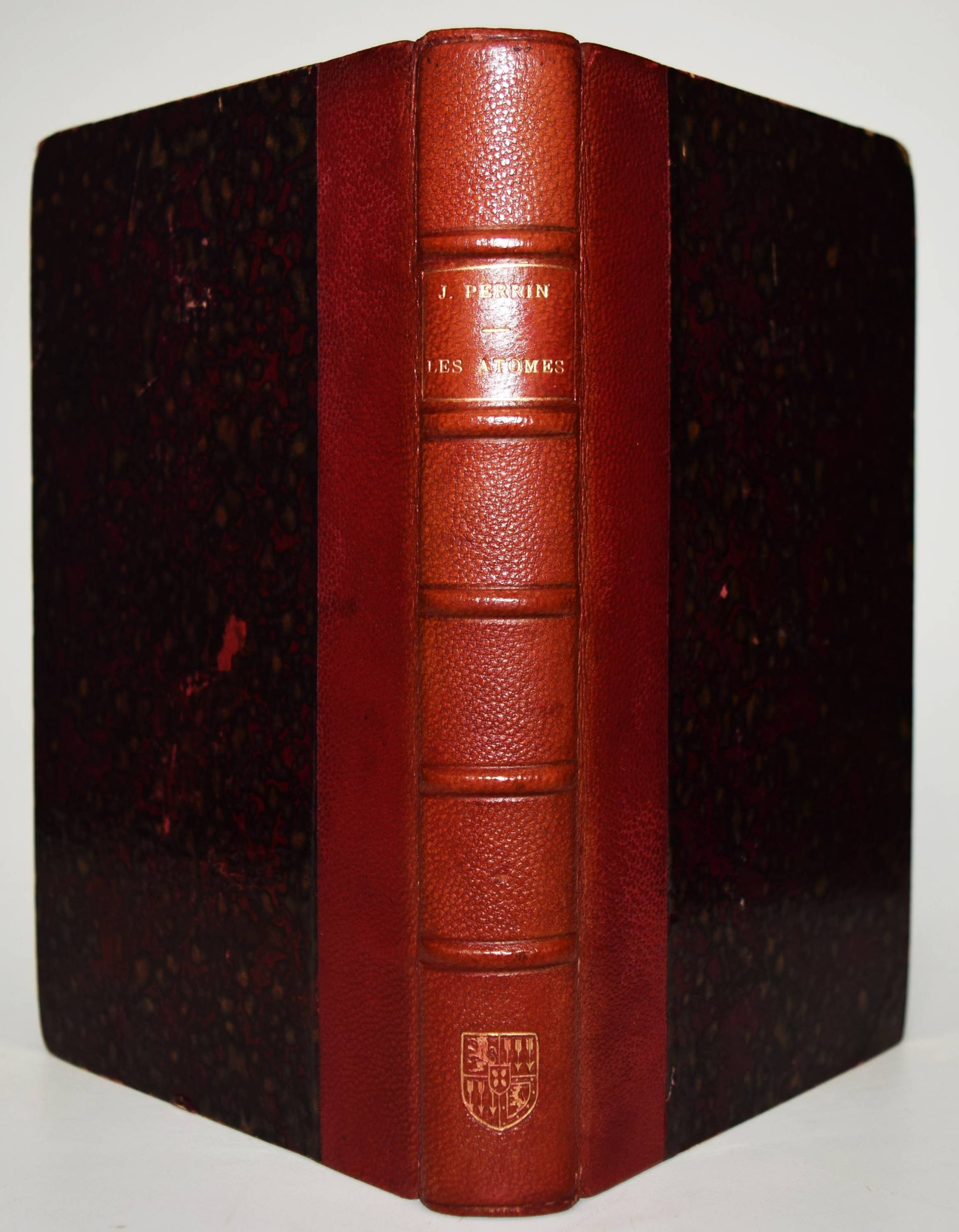 Perrin, Jean (Baptiste). Les atomes. Paris, Félix Alcan 1913. 8°. XVI, 295, (1) S. mit 13 Figuren. Weinroter Hldr. der Zeit mit goldgepr. Rückentitel (typogr. Orig.-Umschlag beigebunden). (Nouvelle Collection Scientifique). DSB X, 525. Nye, Molecular Reality S. 157 ff. – Erste Ausgabe, selten. – „Perrin most fondamental conclusion that he had finally uncovered irrefutable proof for the real existence of atoms – contrary to the assertions and expectations of Ostwald, Mach and others – was soon universally accepted and popularized in his book ‚Les atomes‘ (1913). He received the Nobel Prize in 1926“ (DSB). – „The publication of this book loomed as a MILESTONE in Perrin’s own career, as well as in the history of the physical sciences. It marked the alliance of a plethora of superficially unrelated phenomena, as well as the incorporation of the common denominator among them into the normal working assumptions of physics and chemistry. First published in 1913, the book was in its fourth edition in 1914 already and was translated into English, German, Polish, Russian, Serbian and Japanese. The response to the publication was an almost unanimous crescendo of applause“ (W. Alicke, Catalogue 269, 475). – Sehr gutes dekorativ gebundenes Exemplar.