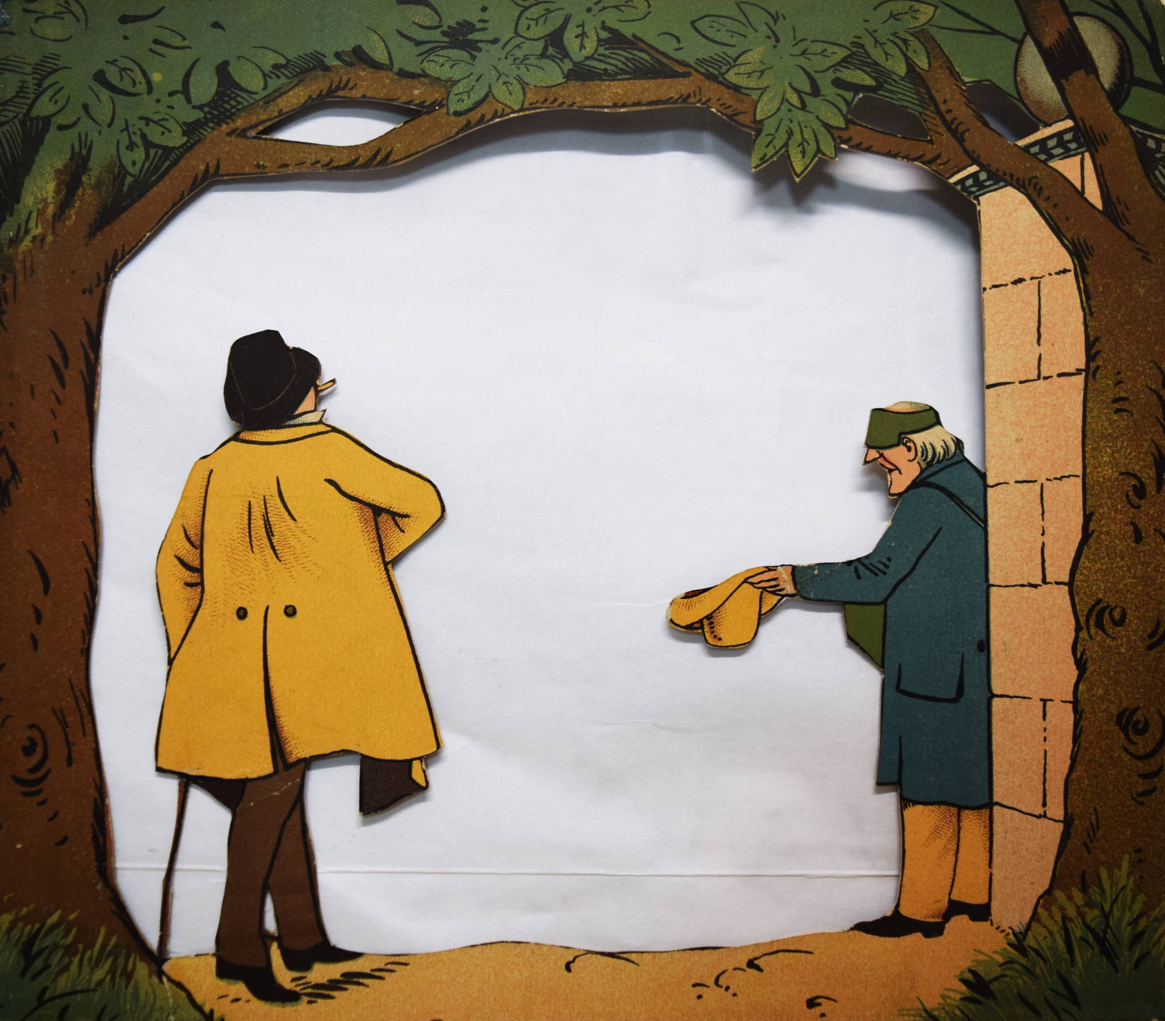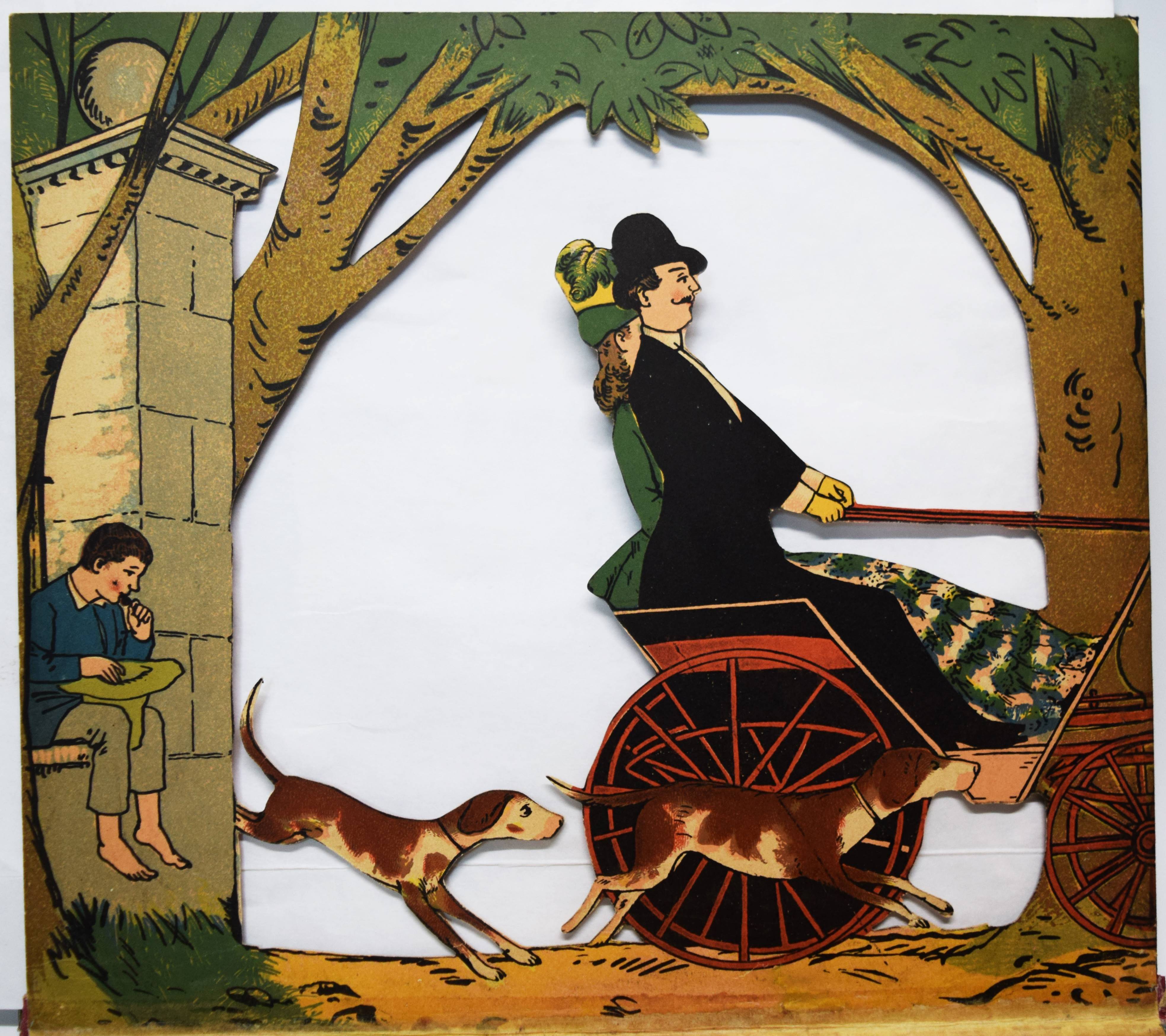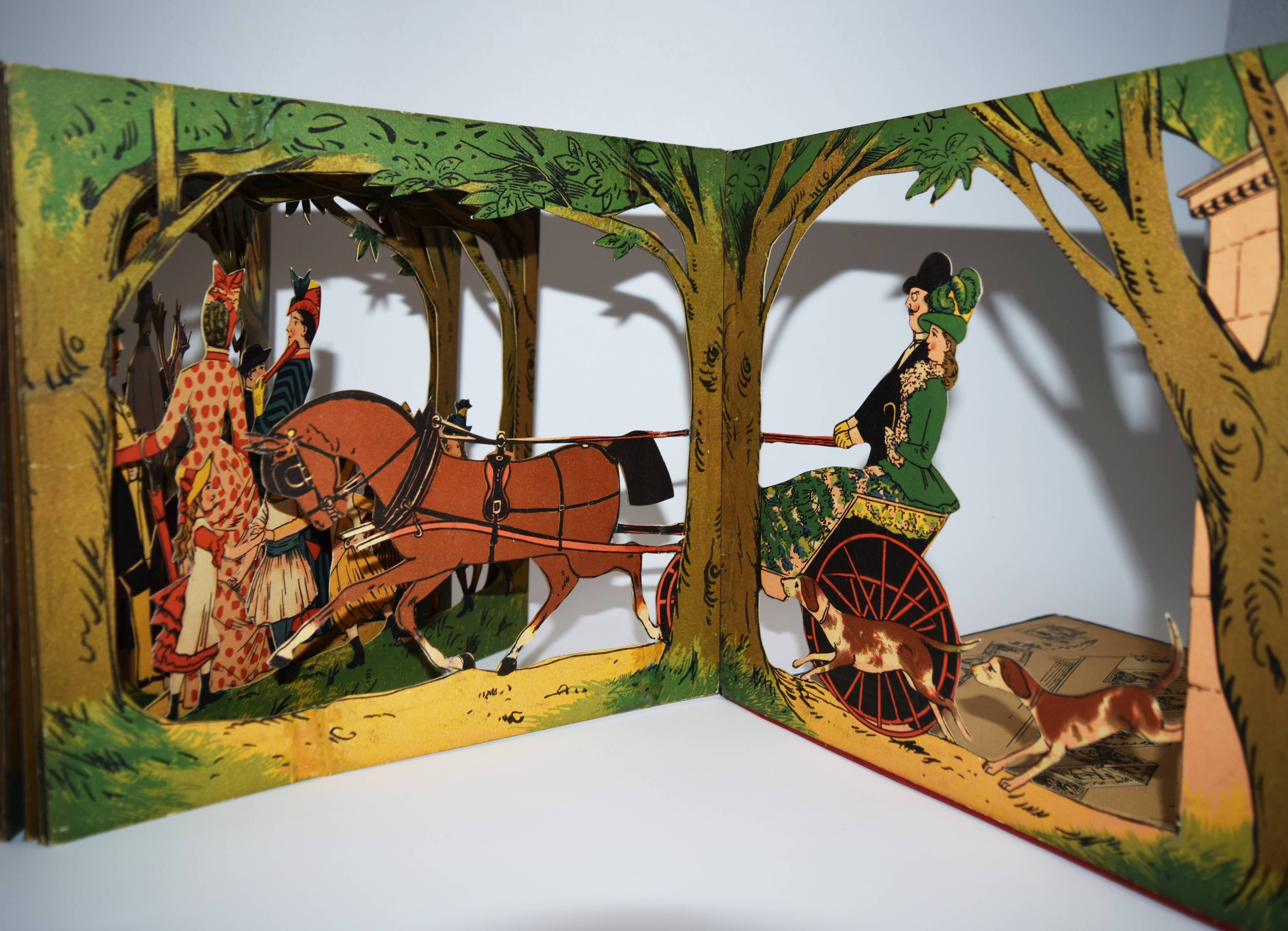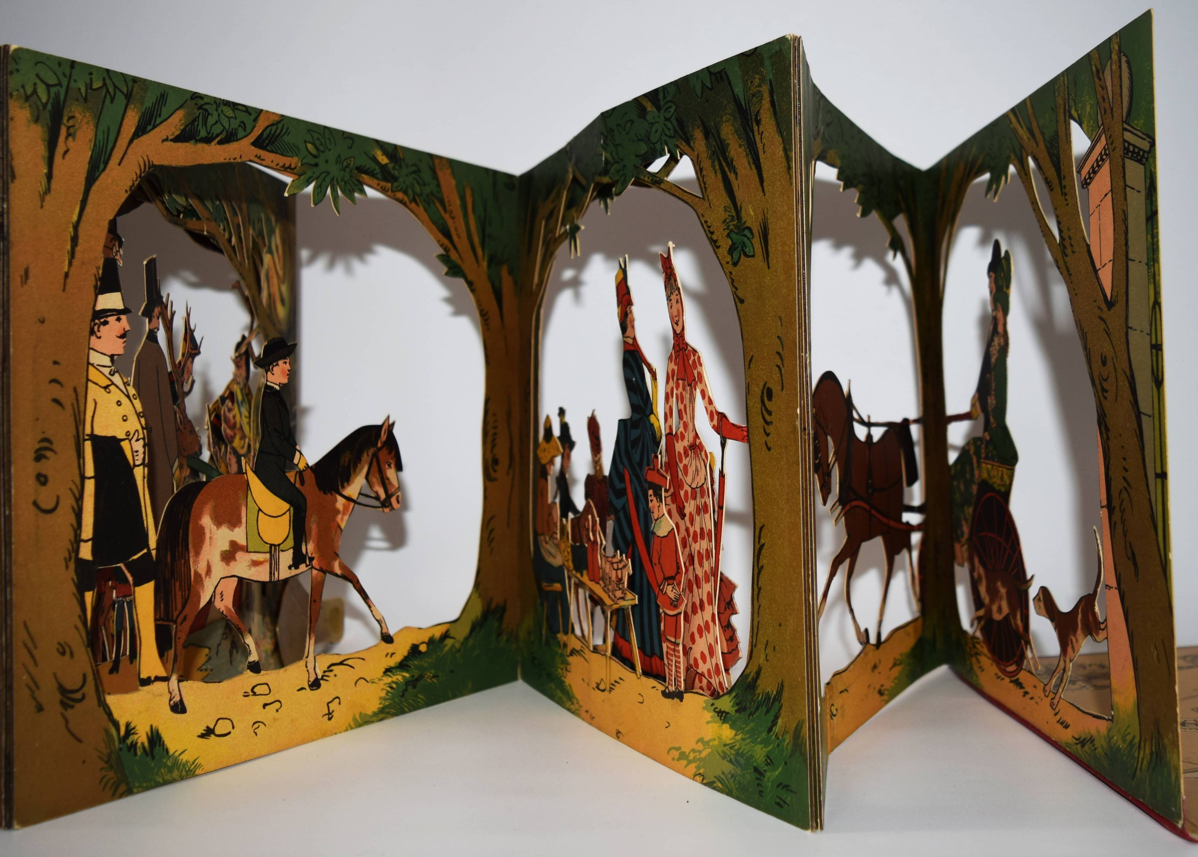 Meggendorfer, Lothar. Im Stadtpark. Ein Bilderbuch zum Aufstellen mit ausgeschnittenen Figuren. München, Braun & Schneider o. J. (1887). Gr.-4° (31 x 27,5 cm.). Leporello, [14] farblithogr. Tafeln mit ausgestanzten Figuren und Versen im unteren Rand. Farbig illustr. Orig.-Kartondeckel. Katzenheim S. 178 f. Krahé S. 79 ff. und 188. LKJ II, 460. Ries 711, 41 und S. 53. Wegehaupt IV, 1416. Vgl. Laub 187 (Reprint der englischen Ausgabe). – Erste Ausgabe des seltensten Spiel-Bilderbuchs von L. Meggendorfer. – „Wie dieses Buch aufzustellen ist / Wollt Ihr dieses Buch betrachten / Müsst Ihr sorglich darauf achten, / Daß es so mag vor Euch steh ’n. / Dann könnt sachte nach belieben / Ihr’s verstellen und verschieben – / Neues werdet stets Ihr seh’n!“ (Einbanddeckel vorne verso). – „Das Leporello „Im Stadtpark“ ist wieder einer jener genialen Einfälle Meggendorfers, mit denen er das Objekt Buch zu einem Spiel- und Anschauungsobjekt der vergnüglichsten Sorte umgestaltete. Die beidseitig bedruckten Elemente des Leporelloses … sind ausgestanzt wie bei Theaterkulissen und lassen sich in beliebiger Form stellen: Als Rechteck, als Mäander, als Spirale usw., sodass sich immer neue Situationen und Durchblicke ergeben, die das bürgerliche Leben – in einem Stadtpark in unendlichen Variationen vorstellen. Jeweils drei solcher Stellmöglichkeiten sind auf die beiden Innenseiten der Deckel eingedruckt, aber es gibt natürlich viele mehr. Zwar hat „Im Stadtpark“ in geschlossenem Zustand noch den Charakter eines Buches, aber ihm fehlt der Rücken, die Deckel dienen allein noch der „Verpackung“ eines Spielzeugs“ (Peter Laub). – Deckel geringfügig berieben, wenige exponierte Teile unauffällig restauriert, sehr gutes Exemplar.