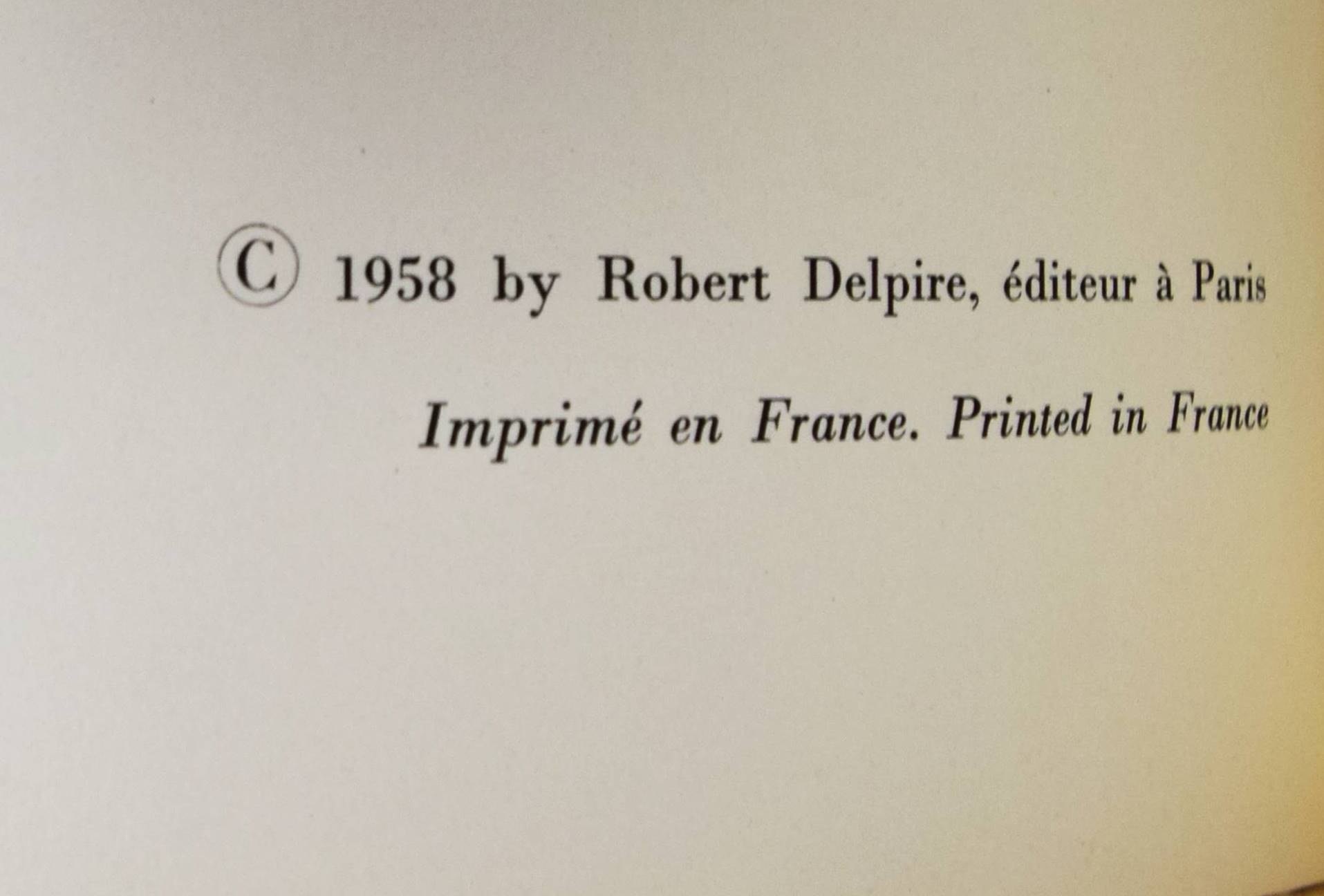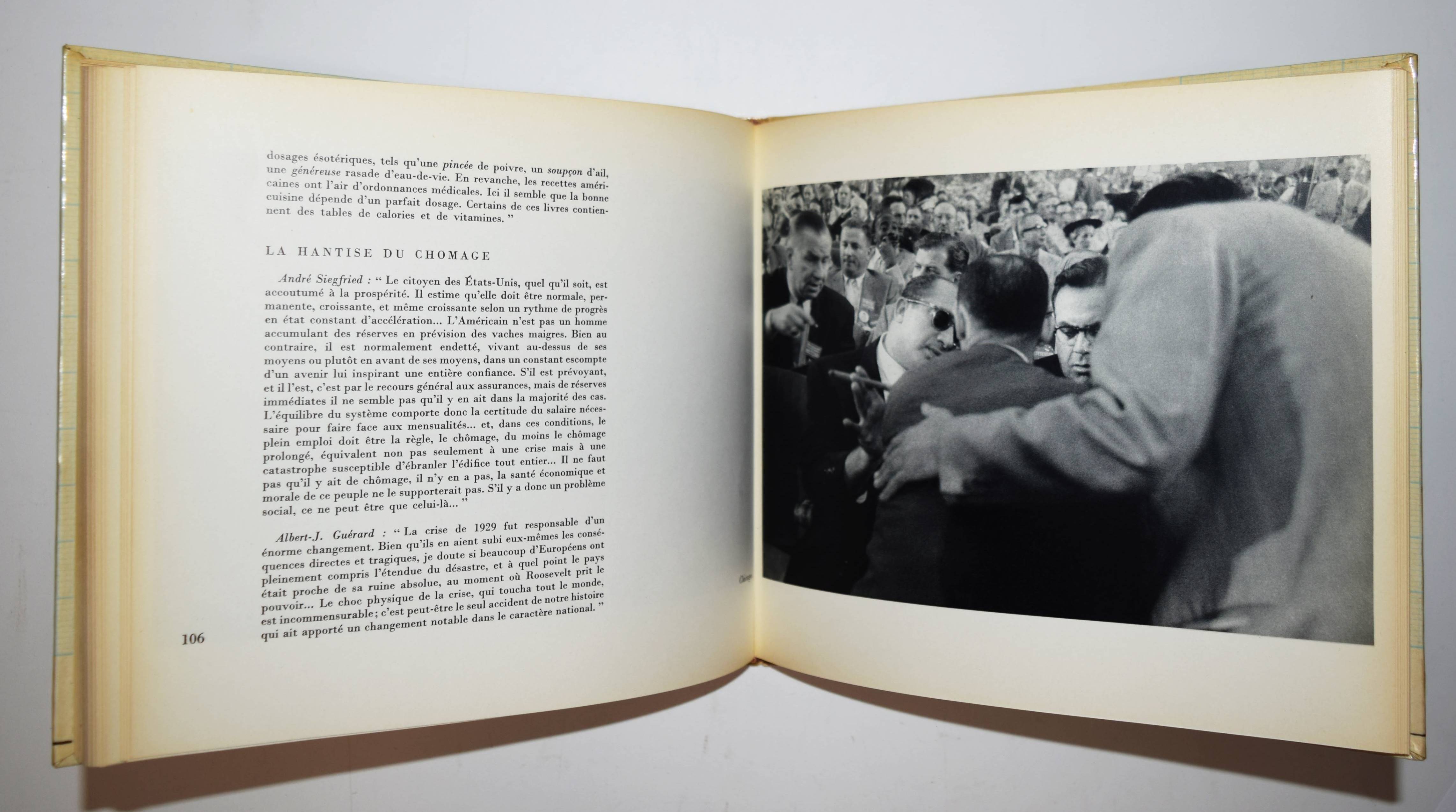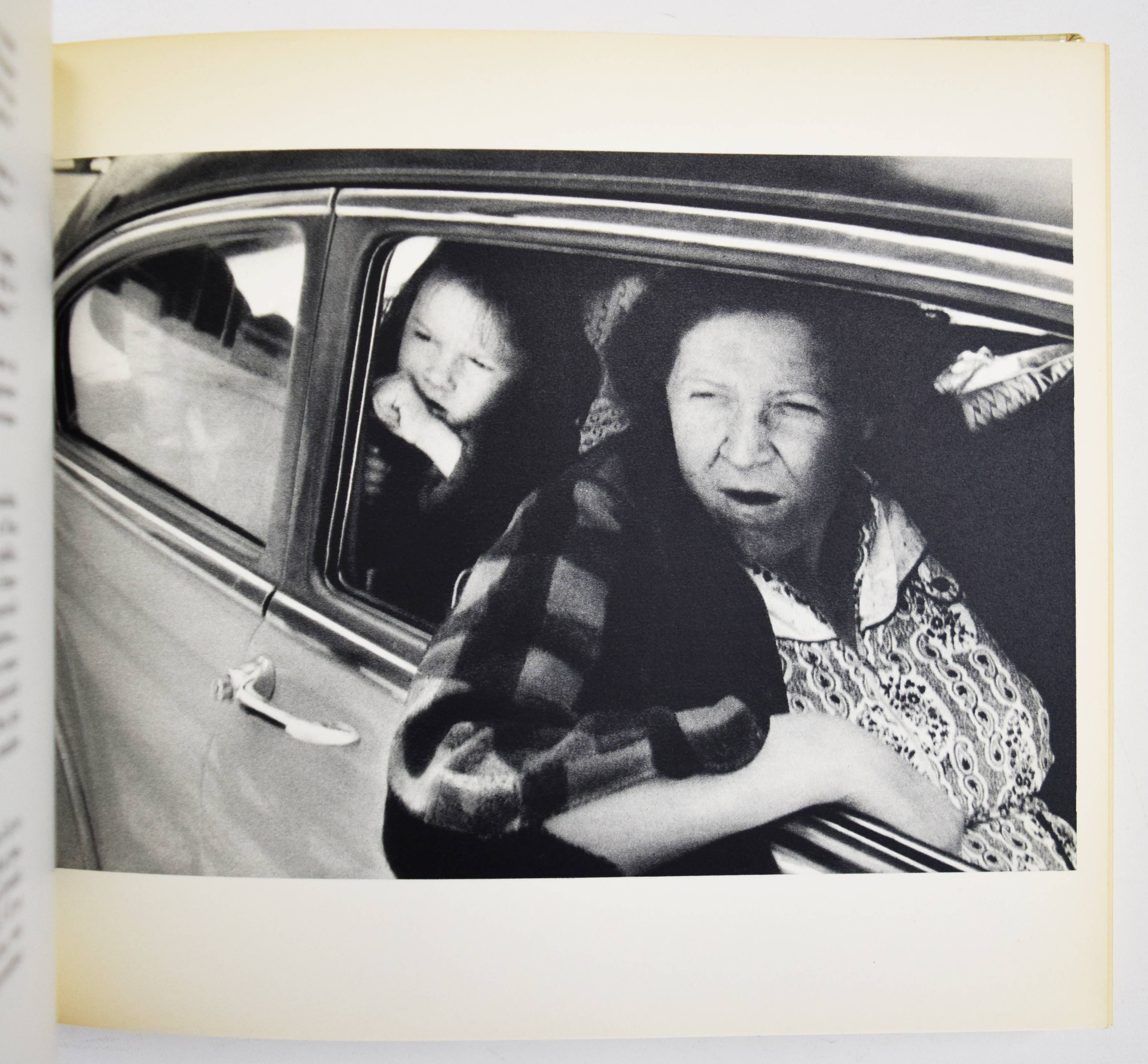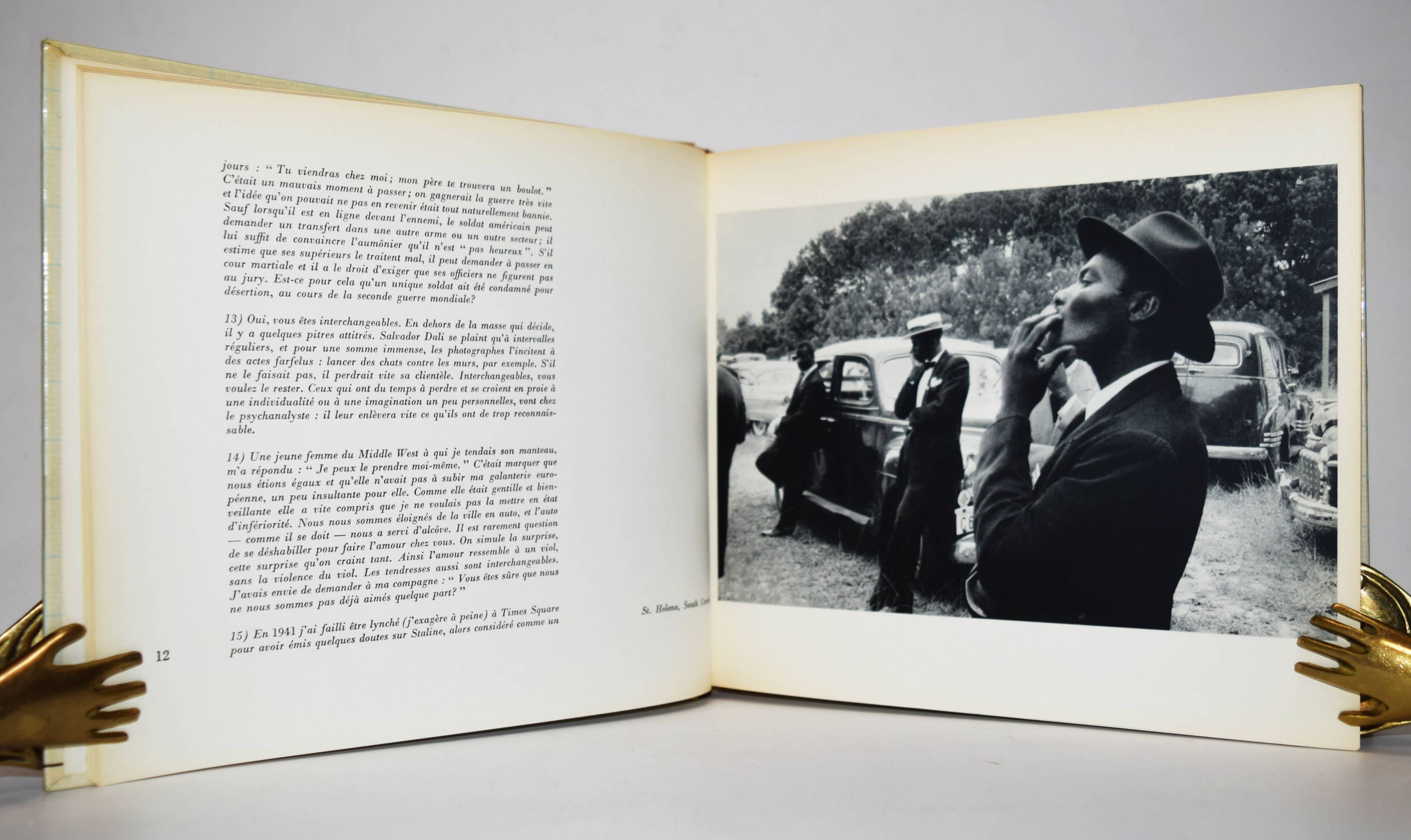 Frank, Robert. Les Américains. Photographies. (Textes réunis et présentés par Alain Bosquet). Paris, Robert Delpire (1958). Quer-8° (19 x 21,5 cm.). 172 S., [1] Bl. mit 83 Duotone-Tafeln. Illustr. Orig.-Pappband (von Saul Steinberg). (Encyclopédie Essentielle 5, Série Histoire No. 3). Auer 375. Koetzle, Fotografen A-Z 128 f. Parr/Badger I, 247. Roth, The Book of 101 Books 150 f. Roth, The Open Book 176 f. Schweizer Fotobücher 218 ff. – Erste Ausgabe eines der wichtigsten Fotobücher des 20. Jahrhunderts. Mit Texten von Simone de Beauvoir, John Dos Passos, William Faulkner, Henry Miller, John Steinbeck, Richard Wright u.a. – „Robert Frank’s masterpiece has become so much the photobook of legend in its first American edition that it is often forgotten that Delpire’s original Paris edition was a different book. Its accompanying texts, gathered by Alain Bosquet, placed it more in a social-documentary context – with a politically antagonistic, even anti-American point of view. … What has made this arguably the most renowned photobook of all? Firstly, and perhaps most importantly, the majority of the pictures are instantly memorable, ‚dry, lean, and transparent,‘ as John Szarkowski has said of them, yet also weighty and profound, even heartstopping. The sad-eyed lady of the lift, the lean sidewalk cowboy, the shrouded Miami car, the cynical Hoboken city fathers – images like these, and many others, could almost carry the book’s heartfelt message individually, even if not part of such an adroitly sequenced totality. The Americans is a great book made in the main with great pictures, and that surely explains its eternal resonance“ (M. Parr). – „Das Buch erschien auf dem Höhepunkt des kalten Kriegs und wurde anfangs als antiamerikanisch geschmäht. Es sei, so schrieb ein Kritiker, das Werk eines „Lügners“ … Doch in den 1960er Jahren, als viele Themen, die Frank in seinem Buch angesprochen hatte, ins kollektive Bewustsein rückten – besonders der im Land vorherrschende Rassismus, die Entfremdung der Jugend, die wachsende Unzufriedenheit mit der politischen Führung und die Skepsis gegenüber der immer weiter wachsenden Konsumkultur, wurde das Buch nun als weitsichtig und revolutionär angesehen. Besonders bei Fotografen und Künstlern gewann es bald viele Anhänger, die es kultartig verehrten. Als es 1968 und 1969 neu erschien, wurde es allgemein als eines der wichtigsten Fotobücher des Jahrhunderts begrüsst“ (S. Greenough in Schweizer Fotobücher). – Rücken altersbedingt etwas gebräunt, sehr gutes Exemplar.