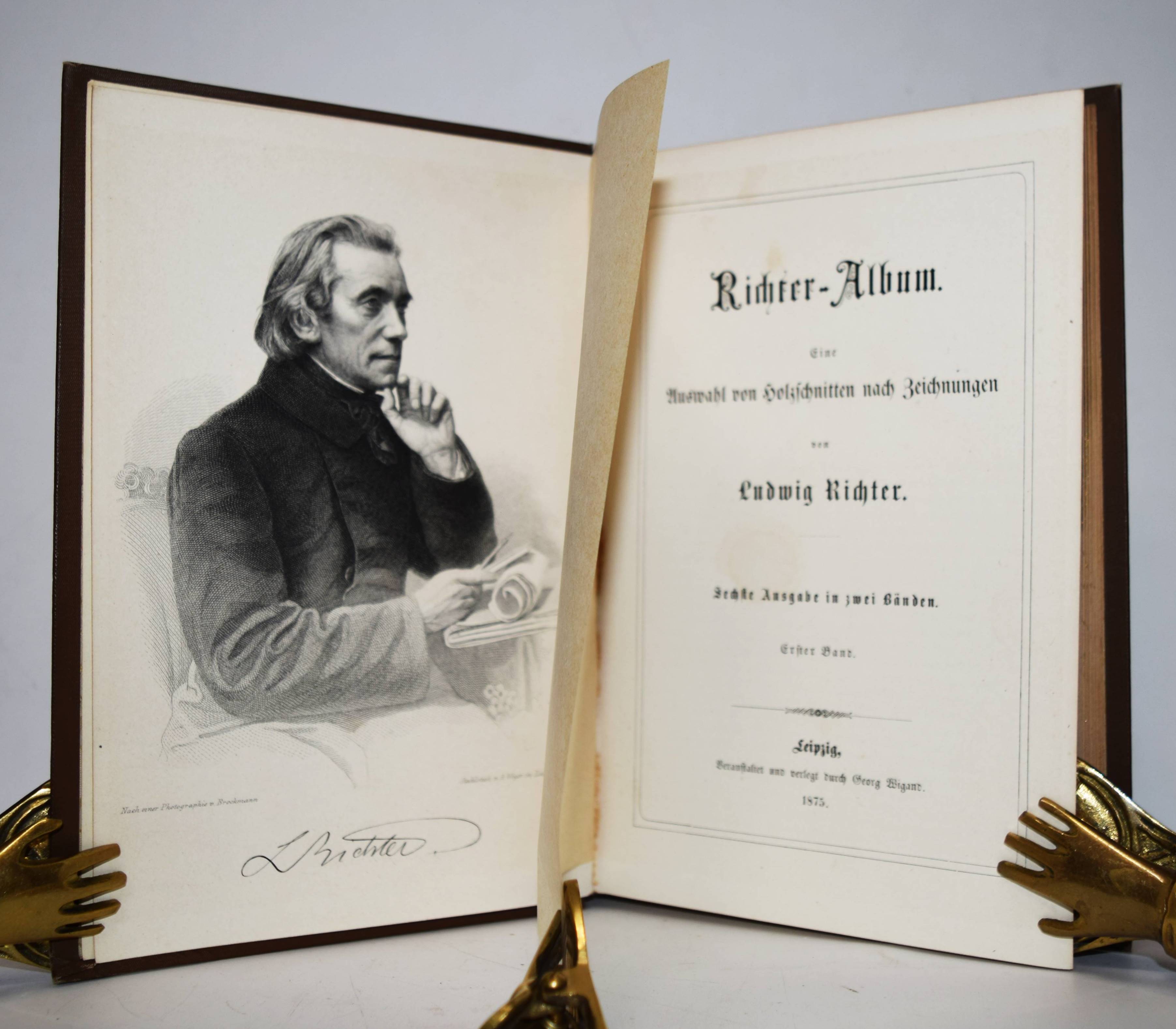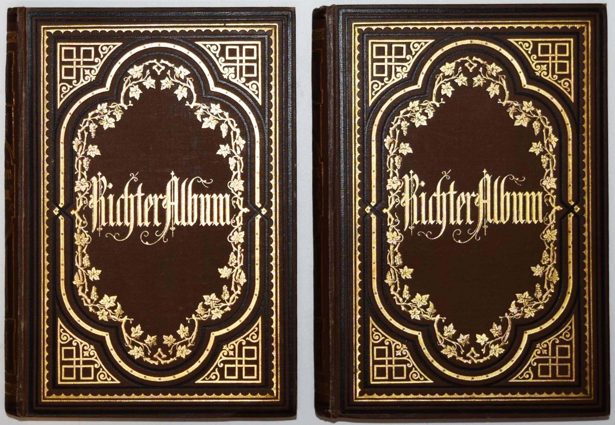 Richter, Ludwig. Richter-Album. Eine Auswahl von Holzschnitten nach Zeichnungen. 6. Ausgabe. 2 Bände. Leipzig, Georg Wigand 1875. Gr.-8°. 30 S., [1] Bl. und 136 Holzschnitt-Tafeln; [2] Bl. und 170 Holzschnitt-Tafeln. Orig.-Leinenbände mit goldgepr. Rücken- und Deckeltiteln, reicher Gold- und Schwarzprägung und Goldschnitt. Hoff-Budde S. 285. – Sehr gutes nahezu fleckenfreies Exemplar in den dekorativen Verlagseinbänden.