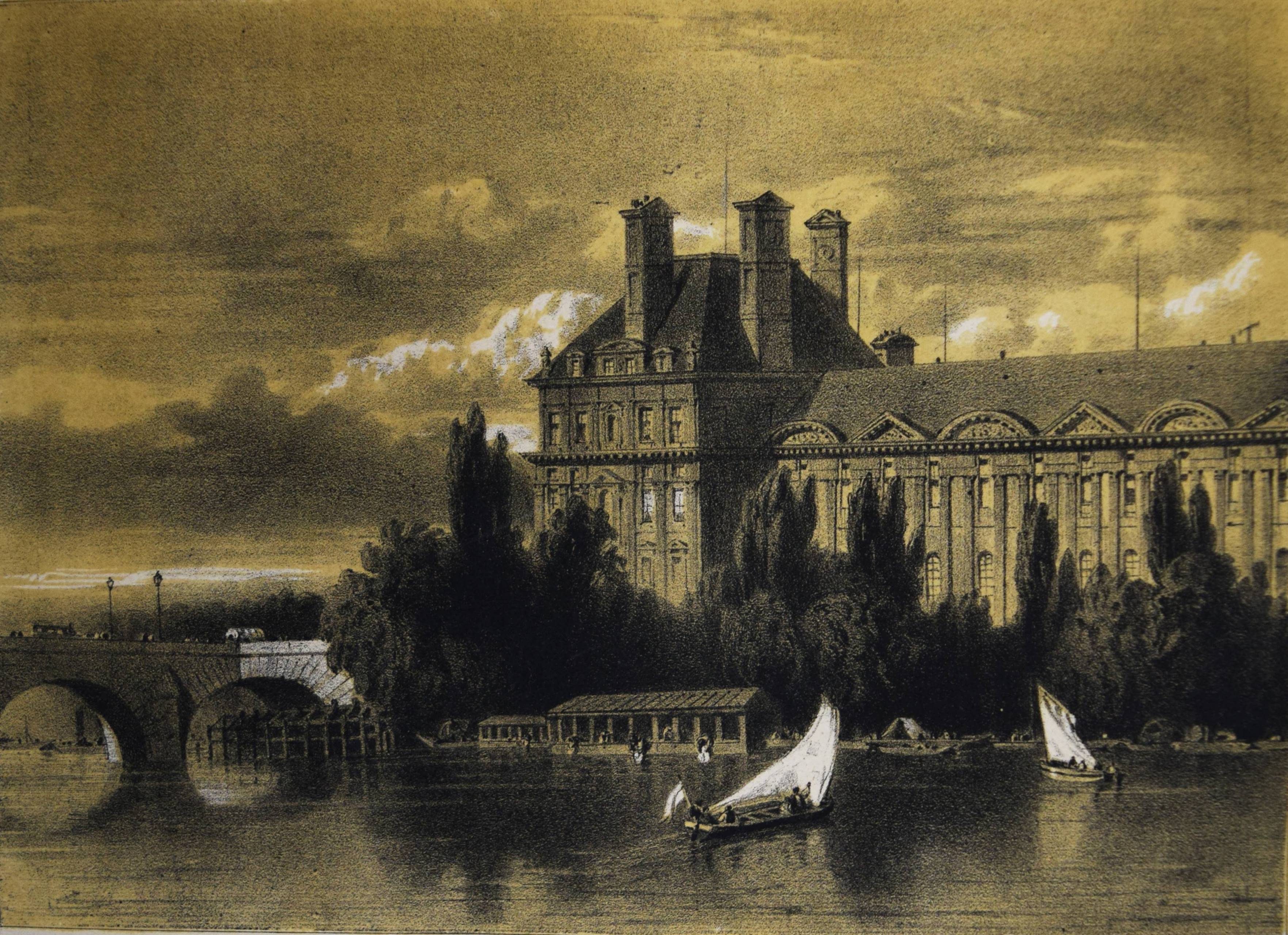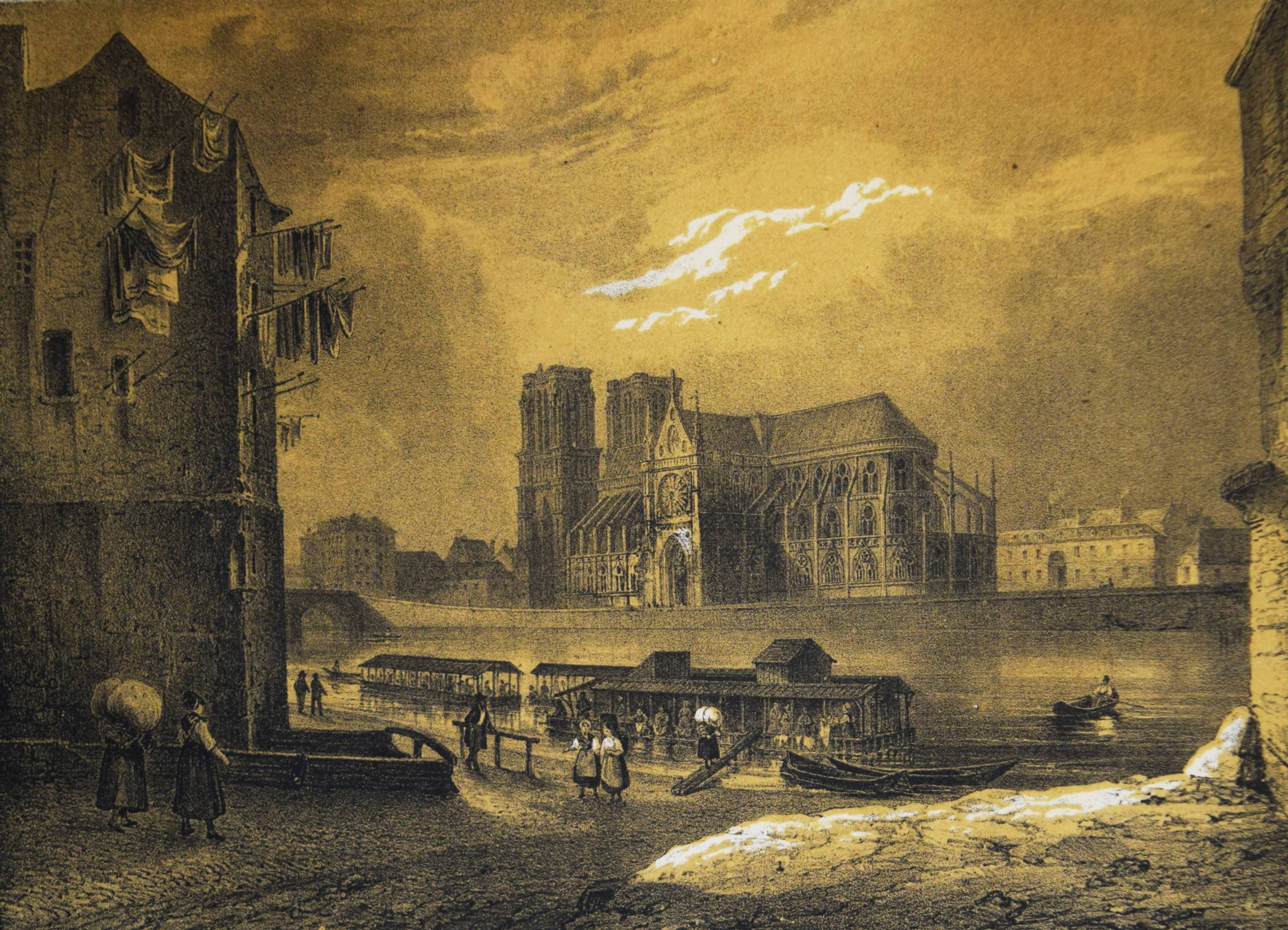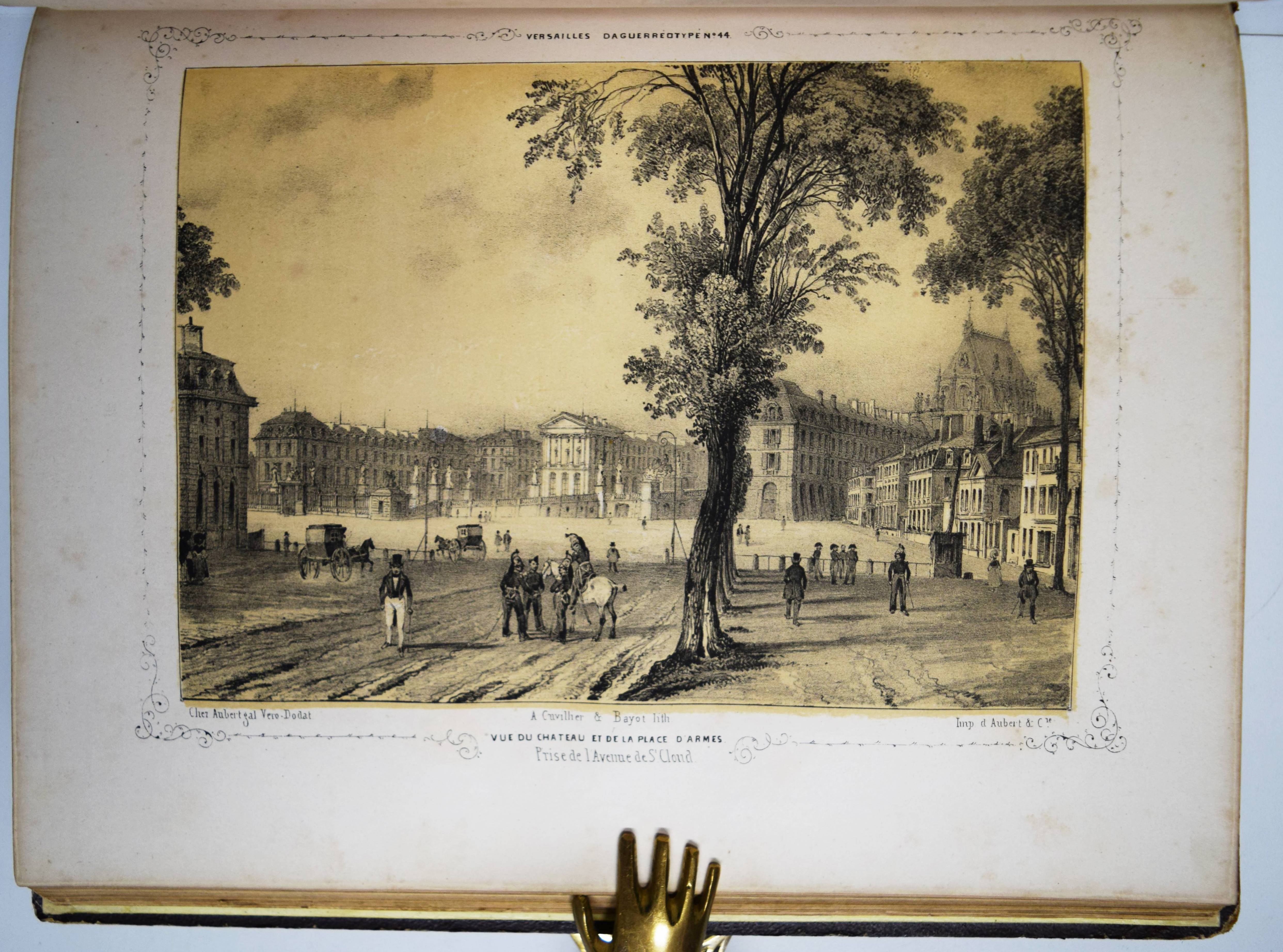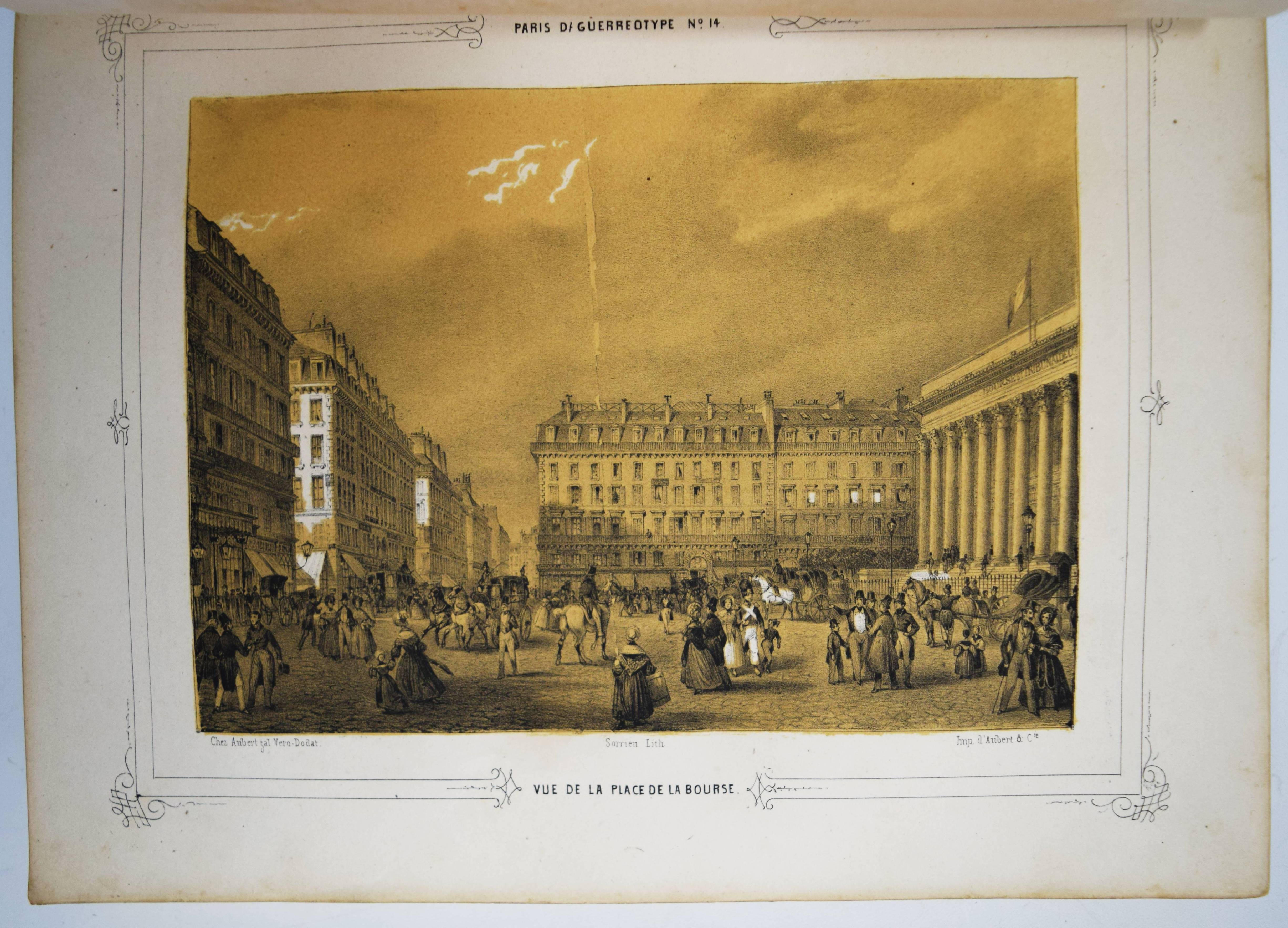 Daguerréotypie – Philipon, Charles (Èditeur). Paris et ses environs. Reproduits par le daguerréotype. Sous la Direction de M. Ch. Philipon. Artistes: Arnout, Bayot, Bichebois, Bour, Boys, Cauchie, Cuvillier, Dumouza, Jaime, Nouveau, Provost, Sorrieu, Tirepenne et Villebert. Paris, Aubert et Cie. 1840. 4° (28 x 21 cm.). [238] S. mit 60 lithogr. Tafeln mit Tonplatte nach Daguerreotypien. Orig.-Leinenband mit goldgepr. Rückentitel, dekorativer Romantikervergoldung und Goldschnitt. Rossens/Salu 5126. – Einzige Ausgabe des ersten Ansichtenwerks bei dem Daguerreotypien als Vorlage für die Ansichten dienten. – „Paris gilt als Wiege der Fotografie, als glanzvoller Ausgangspunkt des neuen Mediums. Hier wurde das Lichtbild in Gestalt der Daguerreotypie Mitte August 1839 bekannt gemacht und patentfrei: einer staunenden Weltöffentlichkeit übergeben. Ein Datum, das nicht weniger als den Beginn des fotografischen Zeitalters markiert. Nicht zufällig spricht der Fotograf und Historiker Jean Claude Gautrand von einer „Liebesgeschichte zwischen Paris und der Fotografie“, was sich auf die Vielzahl von Chemikern, Optikern, Künstlern beziehen dürfte, die sich sogleich forschend oder praktizierend des neuen Mediums annahmen, wie auf die Tatsache, dass Paris selbst zügig und privilegiert zum Bildgegenstand avancierte“ (H.-M. Koetzle, Eyes on Paris S. 9). – „Wir haben die großen Denkmäler von Paris auf diese Weise reproduziert gesehen. … Von Paris, das nun wirklich die Ewige Stadt werden wird. Wir haben den Louvre gesehen, das Institut, die Tuilerien, den Pont Neuf, Notre-Dame; wir haben das Pflaster des Grève-Platzes, die Wasser der Seine, den Himmel über Sainte Geneviève gesehen, und jedes dieser Meisterwerke zeichnete die gleiche Perfektion aus“ (Jules Janin 1839 zit. nach W. Kemp, Theorie der Fotografie, München 1980, S. 48). – Der französische Karikaturist und Journalist C. Philipon (1800-1862) war unter anderem auch Herausgeber der satirischen Zeitschriften La Caricature und Le Charivari. Er wurde 1854 von Nadar portraitiert. – Rücken etwas berieben, im Blattrand teils etwas angestaubt und braunfleckig, sehr gutes Exemplar im dekorativen Verlagseinband.