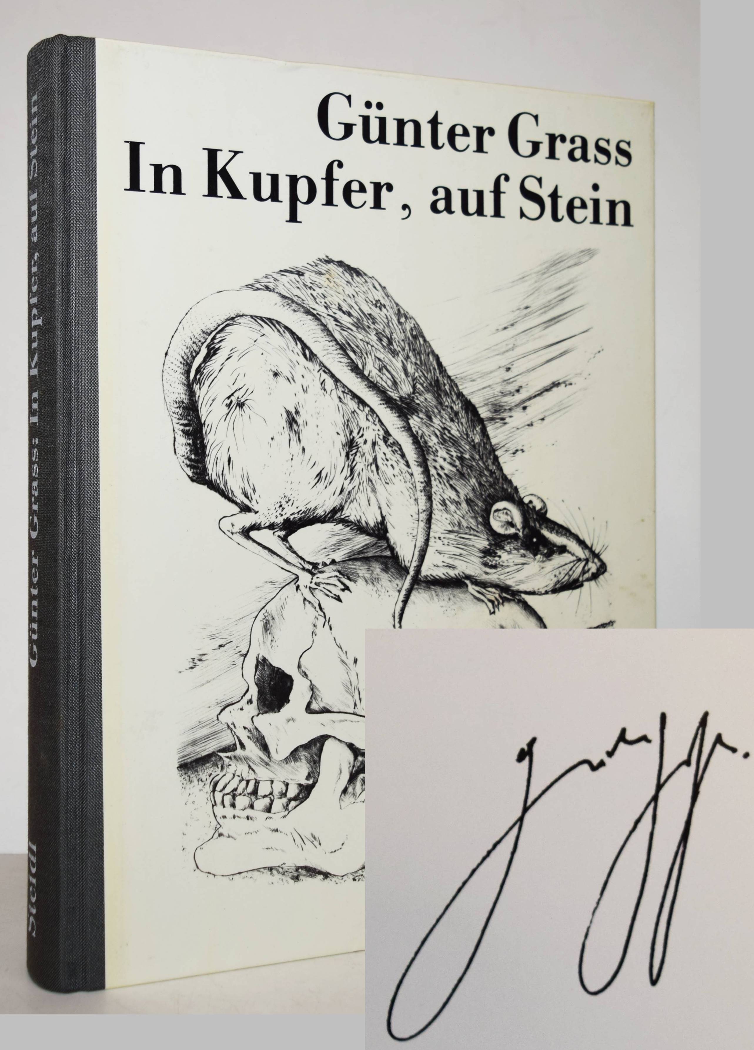 Grass, Günter. In Kupfer, auf Stein. (Das graphische Werk 1972-1984). 1. Aufl. Göttingen, Steidl Verlag (1986). 4°. 268 S., [2] Bl. mit 521 Abbildungen auf Tafeln. Illustr. Orig.-Halbleinenband. Erste Ausgabe; von G. Grass signiert. – Sehr gutes Exemplar.