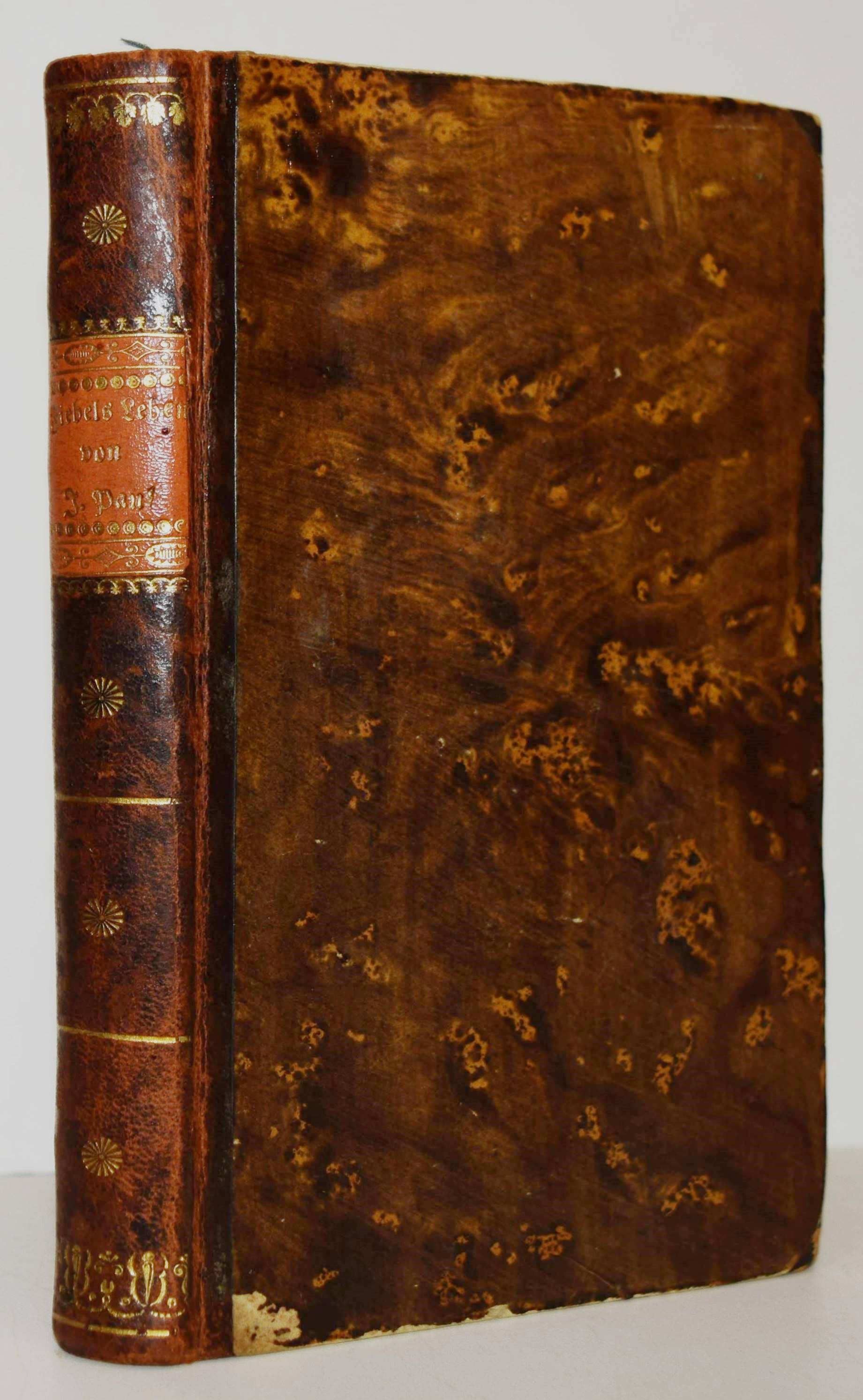 Jean Paul (d. i. Johann Paul Friedrich Richter). Leben Fibels, des Verfassers der Bienrodischen Fibel. Nürnberg, Schrag 1812. Kl.-8° (17 x 10,5 cm.). VIII, 348 S., [1] Bl. Halblederband der Zeit mit goldgepr. Rückenschild und Rückenvergoldung. Berend/Krogoll 27. Slg. Borst 1157. Goed. V, 465, 29. – Erste Ausgabe. – „Mit dem späten ‚Fibel‘… knüpft Jean Paul deutlich wieder an die satirische Jugendidylle ‚Schulmeisterlein Wuz‘ (1793) an“ (KLL IV, 1087). – Im Anhang die berühmte Bienrodische Fibel und das Alphabet mit Zweizeilern. – Einband etwas berieben, Vorsätze in den Ecken braunfleckig, sonst sauberes und dekorativ gebundenes Exemplar.
