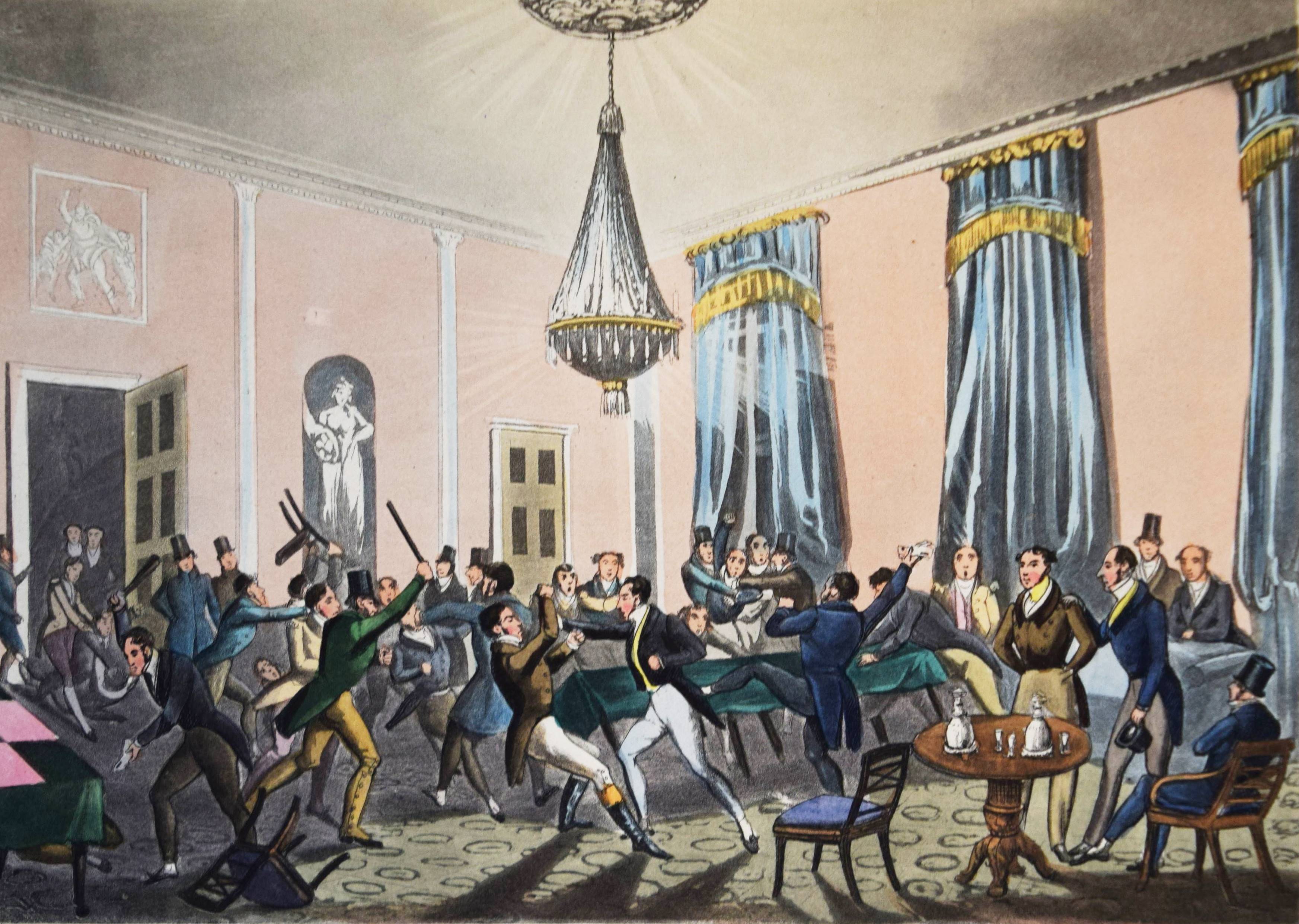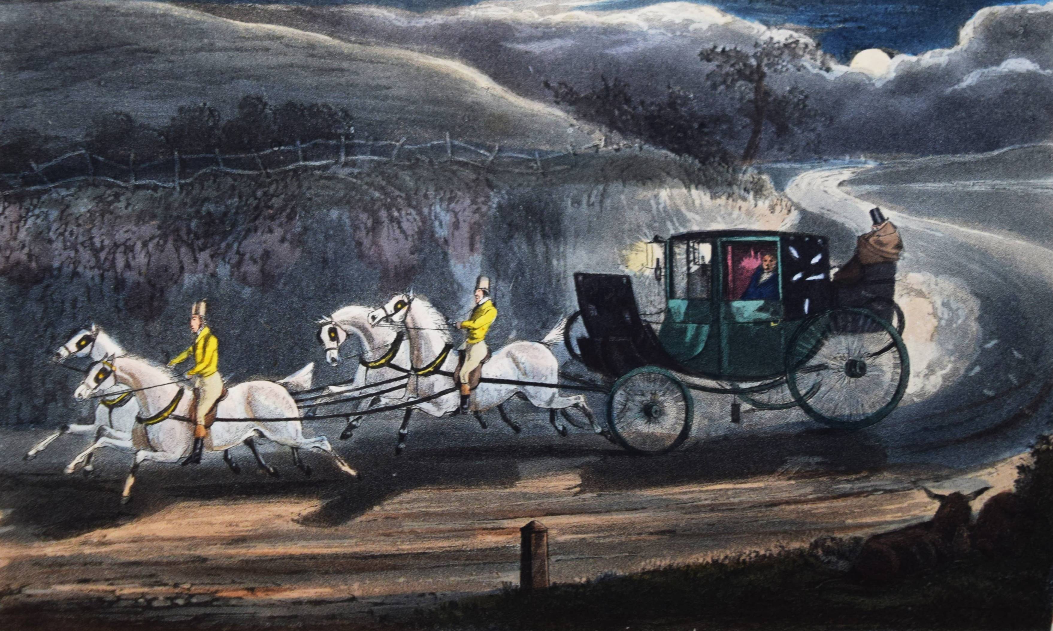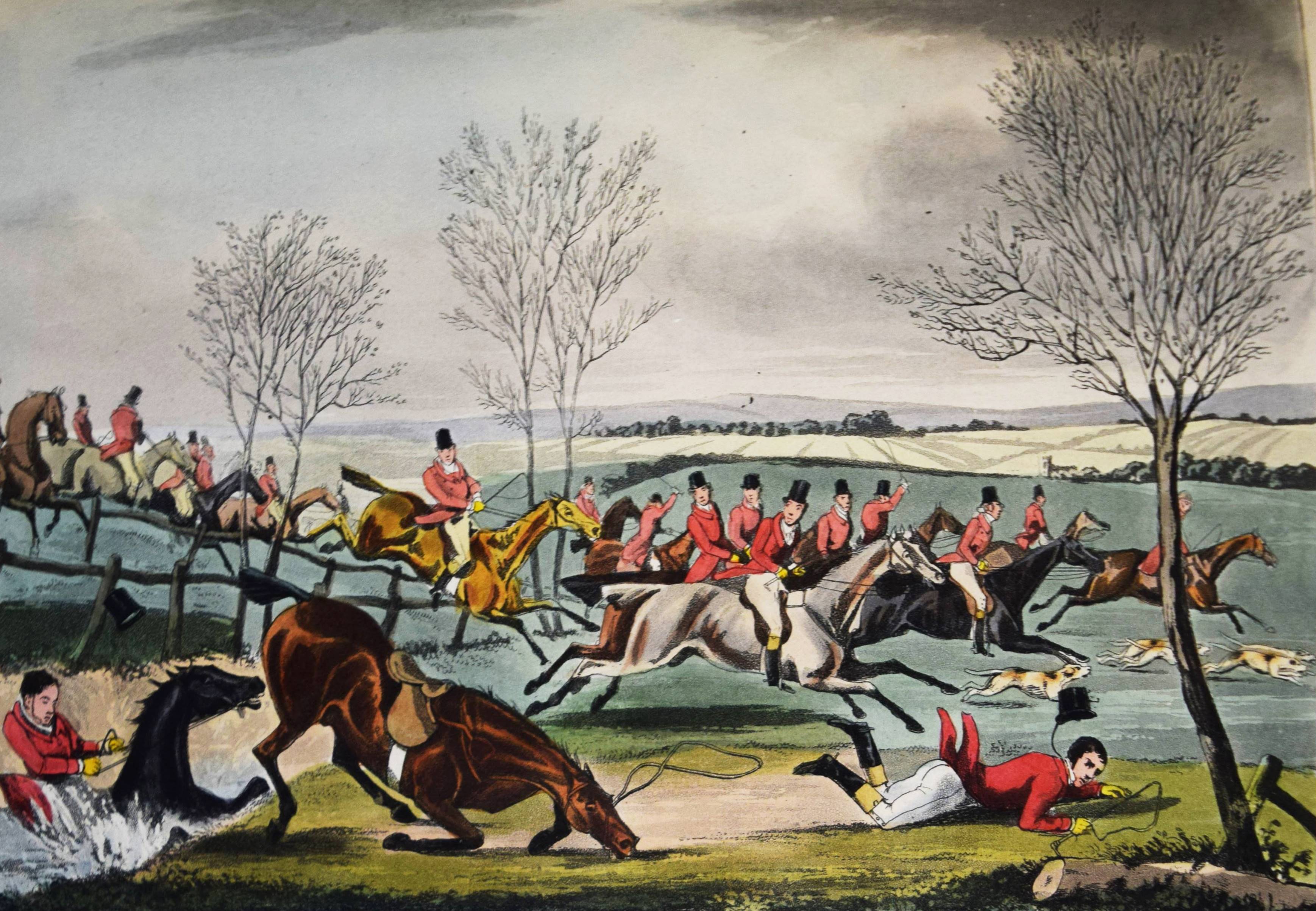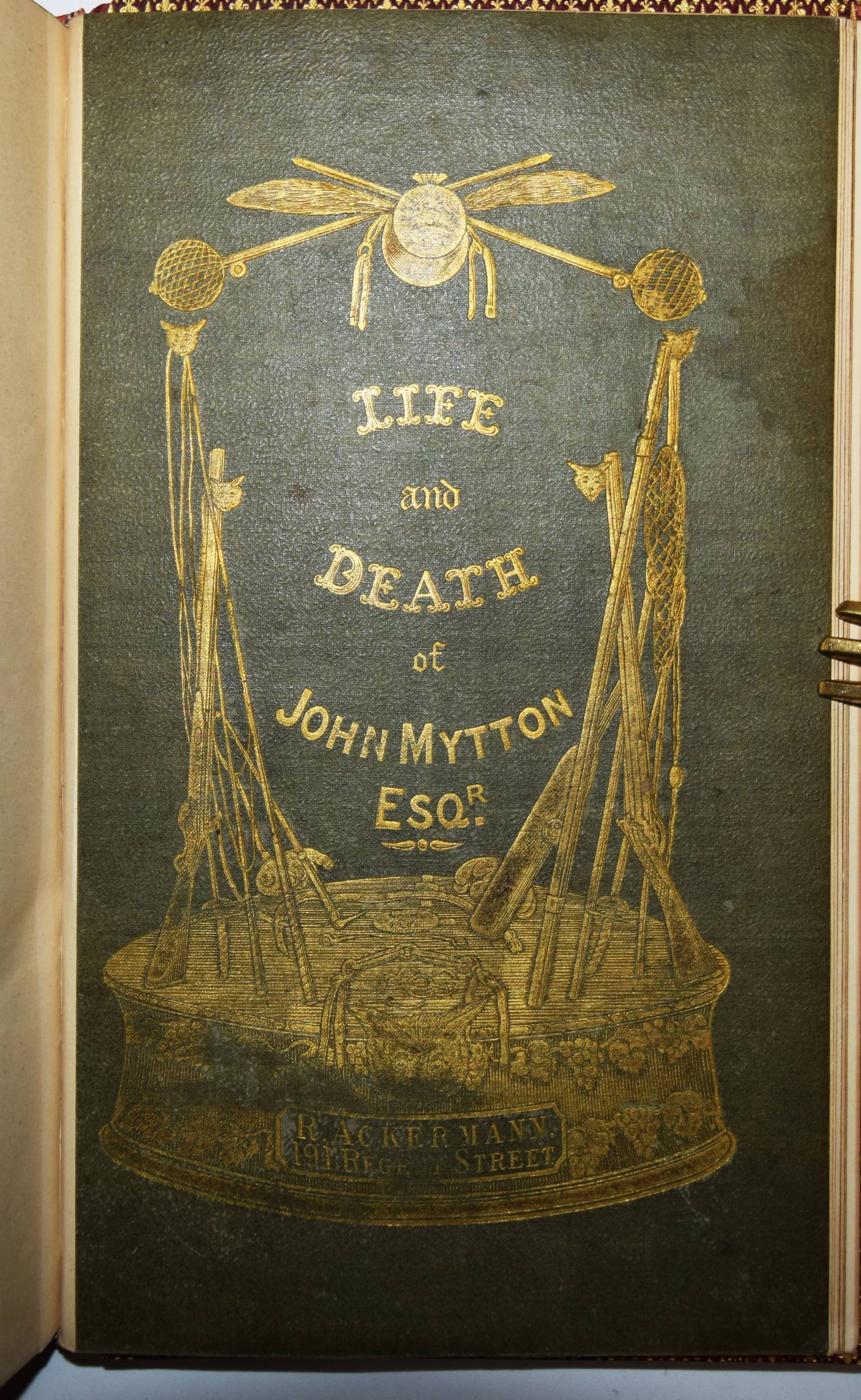 Nimrod (d. i. Charles James Apperley). The life of John Mytton, Esq., of Halston, Shropshire … With notices of his hunting, racing, shooting, driving, and extravagant exploits. Second edition, reprinted with considerable additions from the New Sporting Magazine. London, Rudolph Ackermann 1837. Gr.-8° (24 x 15,5 cm.). IX, (1), 206 S., [1] Bl. mit 18 handkolorierten Aquatinta-Radierungen nach H(enry) Alken und T(homas) J. Rawlins. Weinroter genarbter Maroquin-Lederband der Zeit mit 5 Zierbünden, goldgepr. Rückentitel, figürlicher Rückenvergoldung, dreifachen Deckel-Filetten, Innenkantenvergoldung und Goldschnitt (Orig.-Leinenbezug mit goldgepr. Deckelillustration beigebunden). Abbey, Life 385. Tooley 68. Schwerdt I, 38 f. – Zweite Auflage des zuerst 1835 erschienenen Werks, gegenüber dieser um 6 Tafeln vermehrt. Die schönen Tafeln in prächtigem leuchtenden Kolorit zeigen überwiegend Jagd- und Reitszenen. – „A most valuable and important book for the sporting life of a period, aptly described by Newton as ‚a biography of a real man that reads like a work of fiction“‘ (R. V. Tooley). – Kapital geringfügig berieben, Exlibris, sehr schönes Exemplar in einem prachtvollen Handeinband.