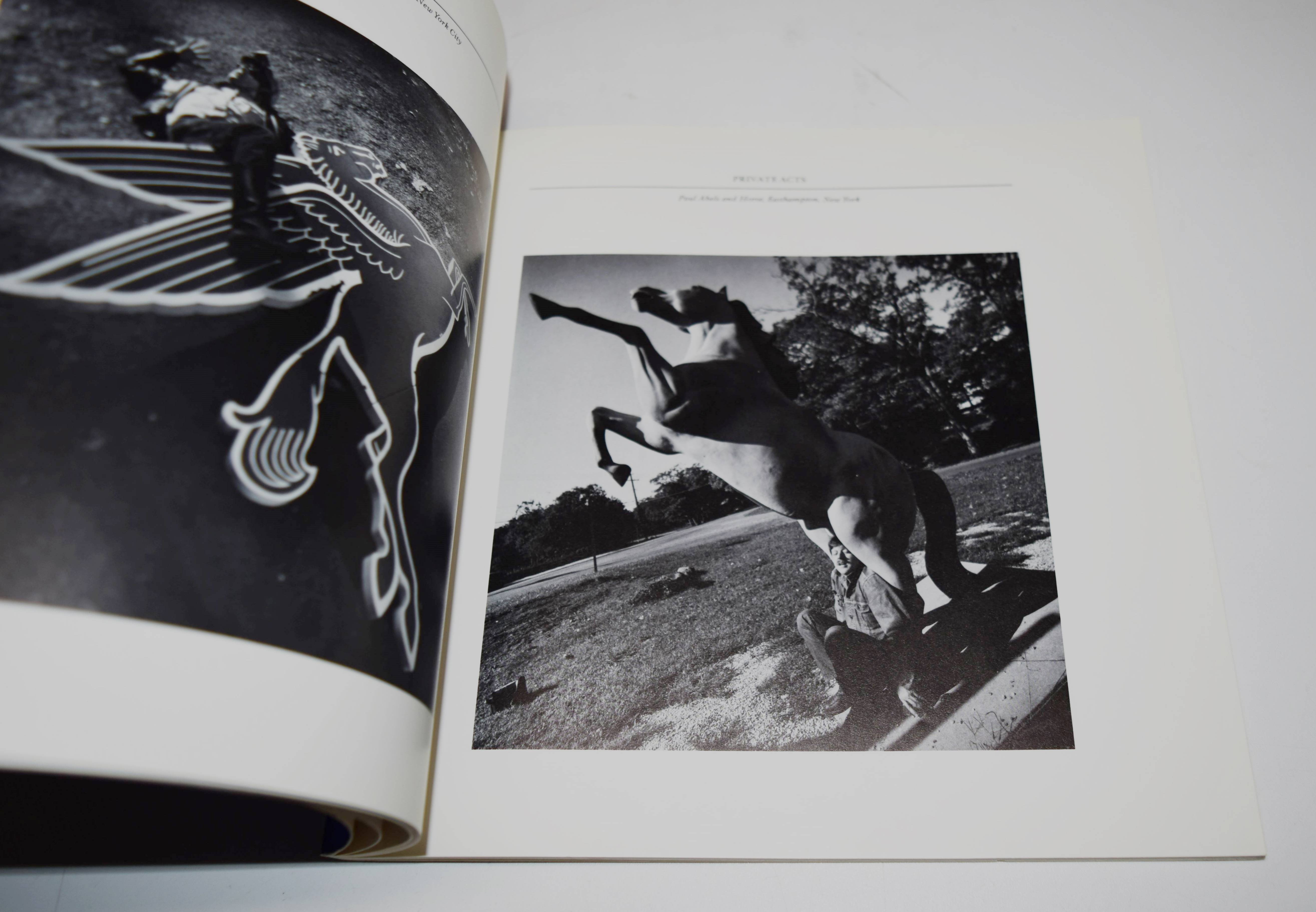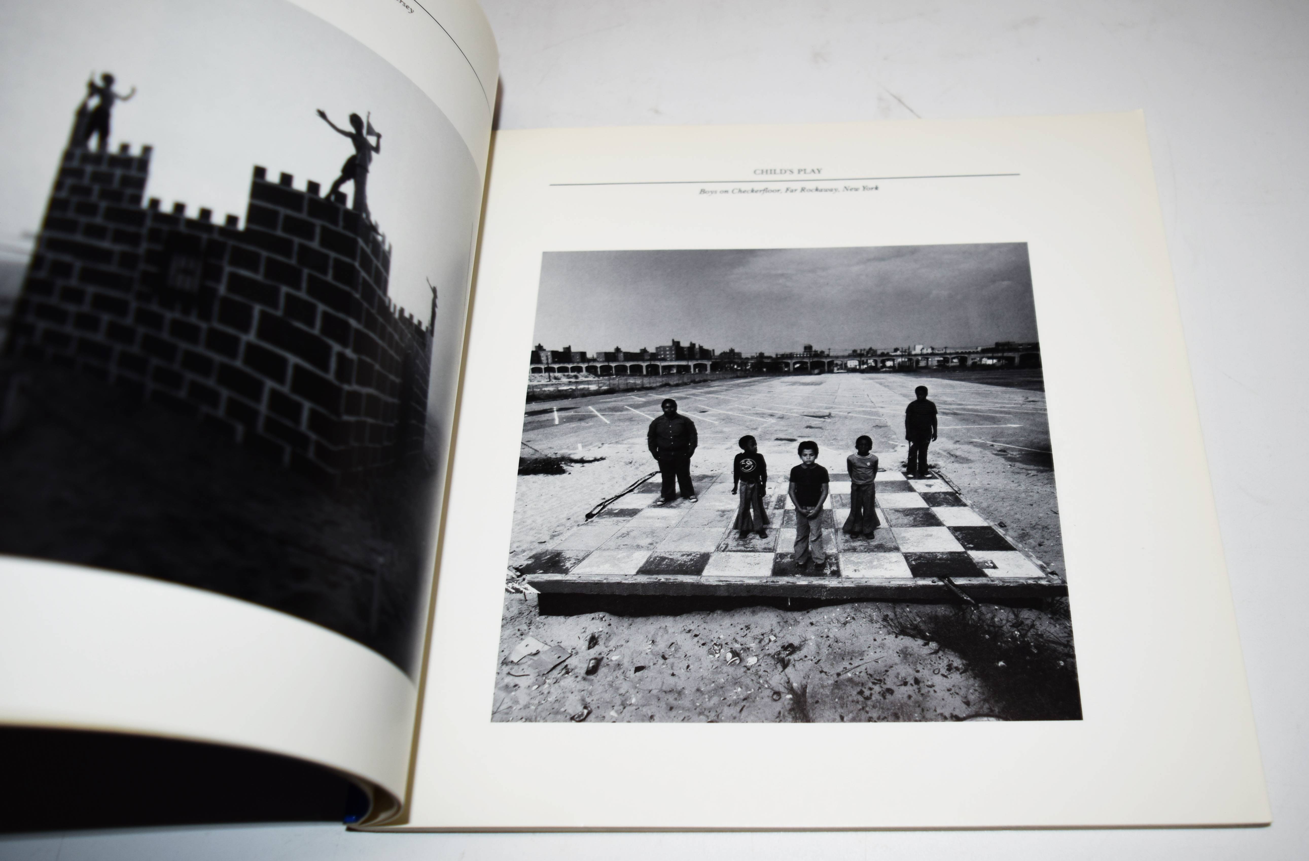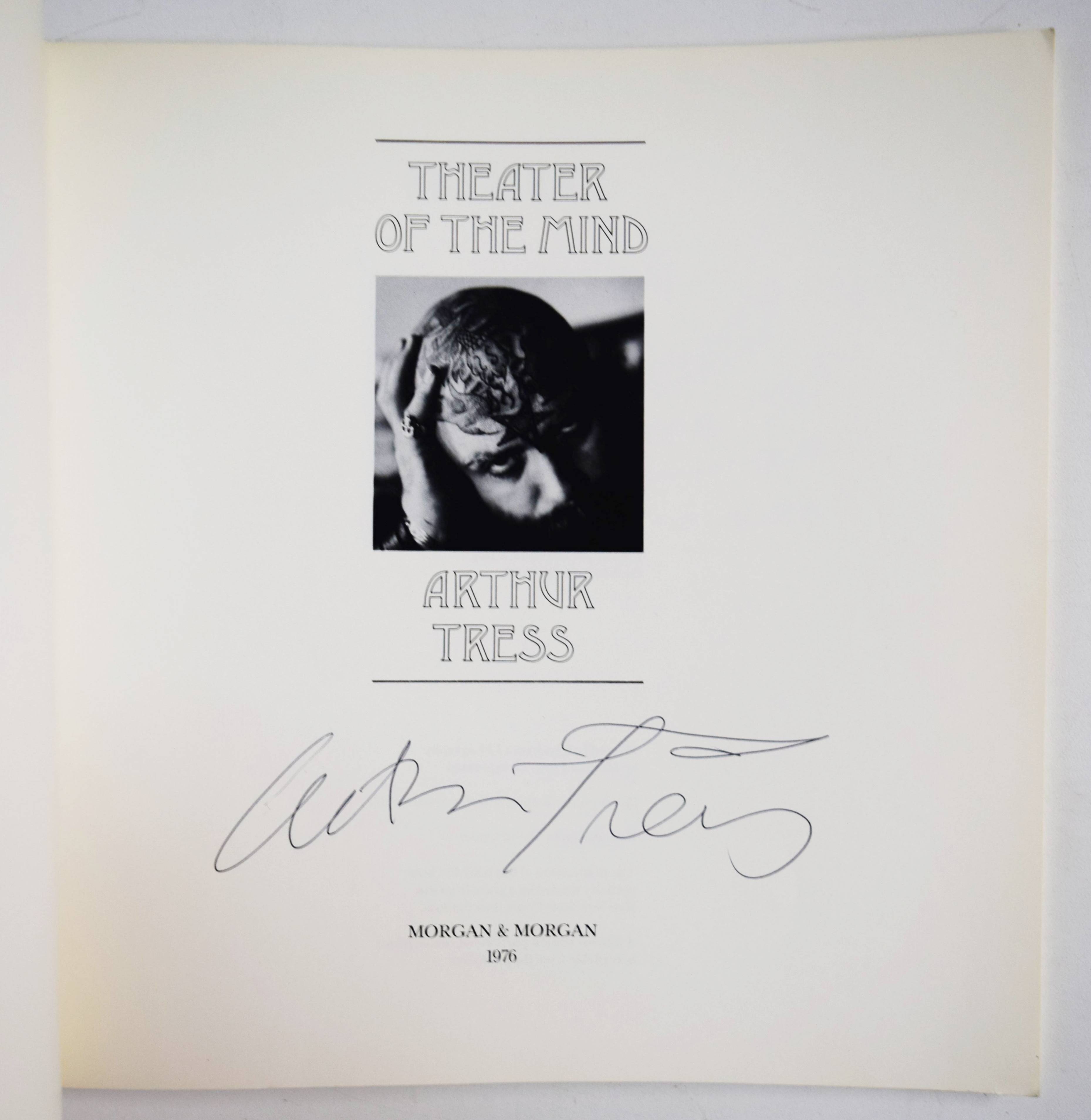 Tress, Arthur. Theater of the mind. (Essays: Duane Michals, Michel Tournier. Introduction: A(llan) D(ouglass) Coleman). Dobbs Ferry, New York, Morgan & Morgan (1976). Quer-Gr.-8° (22,8 x 22,8 cm.). [47] Bl. mit 84 Duotone-Tafeln. Illustr. Orig.-Kartonumschlag. First edition. – Signed by Arthur Tress. – „Tress will upset you. When he photographs you with a friend or lover, you will become an actor. You will perform in his theater and that drama one soon realizes is one’s own. Don’t be surprised if Arthur suddenly asks you to put your mother in a wheelbarrow, and don’t be amazed to find yourself doing it. It all seems a joke, but when our smiles fade we are quietly shocked by what we are experiencing. Something disconcerting has happened. Looking at some of these photographs is like listening in on some strange family’s argument“ (Duane Michals). – „Born in Brooklyn, New York, on November 24, 1940, Arthur Tress began his first camera work as a teenager in the surreal neighborhood of Coney Island where he spent hours exploring the decaying amusement parks. … Seeing the destructive results of corporate resource extraction, Tress began to use his camera to raise environmental awareness about the economic and human costs of pollution. Focusing on New York City, he began to photograph the neglected fringes of the urban waterfront with a straight documentary approach. This gradually evolved into a more personal mode of “magic realism” combining improvised elements of actual life with stage fantasy that became his hallmark style of directorial fabrication. In the late 1960s Tress was inspired to do a series based upon children’s dreams that combined his interests in ritual ceremony, Jungian archetypes, and social allegory. Later bodies of work dealing with the hidden dramas of adult relationships and the reenactments of male homosexual desire evolved from this primarily theatrical approach“ (arthurtress(dot)com). – In excellent condition.