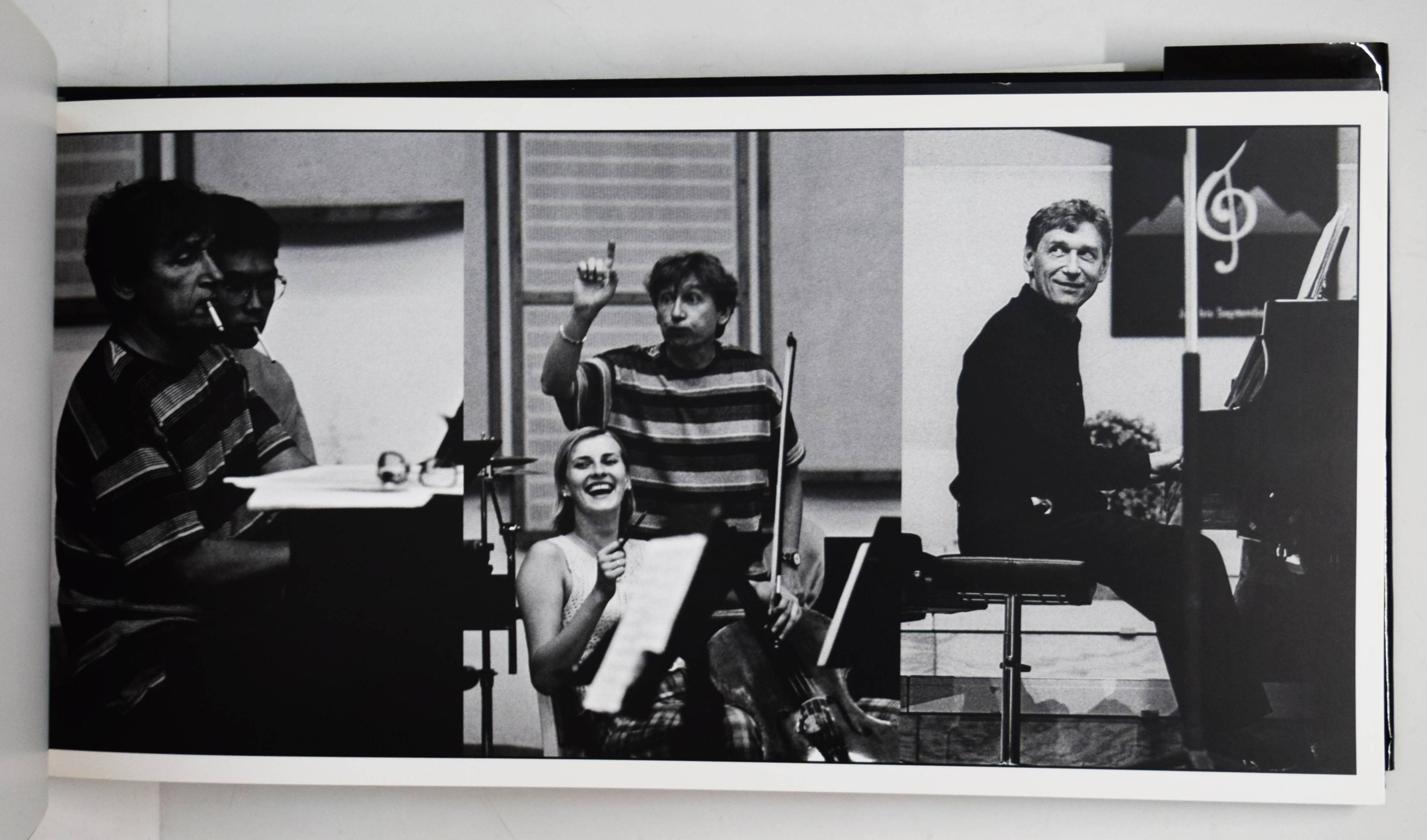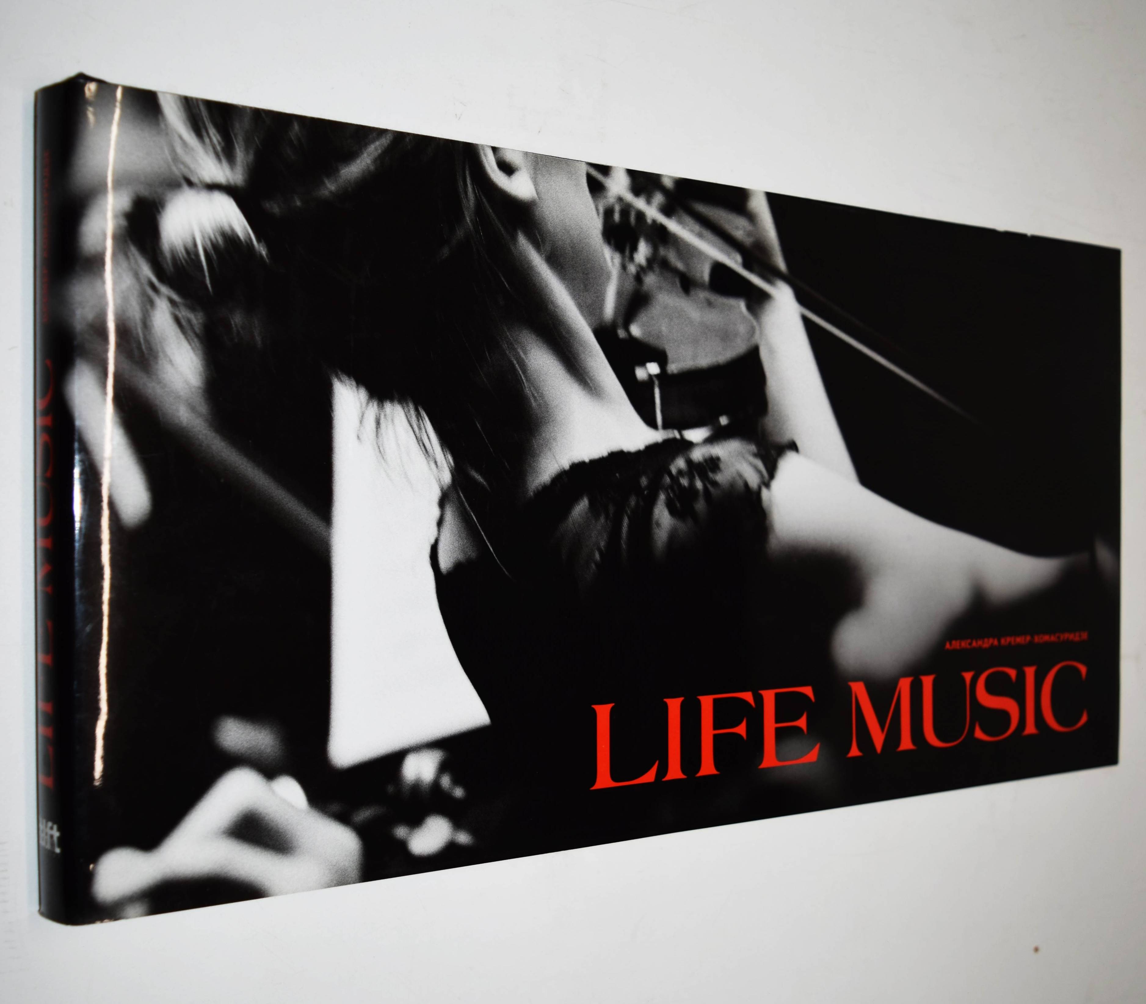 Kremer-Khomassouridze, Alexandra. Life music. (Fotoalbom). Moskau, PoRog (2008). Quer-4° (22 x 43 cm.). 202, (5) S. mit ca. 190 Duotone-Tafeln. Orig.-Leinenband mit illustr. Schutzumschlag. One of 1,000 numbered copies. – „Behind the scene stories of the Classical Music world. The birth of first sounds and note lines. The Backstage of concerts and rehersals hidden from the ordinary eye. Mstislav Rostropovich, Yuri Bashmet, Daniel Barenboim, Gidon Kremer, Vladimir Spivakov, Yuri Temirkanov, Valery Guergiev, Evgeny Kissin, Nicolaus Harnoncour, Marta Argerich, Vladimir Askenasi, Vadim Repin, Denis Mazuev, Yo-Yo Ma, Sofia Gubaidulina, Arvo Part, Leonid Desiatnikov, Giya Kanchelly, Natalia Gutman, Christof Echenbach, Mikhail Pletnev, Genadi Rojdestvensky … The invisible part of an iceberg – a World where the greatest Maestros of all times live and work in. My grandmother from Baku was a well brought up young girl from a respectable family and she thought that «a day without music is a day lost !» That’s why she spent her money on music lessons for her six children. They were gifted and patient and everybody (except for my freedom-loving mother) conscientiously studied to play violins, cellos, pianos and the harp. Then they began to find themselves husbands and wives who were also musically gifted, and their children inherited their love of music. I grew up in a very musical family which consisted of a cellist, three pianists, two violinists and two harpists. All my uncles and aunts, their children, their friends and their friends’ children were musicians, everybody, except for my mother and me. When i was a girl i found it very advantageous to have a lot of free time and to get my knees dirty. I investigated the world by playing football with friends in the backyards of Baku, while my diligent family practiced music, rehearsed and sweated (in summer it is 40°C in Baku) over the notes. However, they sometimes took me with them to the rehearsals and put me into the orchestra pit. I began to become familiar with the goings on of the Baku operas and conservatories, and even now I hear the sounds of the Azerbaijani symphonic orchestra, headed by the elegant maestro Niyazi. I lived near music, but outside it. I heard it with my eyes“ (A. Kremer-Khomassouridze). – Dustjacket with minor edge wear, very good copy.
