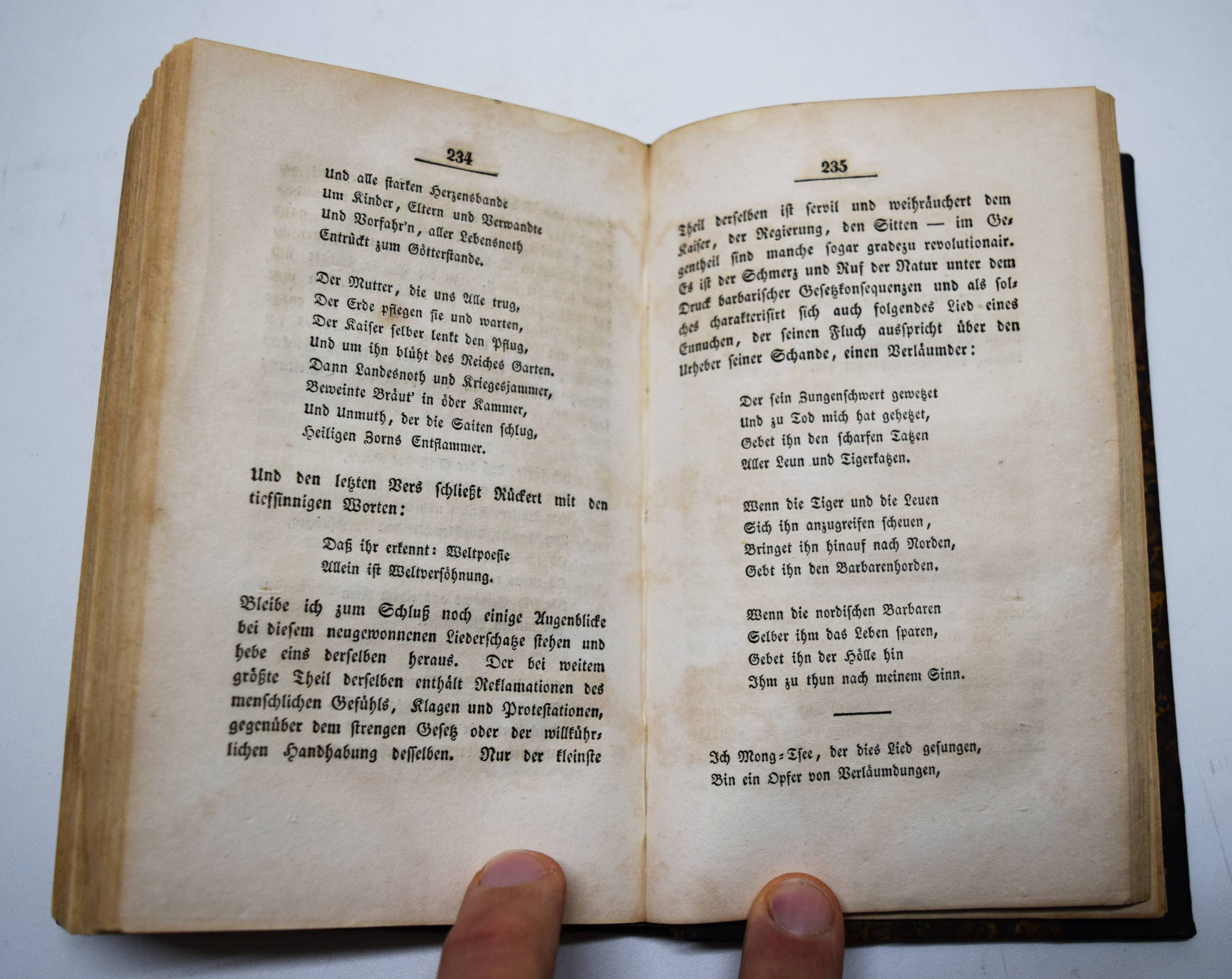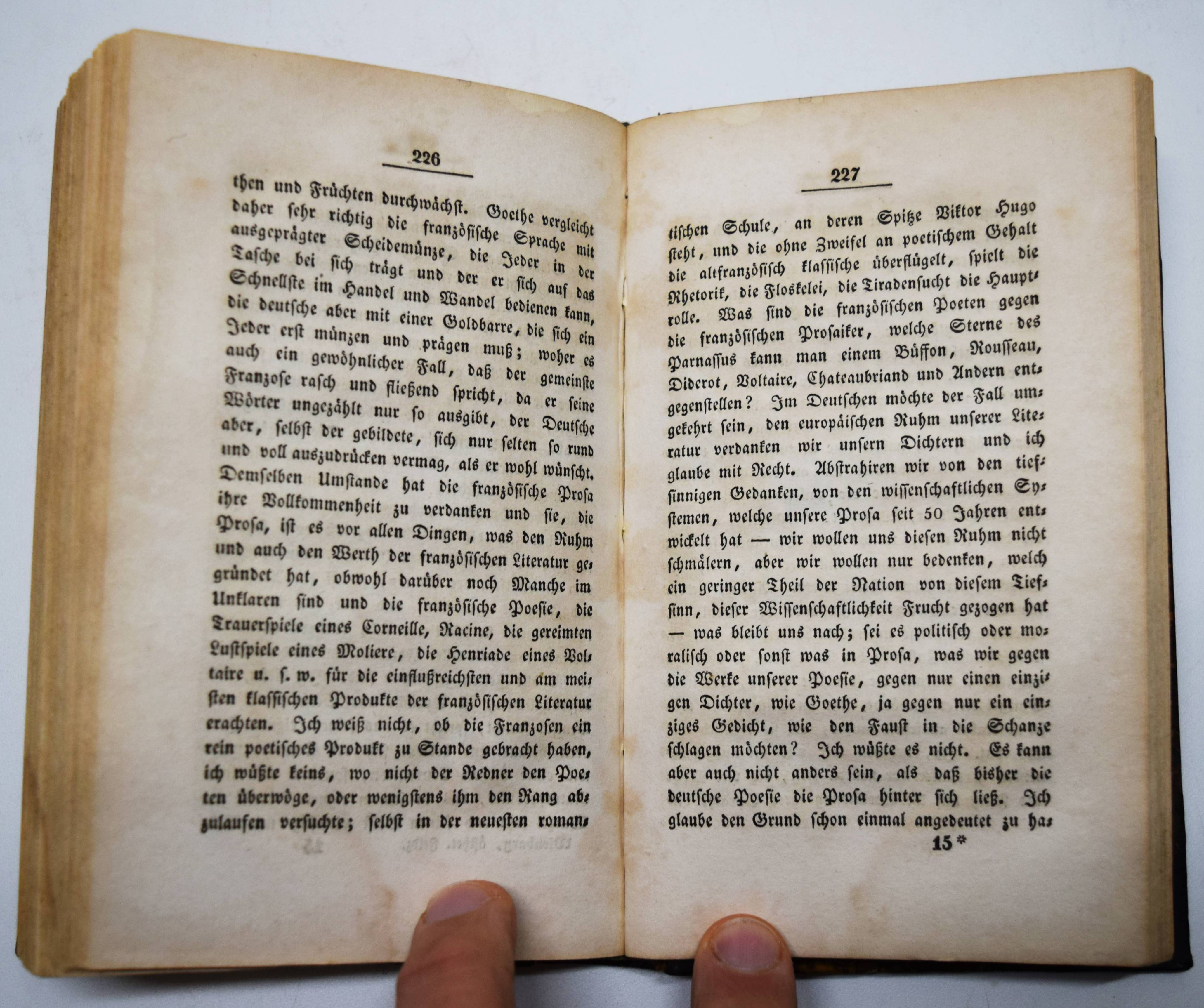 Wienbarg, L(udolf Christian). Aesthetische Feldzüge. Dem jungen Deutschland gewidmet. Hamburg, Hoffmann und Campe 1834. 8°. Halblederband um 1900 mit goldgepr. Rückentitel und Linienvergoldung. ADB XLII, 419 f. Slg. Borst 1740. Hamburger Schriftstellerlexikon VIII, 26. Houben I, 605 ff. Kayser, Hamburger Bücher 110. – Sehr seltene erste Ausgabe der Vorlesungen des Altonaer Philosophen, Philologen und Journalist, welche er 1833 als Privatdozent an der Kieler Universität hielt. Wienbargs Hauptwerk, die wichtigste theoretische und zugleich programmatische Schrift des „Jungen Deutschland“. Das Werk prägte den Namen einer ganzen Epoche, mit seiner Einleitung hat Wienbarg ganz wesentlich zur Verbreitung des Begriffs beigetragen. – 1835 gründete L. C. Wienbarg (1802-1872) in Frankfurt am Main zusammen mit Karl „Gutzkow die Zeitschrift „Deutsche Revue“, die jedoch bald staatlich unterdrückt ward. Seine Schriften wurden vom Bundestag verboten und er aus Frankfurt polizeilich ausgewiesen. Nachdem er sich nun eine Zeit lang in den Rheinlanden aufgehalten, kehrte er nach Hamburg zurück, wo er bei der Redaction der Börsenhalle betheiligt war und namentlich von 1842 bis 1846 die Hamburger litterarischen und kritischen Blätter redigirte. Hier beschäftigte ihn schon stark die schleswig-holsteinische Sache und 1848 machte er den schleswig-holsteinischen Krieg als Freiwilliger mit. Nach diesem Kriege lebte er wieder in Altona und Hamburg vielfach schriftstellerisch beschäftigt“ (E. C. Carstens in ADB). – Gelenke und Kanten berieben, stellenweise braunfleckig und im unteren Blattrand wasserrandig, sonst gut erhaltenes Exemplar aus der Bibliothek des bekannten Schriftstellers Otto Erich Hartleben (1864-1905) mit dessen eigenhändigem Besitzvermerk vom Juni 1883.