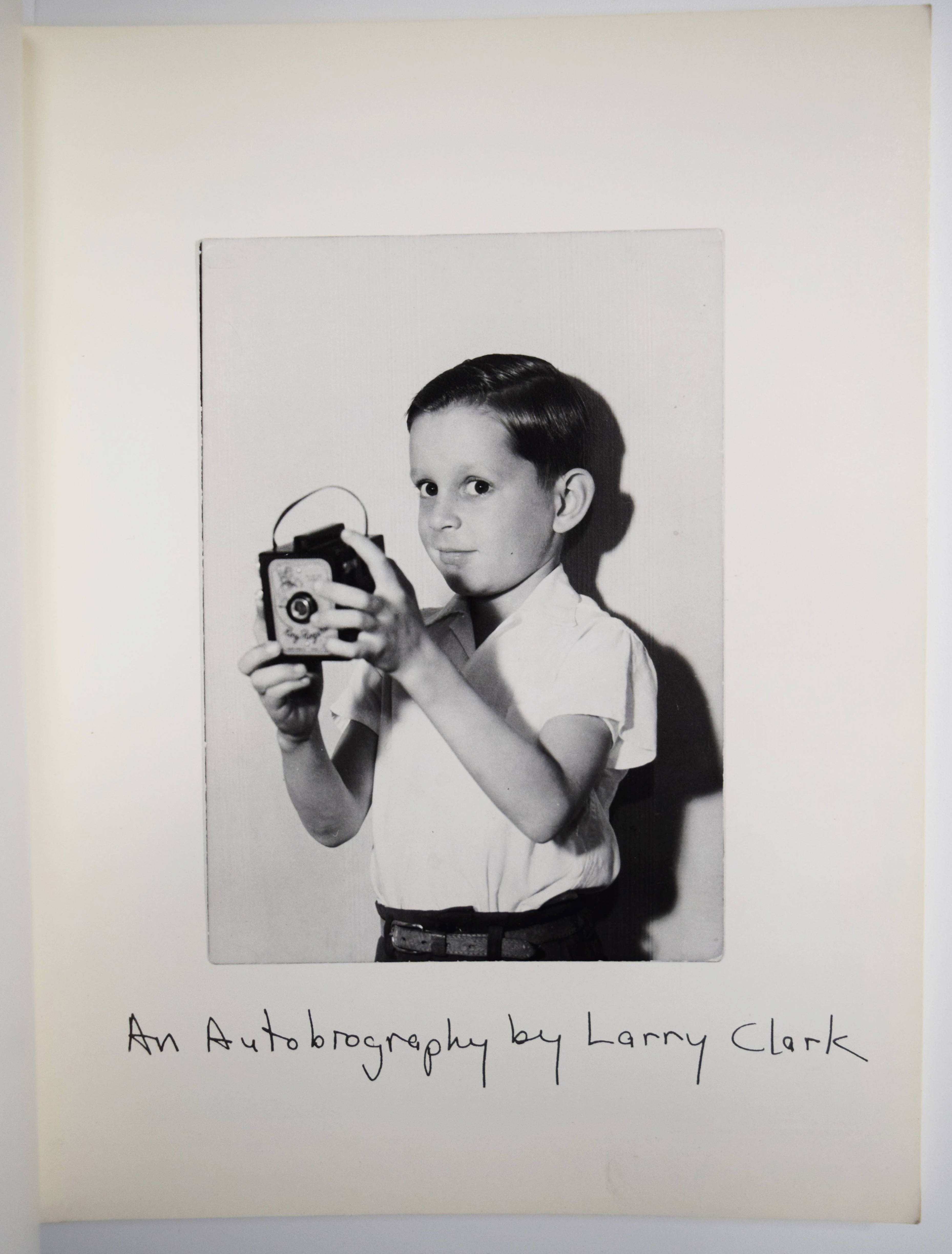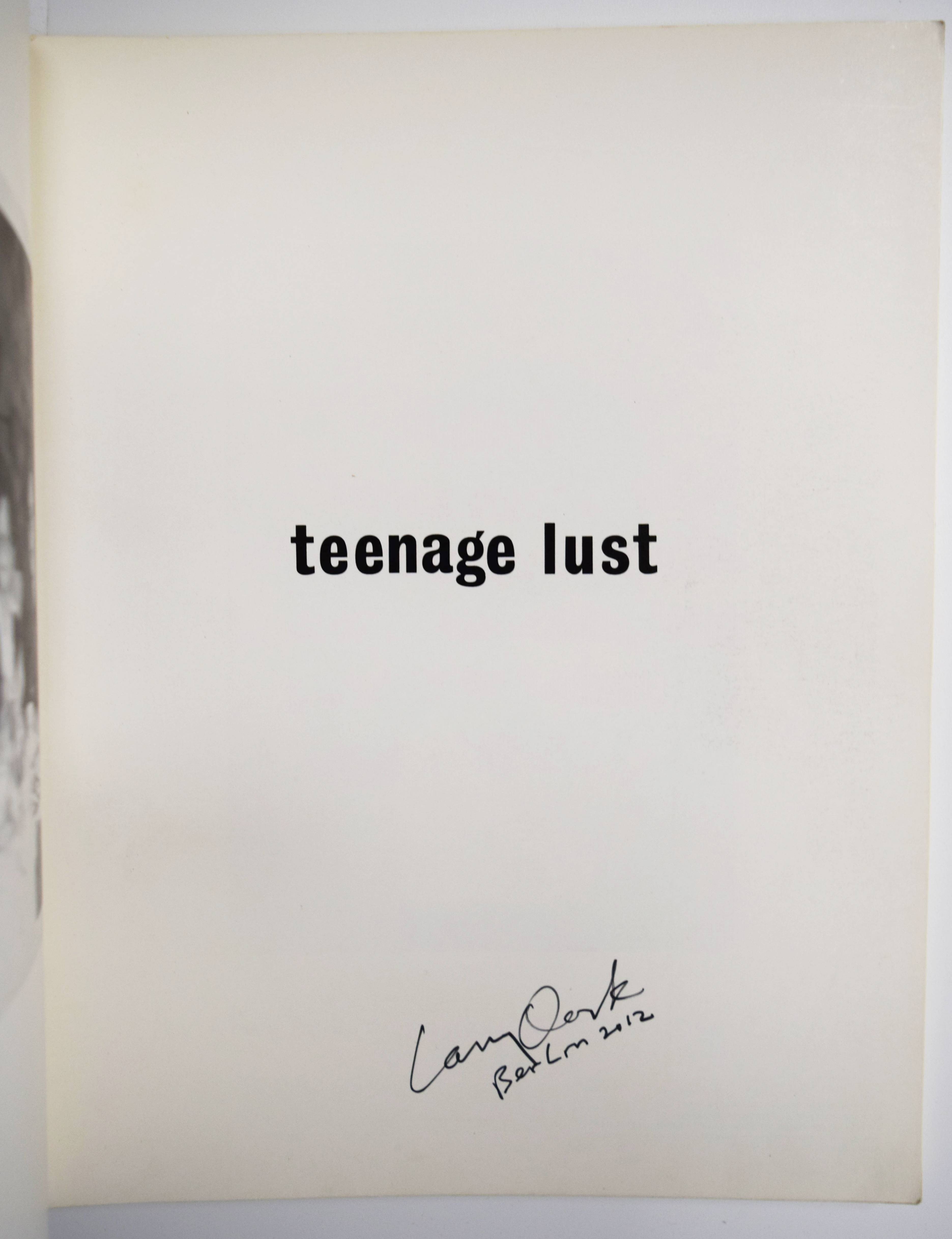 Clark, Larry. Teenage lust. (An autobiography). Second edition. New York, Self-publishing (1987). 4° (29,5 x 23 cm.). [143] S. mit 92 Duotone-Tafeln. Illustr. Orig.-Kartonumschlag. Auer 648. Bertolotti 260. Koetzle, Fotografen A-Z 75. Vgl. Parr/Badger II, 260 (Tulsa). – Erschien zuerst 1983. – Von Larry Clark signiert. – „Wenn Danny Lyon mit dem sozialdokumentarischen The Bikeriders die Tür für einen Spalt weit auf die widerständige Jugend aufstieß, so öffnete Larry Clark sie weit mit seinem Buch Tulsa, 1971. Lyon hatte jugendliche Rebellion auf einem akzeptablen Level gezeigt, Kids, die am Wochenende Rabatz machten, aber in der Regel motagmorgens (wenn auch ziemlich mitgenommen) wieder zur Arbeit erschienen. Clark, auf der anderen Seite, zeigte jugendliche Entfremdung als Vollzeitleben, mit geringer oder gar keiner Möglichkeit zur Rückkehr in die Gesellschaft. Seine Dokumentation von Kommunen in Tulsa, wo schlimmer Drogenkonsum häufiger war als gelegentlicher Sex, erweiterte die Grenzen des akzeptablen Themas für Fotografen und machte Tulsa zu einem der meistdiskutierten und bedeutendsten Bücher des Jahrzehnts“ (Gerry Badger in Koetzle). – Gelenke und Kanten etwas berieben, gutes Exemplar.