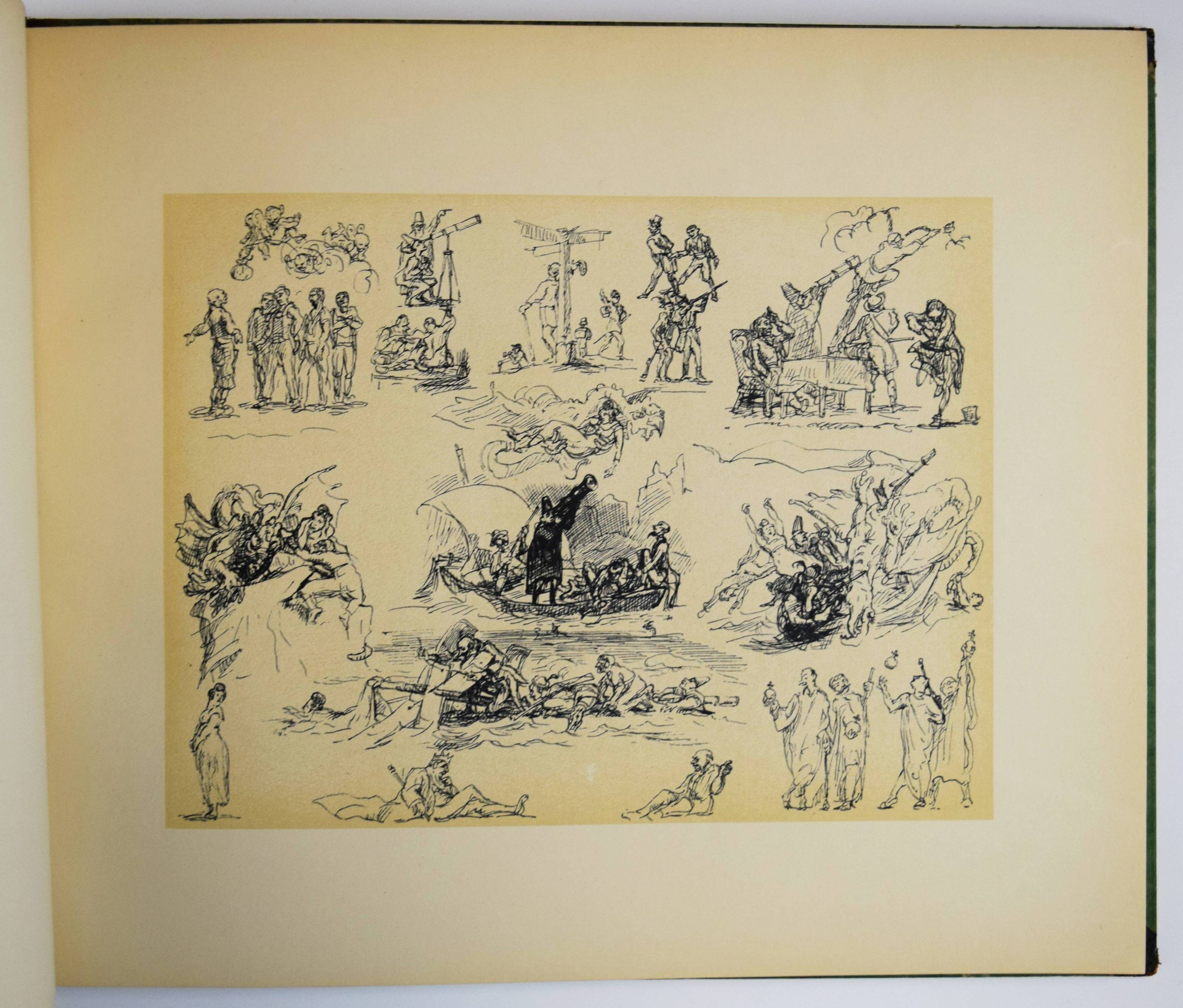 Zimmermann, Joachim. Alte Märchen. Mit der Feder erzählt von Max Slevogt, in Worte gefaßt von Joachim Zimmermann. Berlin, Propyläen-Verlag (1920). Quer-Folio (32 x 39 cm.). [42] Bl. mit illustr. Titel und 19 Tafeln. Orig.-Halblederband mit goldgepr. Deckeltitel. Mit den Märchen: Das tapfere Schneiderlein, Das kalte Herz, Aladdin, Der gestiefelte Kater, Kalif Storch, Zwerg Nase u. a. – Gelenke berieben, Vorderdeckel im oberen Rand fleckig, sonst gut erhalten.